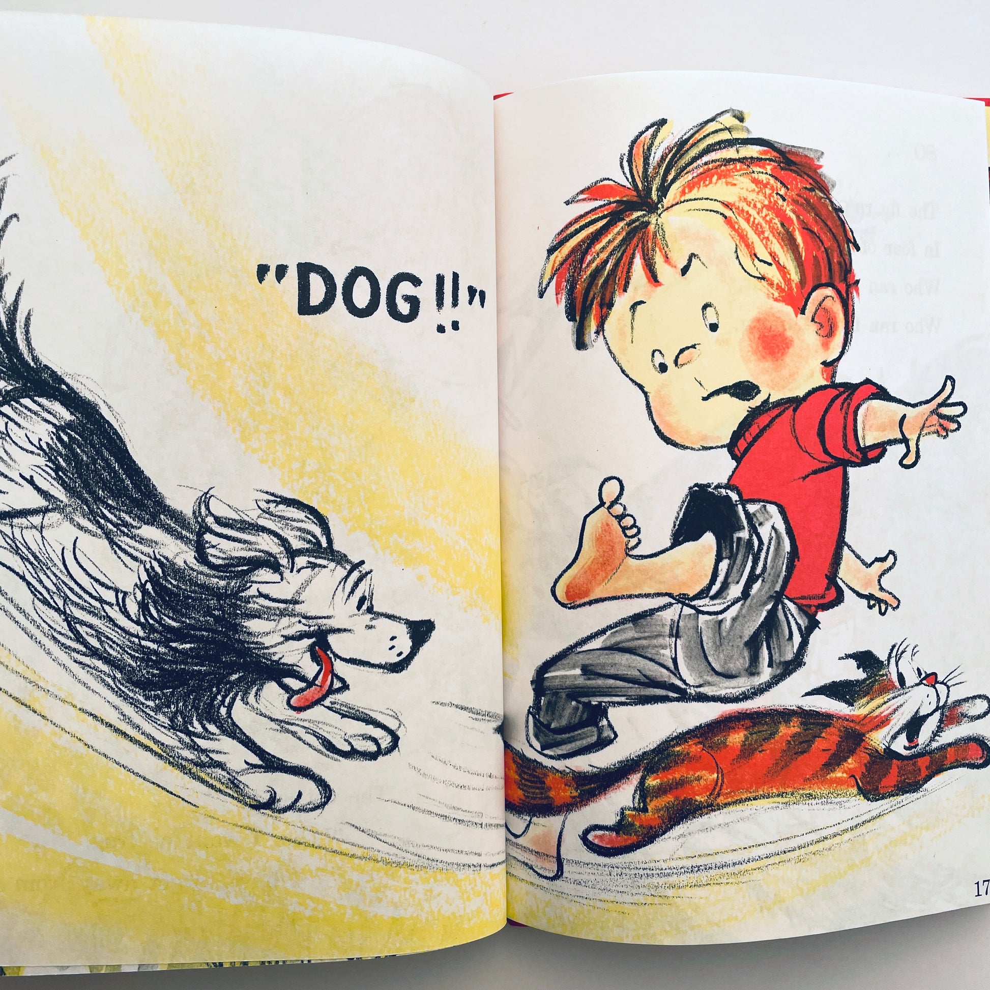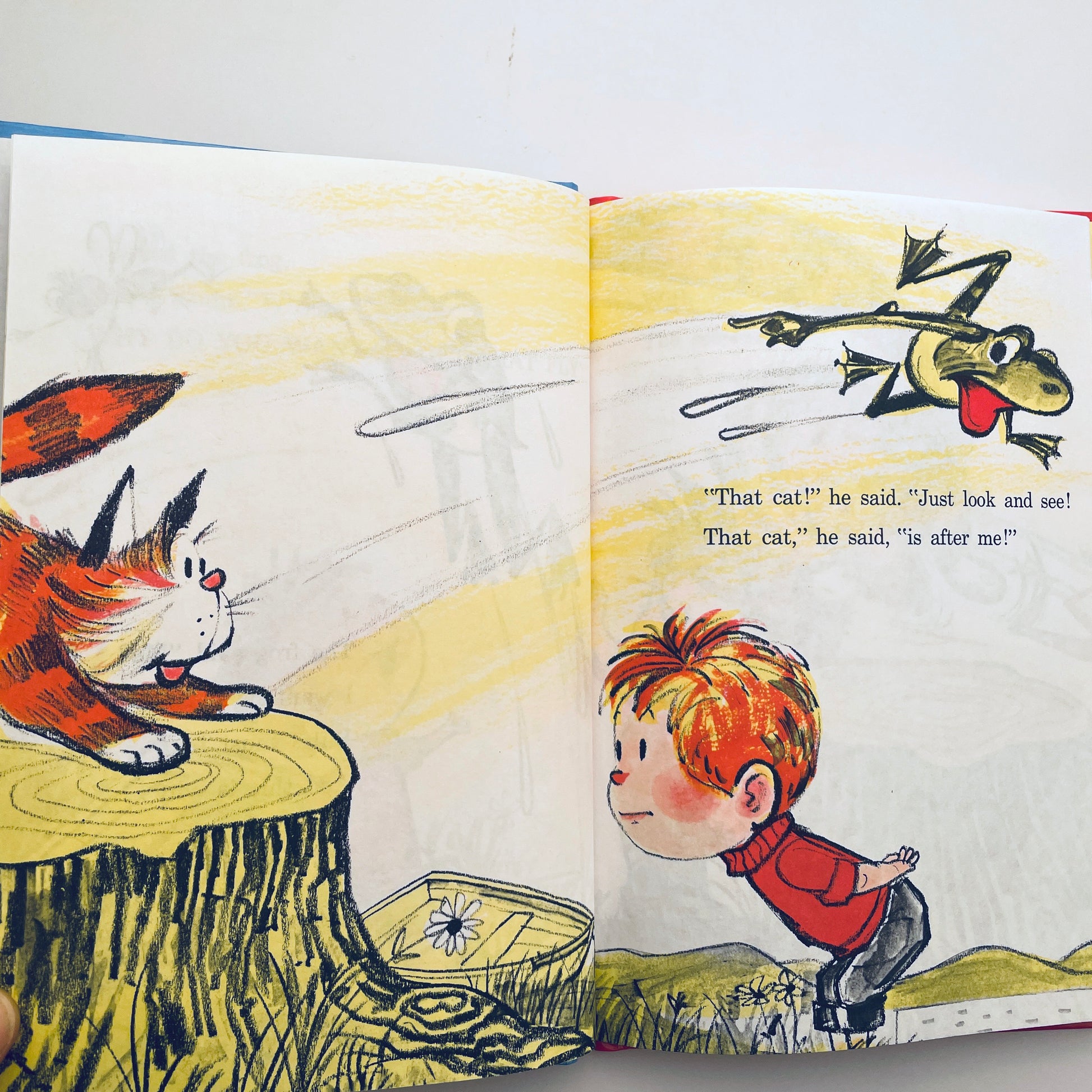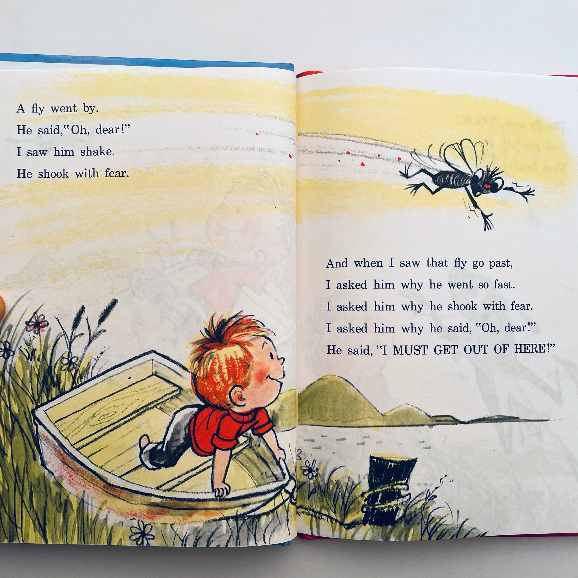 When a young boy sees a frantic fly buzzing past, he asks where the fly is headed — and with that, a chase begins. The fly and the frog, the cat and the dog, the pig and the cow, the fox and the hunter . . . who is causing all the fuss?