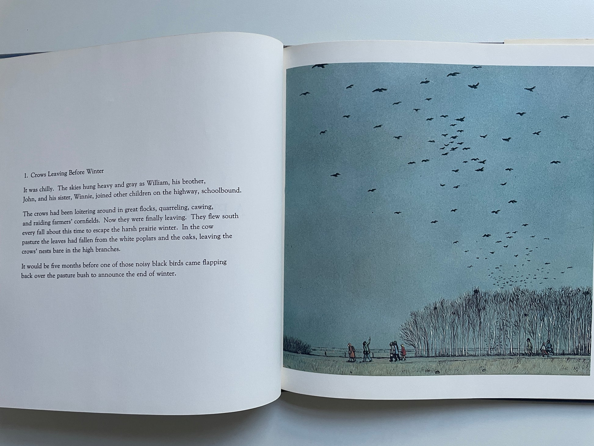 William Kurelek, whose paintings hang in major galleries and museums in the US and Canada, has told the story of his own childhood in simple text and 20 magnificent full-color paintings. It is a true story, in a unique, harsh setting that began for William when the crows flew south and ended when they returned to announce the coming of spring.