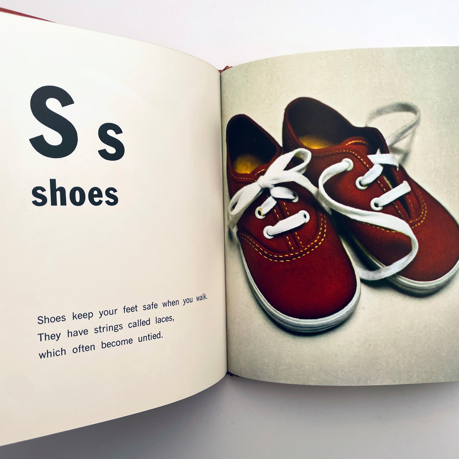 Straightforward and clever narrative paired with photographs of everyday objects including an apple, balloons, a clock, a doll, and eggs introduce youngsters to the letters of the alphabet in this out of print and rare book.