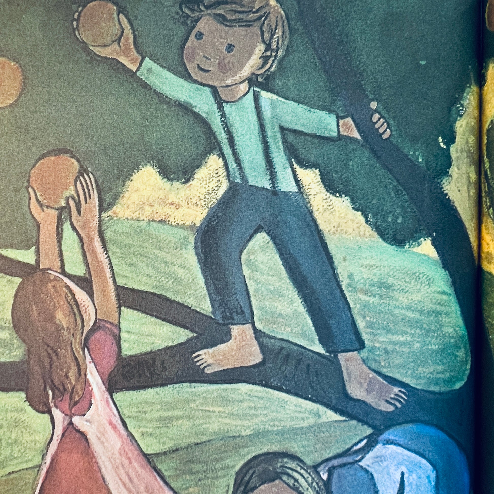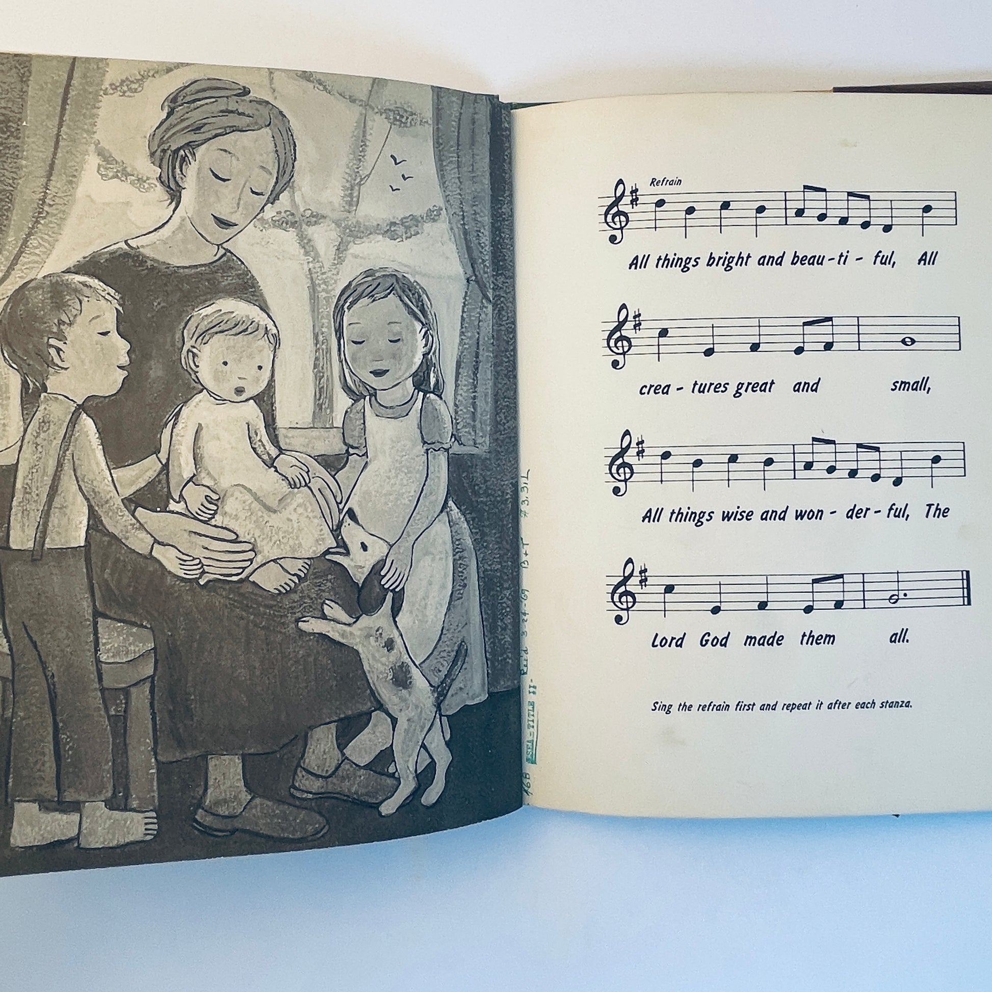 Words and music appear together throughout the book so that children may easily sing the hymn. Leo Politi, who won the Caldecott Medal in 1950 for Song of the Swallows, has turned his talent to another distinguished picture book in All Things Bright and Beautiful.