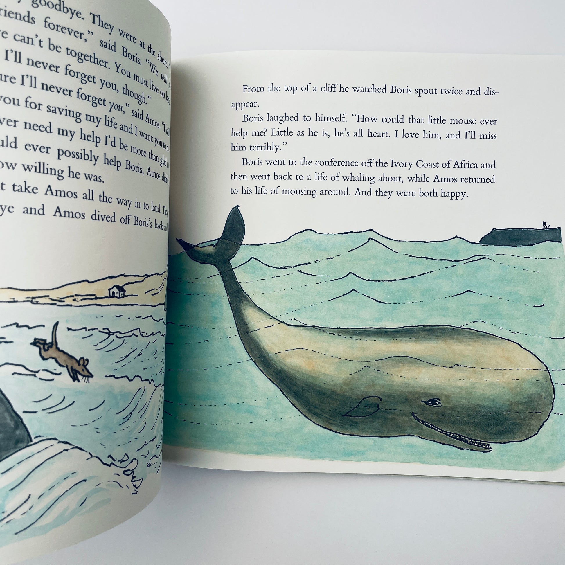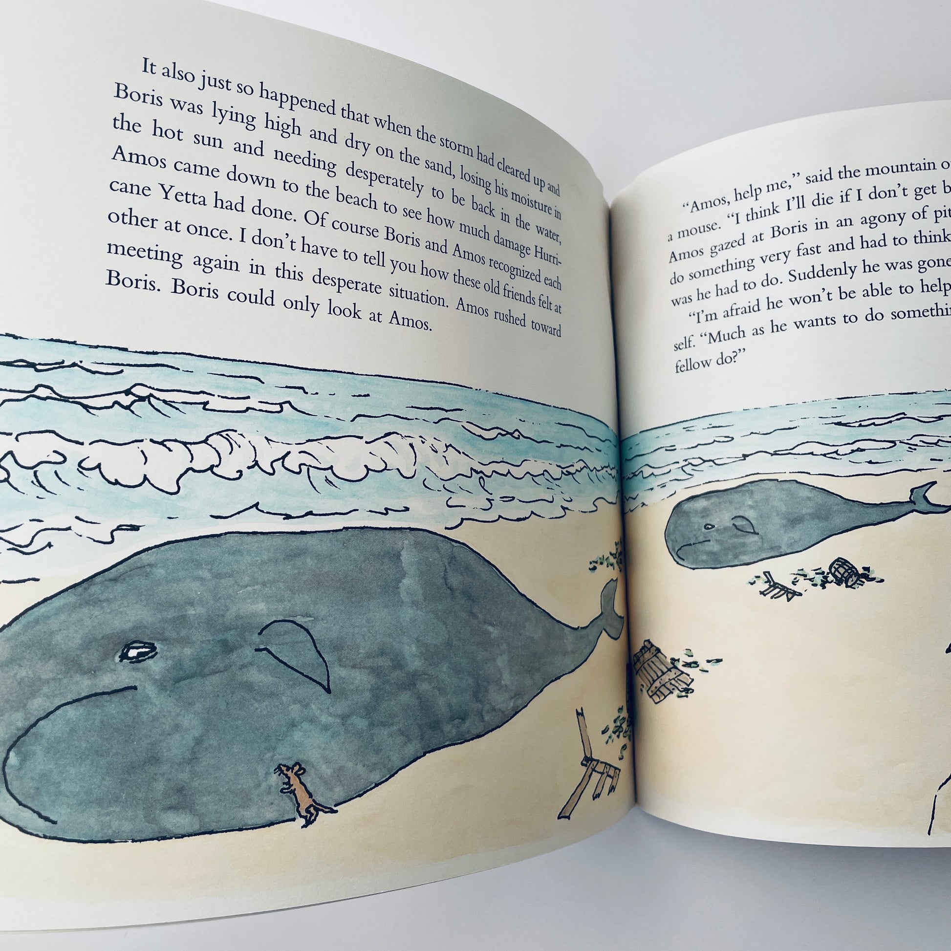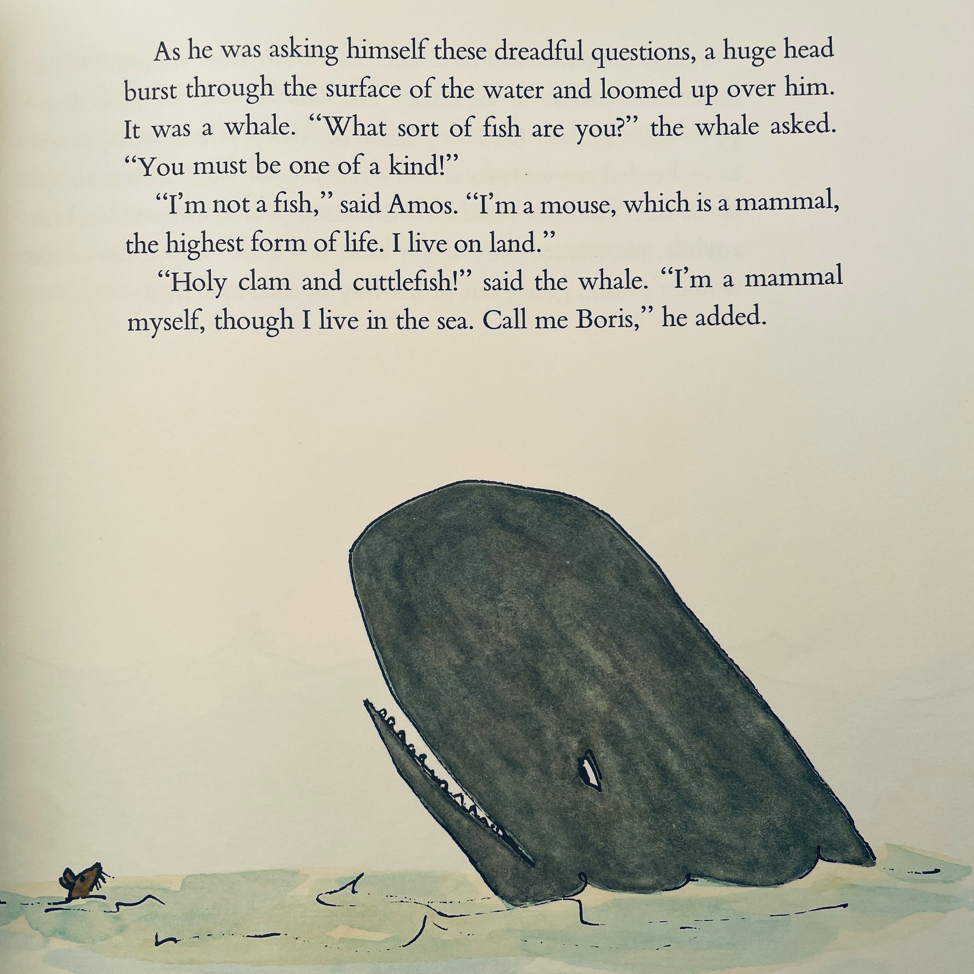 Amos the mouse and Boris the whale: a devoted pair of friends with nothing at all in common, except good hearts and a willingness to help their fellow mammal. They meet after Amos sets out to sea in his homemade boat, the Rodent, and soon finds himself in extreme need of rescue. Enter Boris. But there will come a day, long after Boris has gone back to a life of whaling about and Amos has gone back to his life of mousing around, when the tiny mouse must find a way to rescue the great whale.