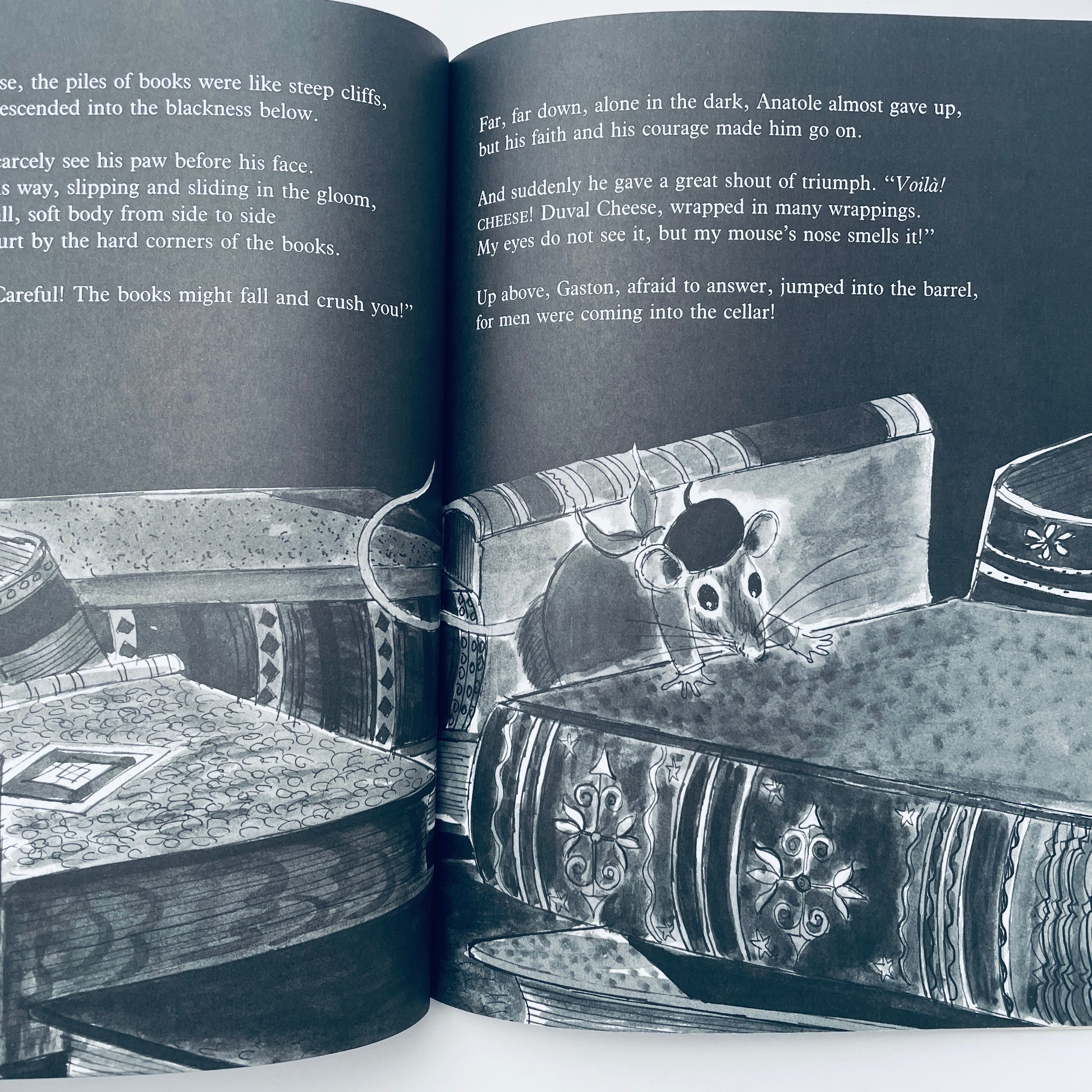 In this book, Anatole the mouse returns from vacation to find that he is sorely needed to help solve the mystery of the Great Cheese Robbery, which has closed his good friends cheese factory.