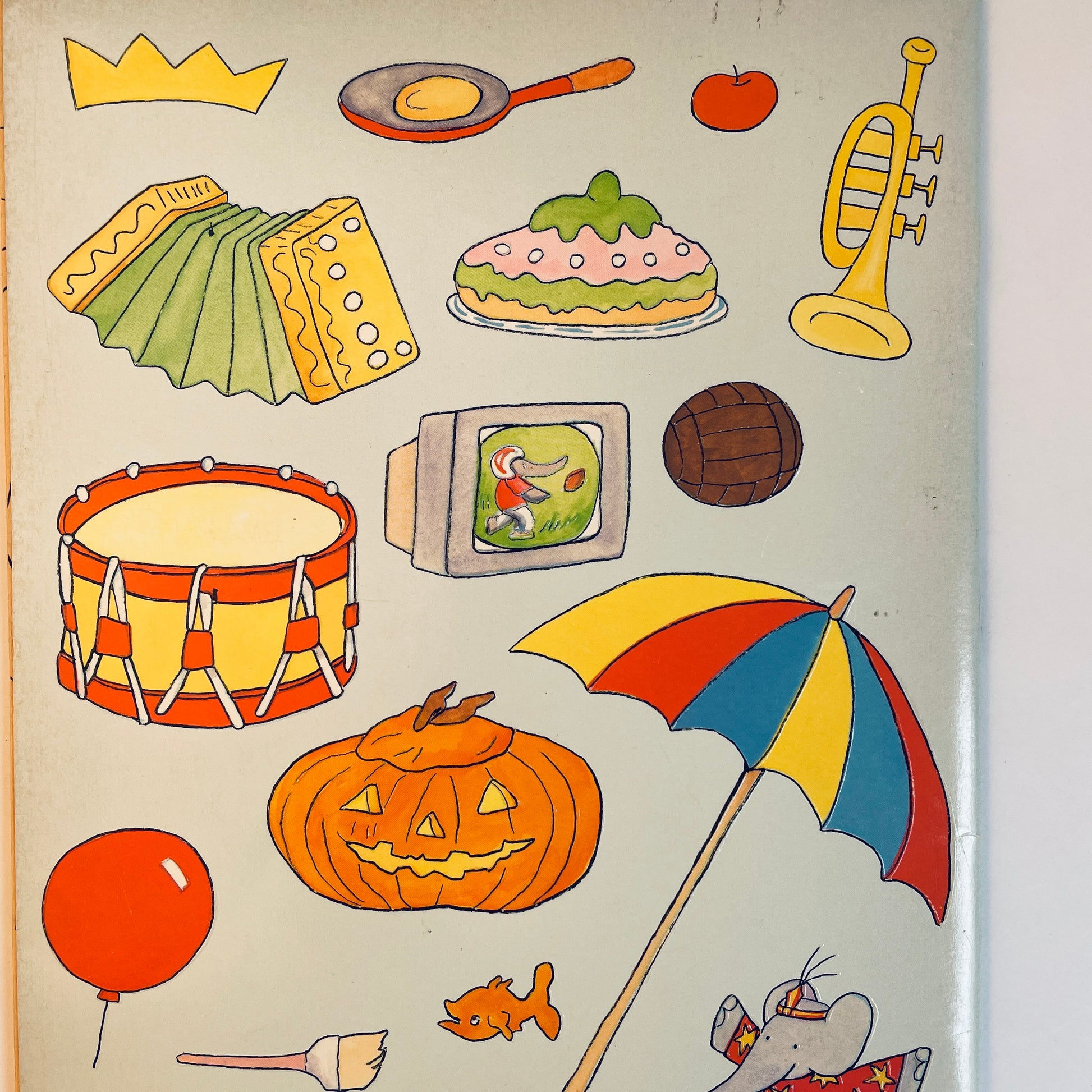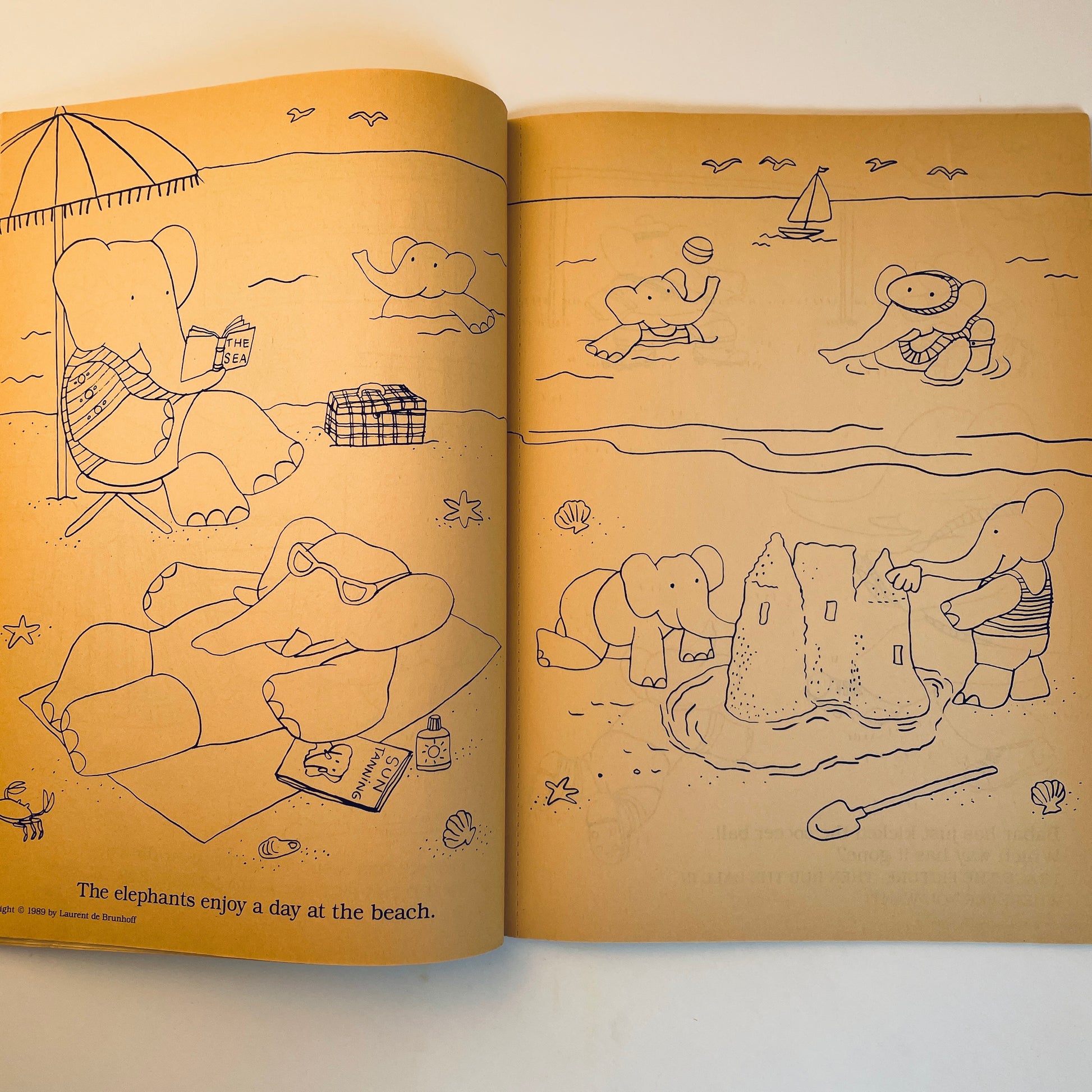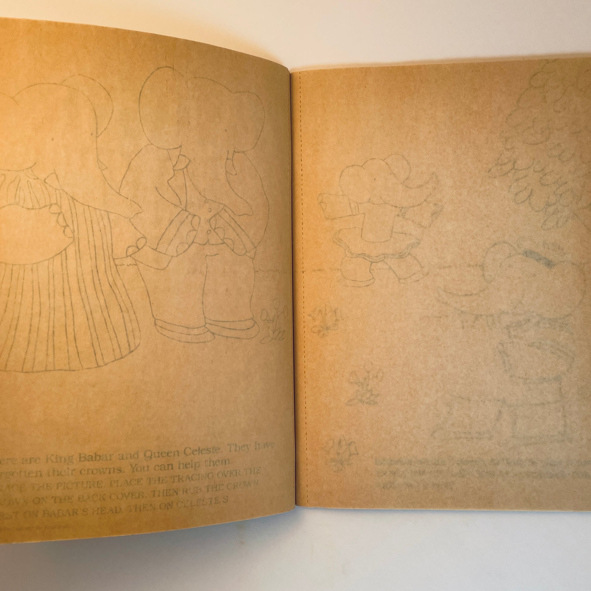 A coloring book with pictures of Babar & family to trace and embossed pictures to rub.