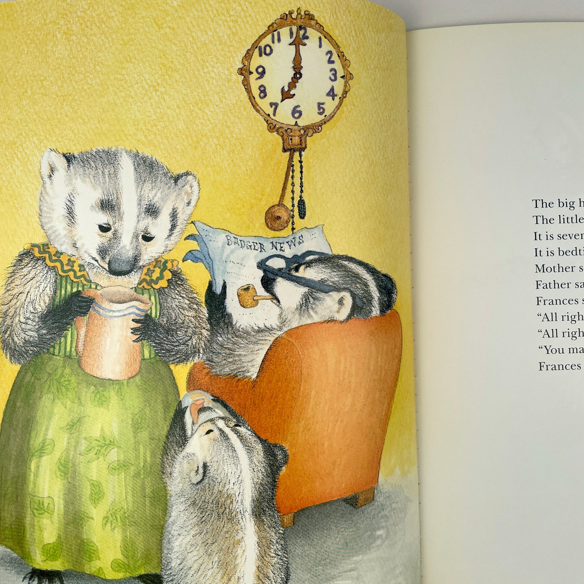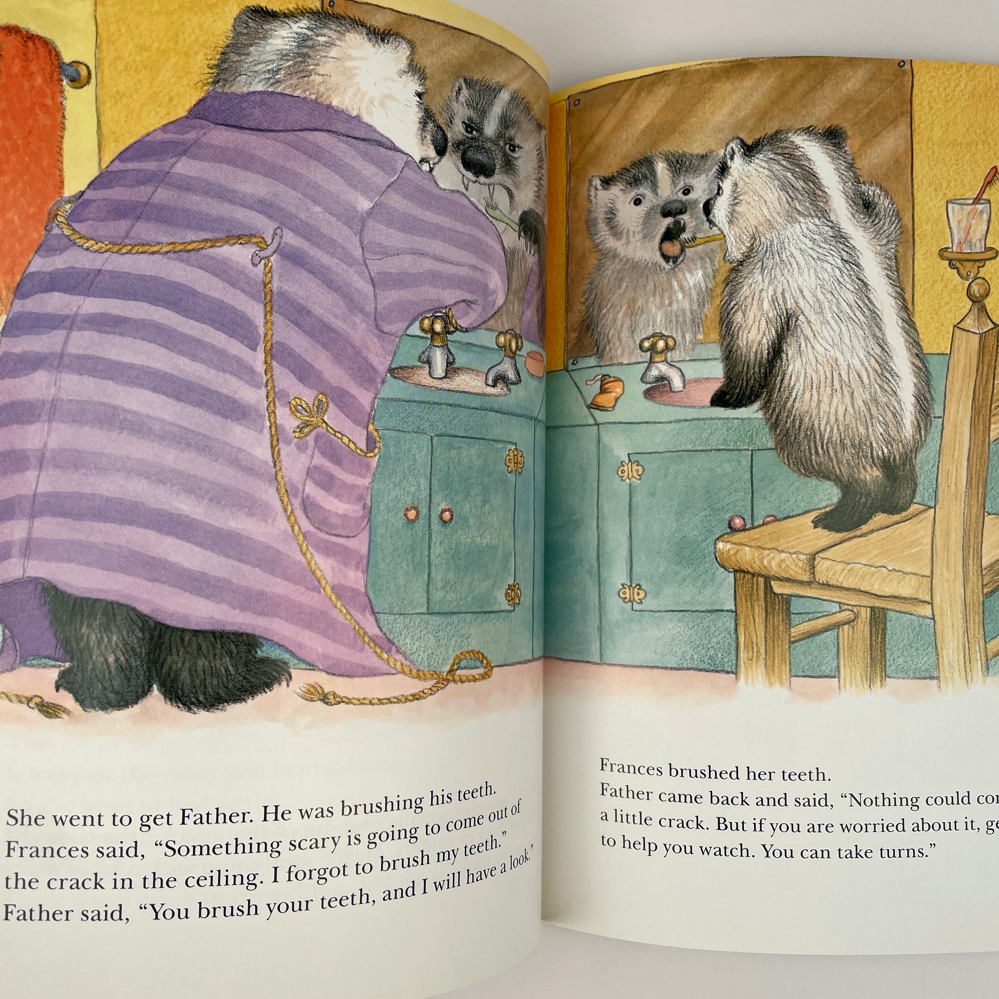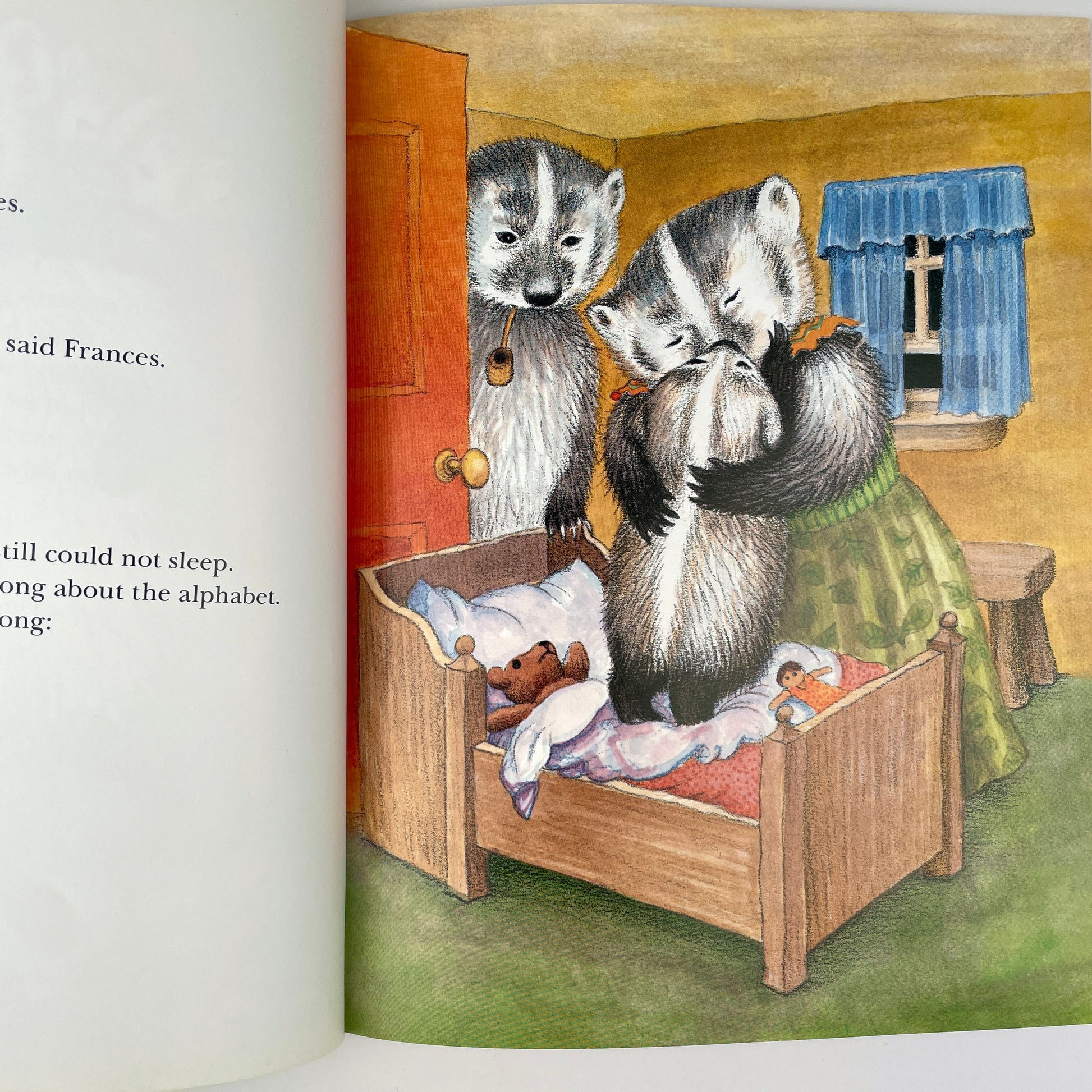 It may be bedtime for Frances, but before Frances can sleep, she needs a glass of milk, a kiss from Father, one from Mother, her teddy bear, her doll, another kiss from Father, and another one from Mother. And then there are tigers and giants and ominous cracks in the ceiling to keep her up. Will Frances ever go to sleep? Frances the badger made her debut with this title, long a favorite for the gentle humor of its familiar going to bed ritual. Note that there is mention of a getting a spanking on one page.
