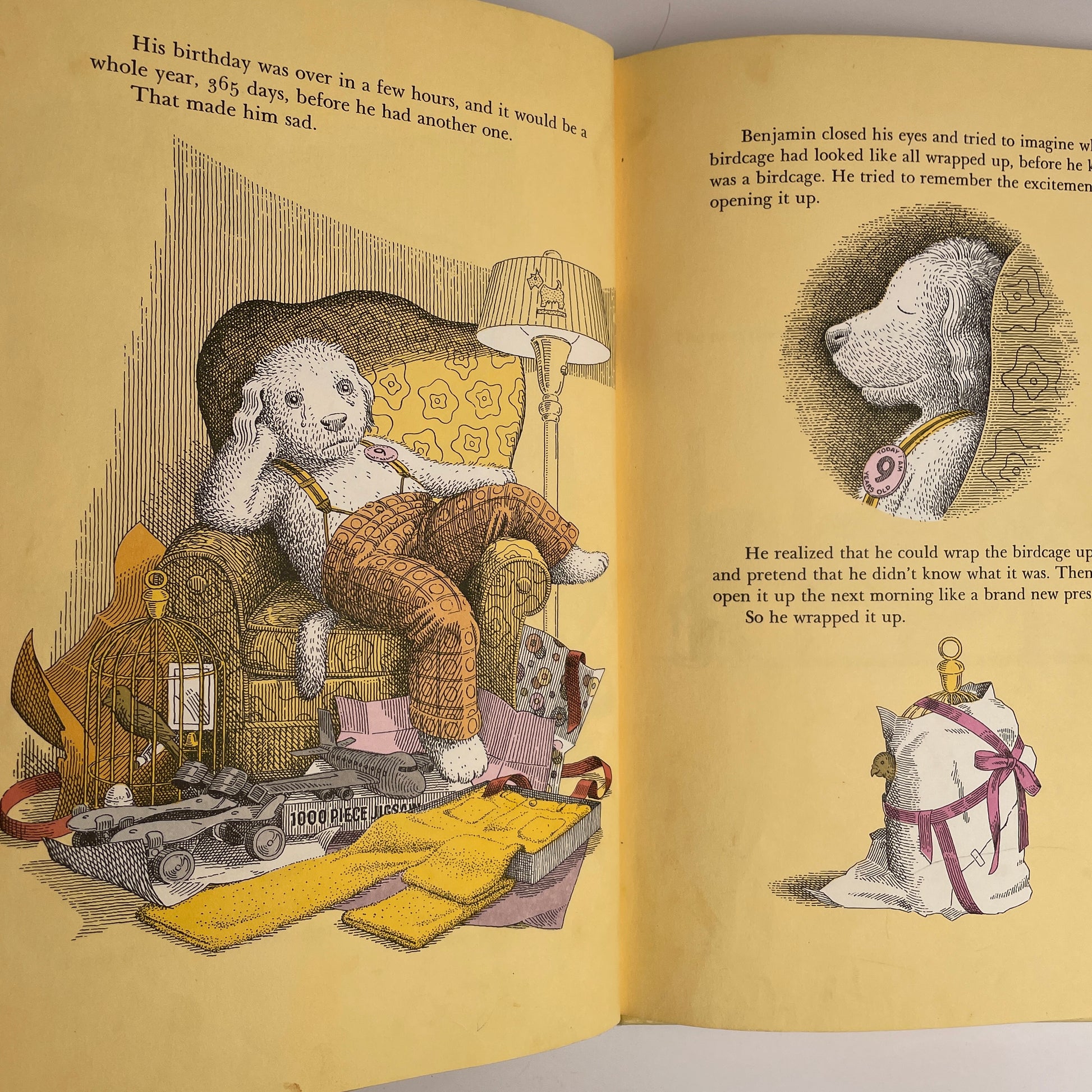 Benjamin the bear is so delighted with his birthday presents that he decides to rewrap them so that he can enjoy one each day throughout the ensuing months.