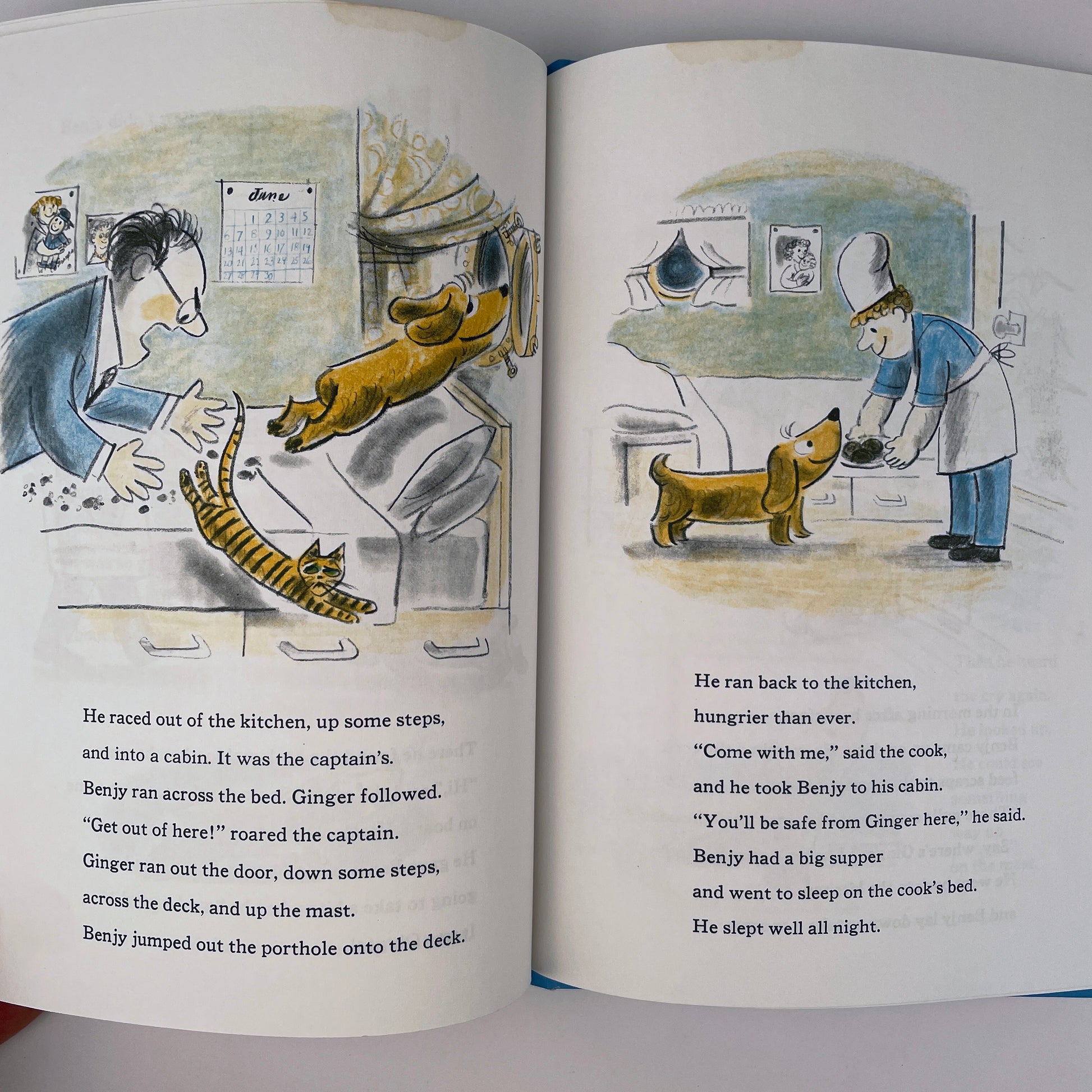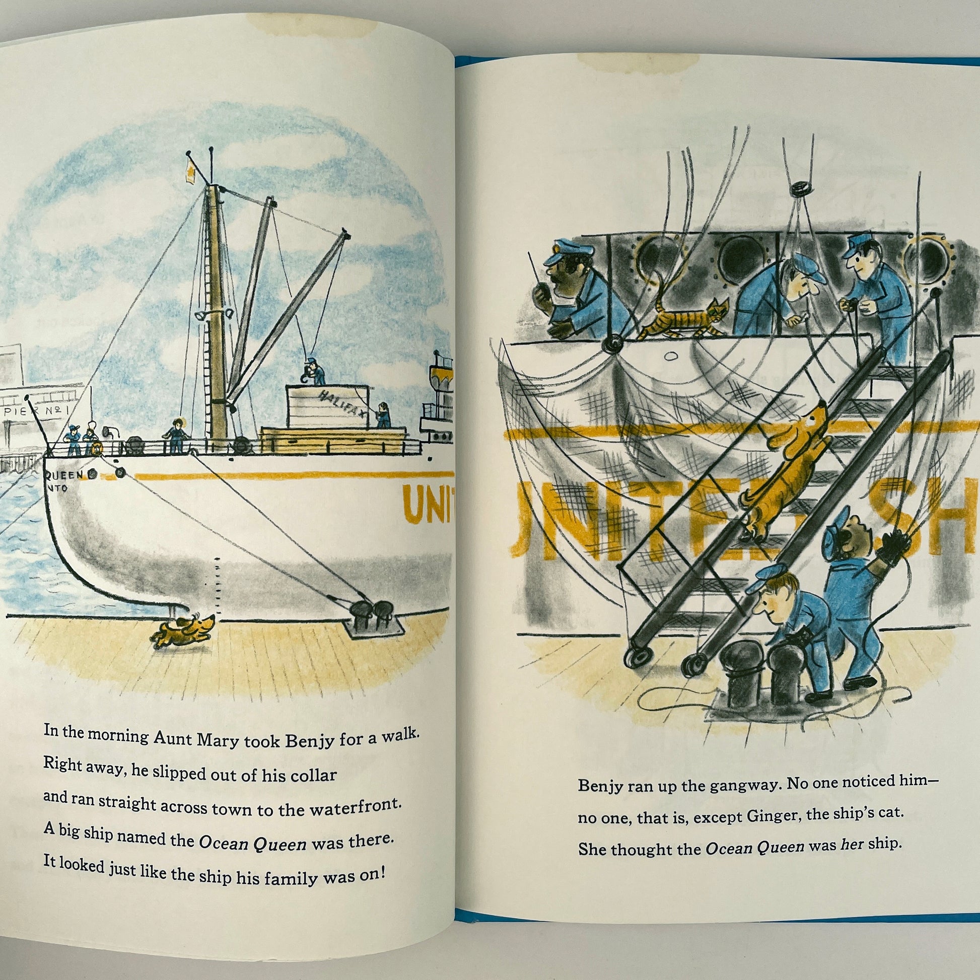 A small dog takes a surprise boat trip and meets an angry ship's cat.