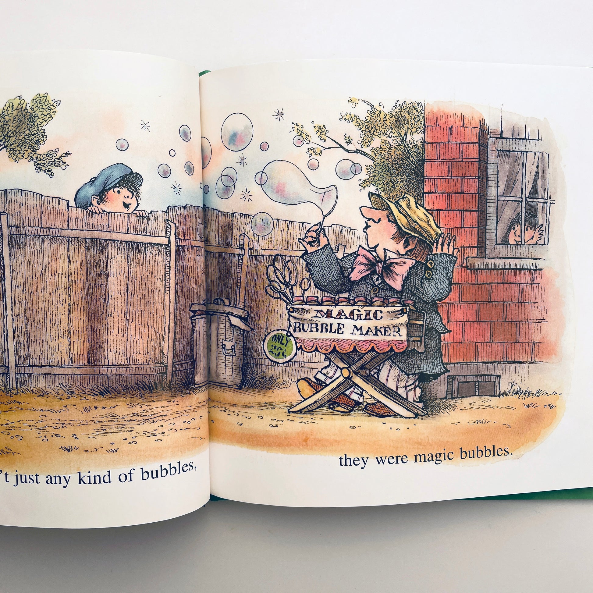 As the boy in this story learns, blowing magic bubbles is a lot of fun–until one of those bubbles turns into a snake! His solution is: to blow a magic bubble that turns into a wild cat that chases the snake away. But what will he do with the vicious wild cat? Blow a bubble that turns into an elephant, of course! When the elephant gets raucous, he blows a bubble in the shape of a mouse to frighten the elephant away. Tired out from a day of bubble blowing, he pops the bubbles, pours out his magic solution, and heads home. After all, there is no such thing as magic bubbles–but a dragon that appears on the last page will make readers question that statement! Mercer Mayer's lively illustrations accompany this magical tale.