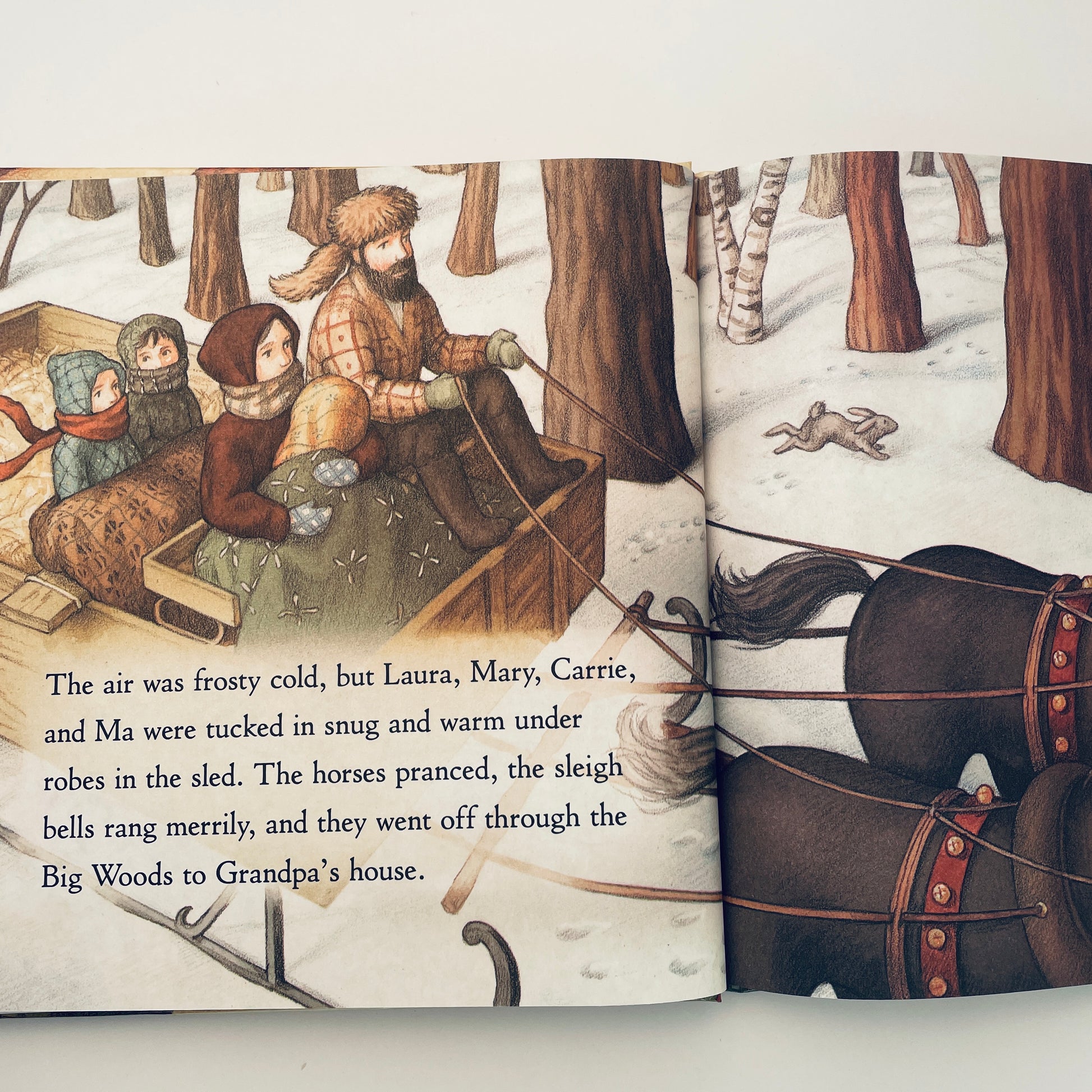 Laura, Pa, Ma, Mary, and baby Carrie are going to a party at Grandpa and Grandma’s house! There’s music, dancing, yummy food, and great company. It’s the best party Laura’s ever been to!