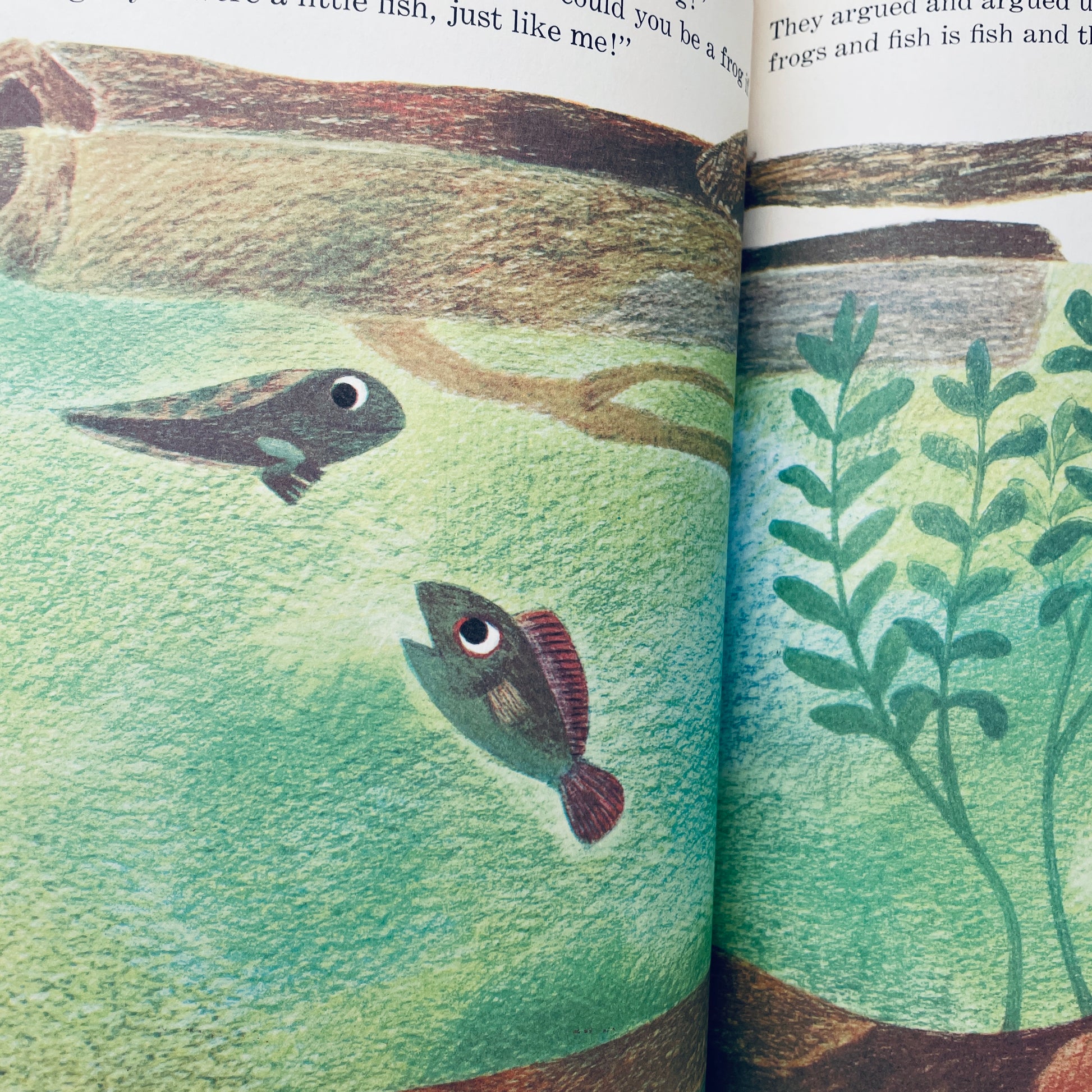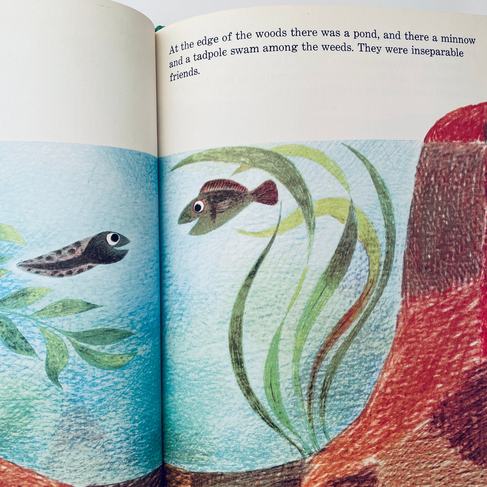 Two best friends, a minnow and a tadpole, are practically inseparable until the tadpole grows legs and decides to explore the world beyond the pond. When the tadpole, now a frog, returns to tell his friend of the extraordinary things he’s seen, the minnow, now a fish, tries to follow in his footsteps, but quickly finds that land is not what he expected. Friendship truly saves the day in this imaginative tale of a fish out of water.