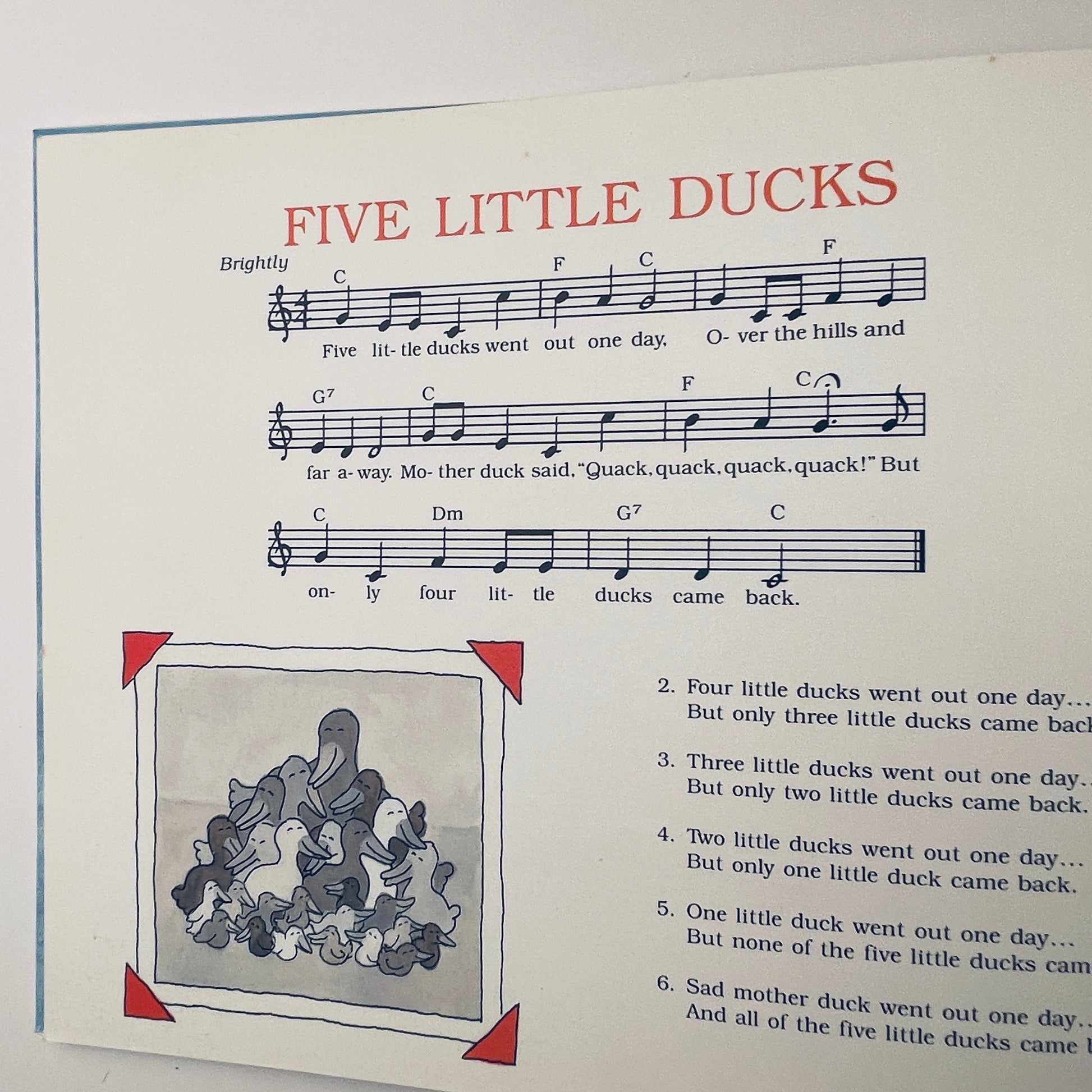 Babies and toddlers will love counting down as first five little ducks, then four, then three, then two, then one go out to play, not to return. Mother Duck waits until spring returns and with it her five ducks, all grown up-along with their new families of baby ducks. With sweet illustrations by veteran children's book artists Jose Aruego and Ariane Dewey, this lovely counting song will invoke squeals of delight.