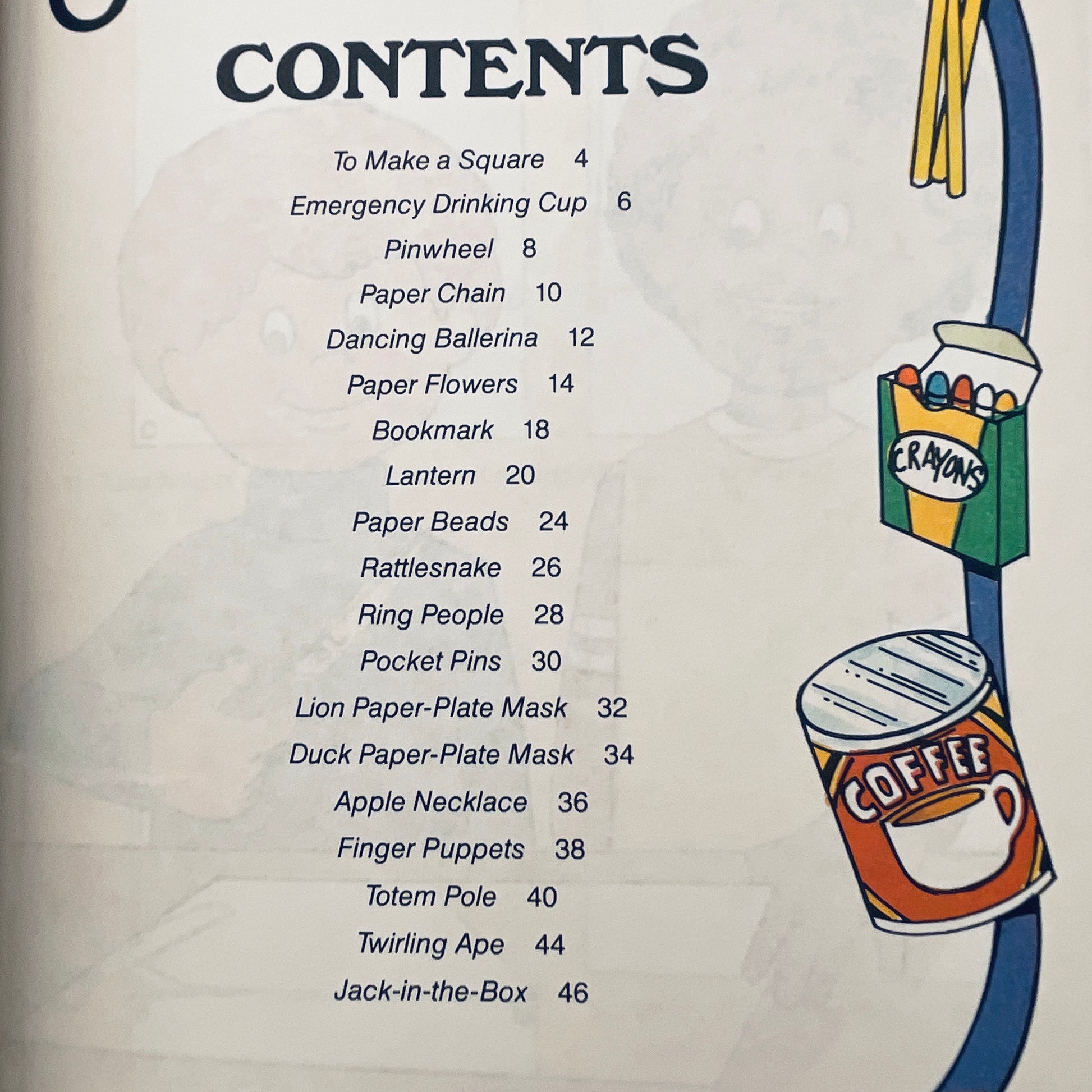 Instructions for making a cup, flowers, a lantern, jewelry, masks, and other useful or decorative items from paper.
