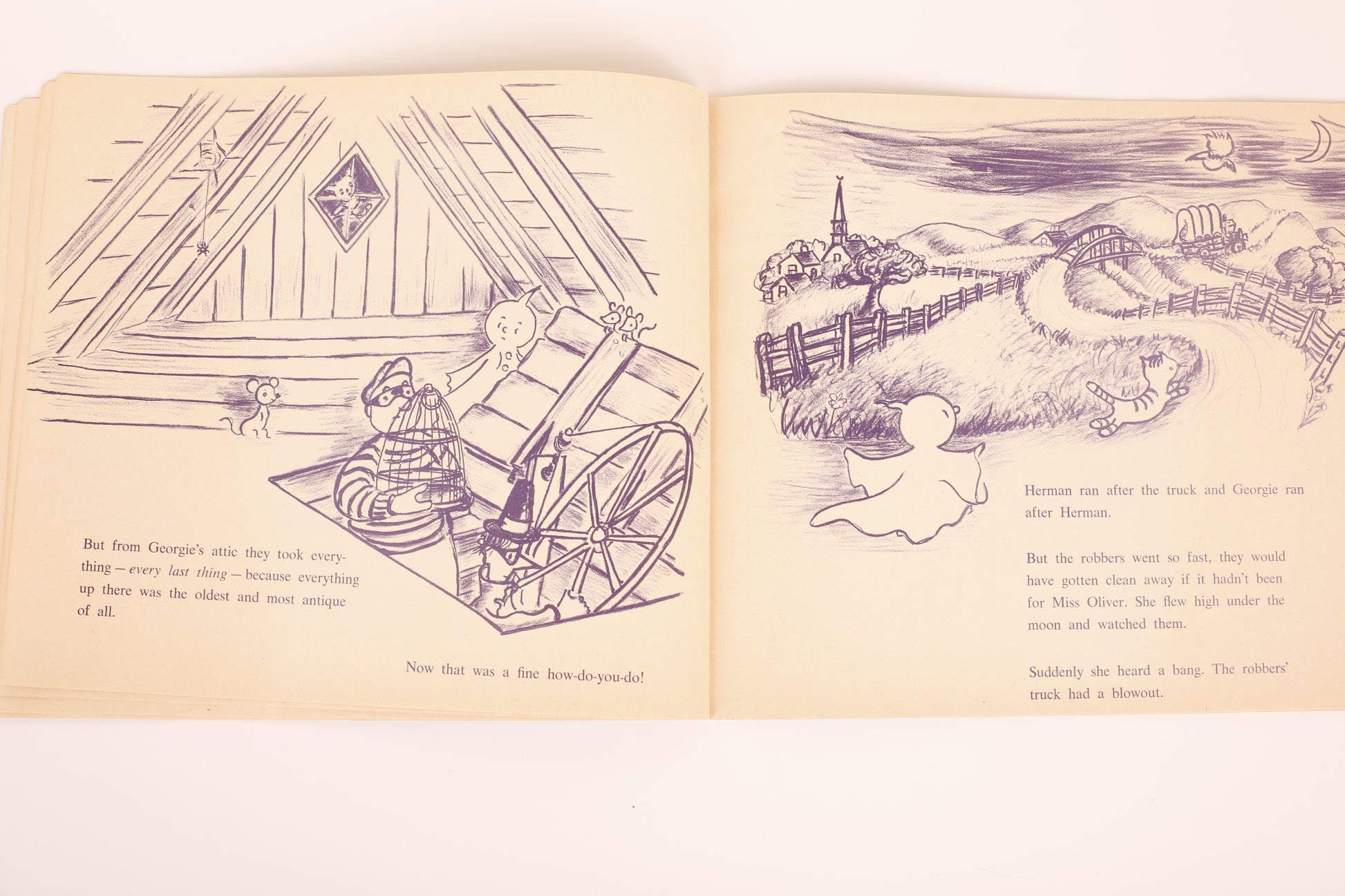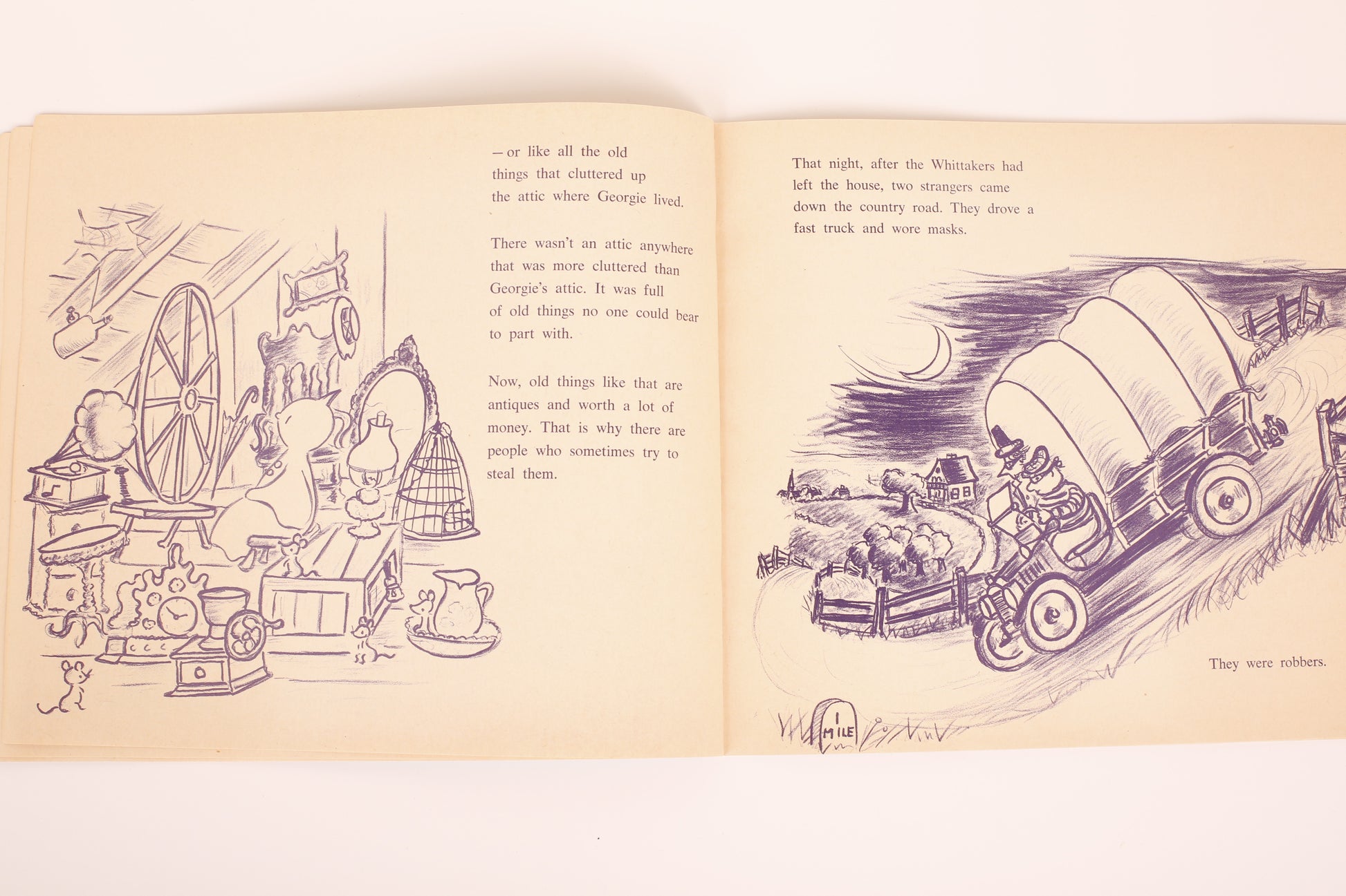 The bumbling robbers who are after old Mr. and Mrs. Whittakers' antique furniture are no match for Georgie the ghost and his friends, Miss Oliver the owl and Herman the cat. Part of the Georgie the Ghost series.