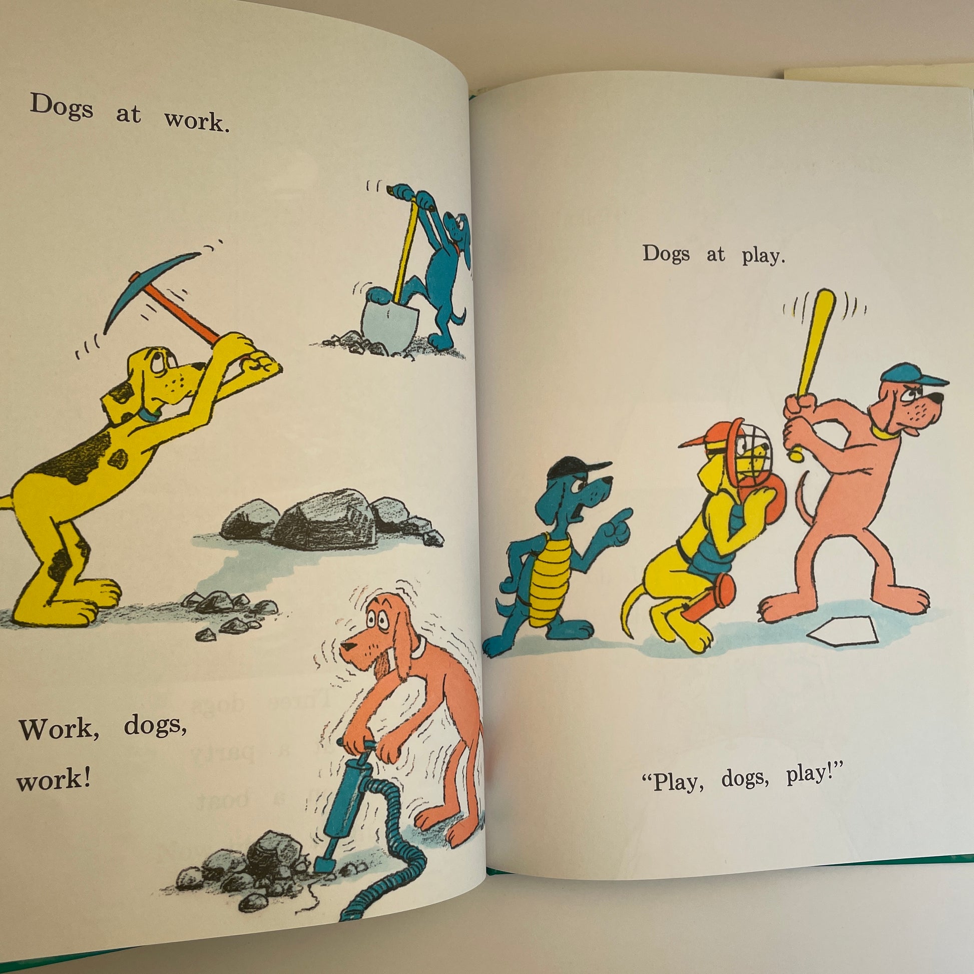 Big dogs. Little dogs. Red, blue, green dogs. Dogs of every shape, size and color are on the go in P. D. Eastman's classic Beginner Book. From sunup to sundown, these dogs work and play the whole day through and in every place imaginable. Up and down, in and out, round and round–they race, they climb, they party, too! These dogs know how to go, go, go!