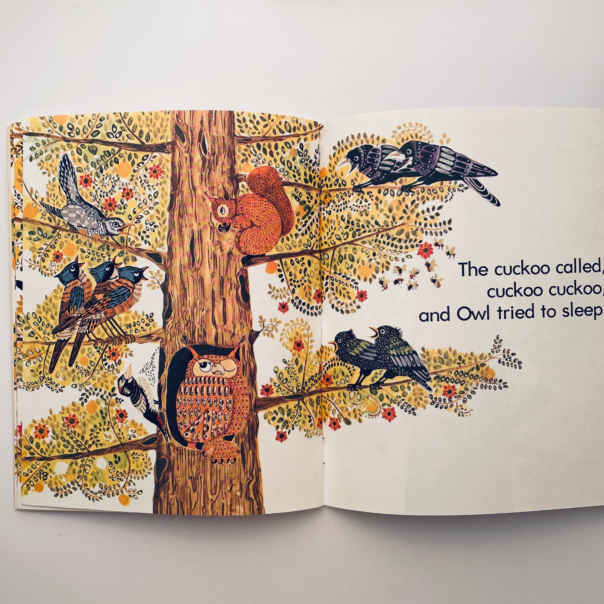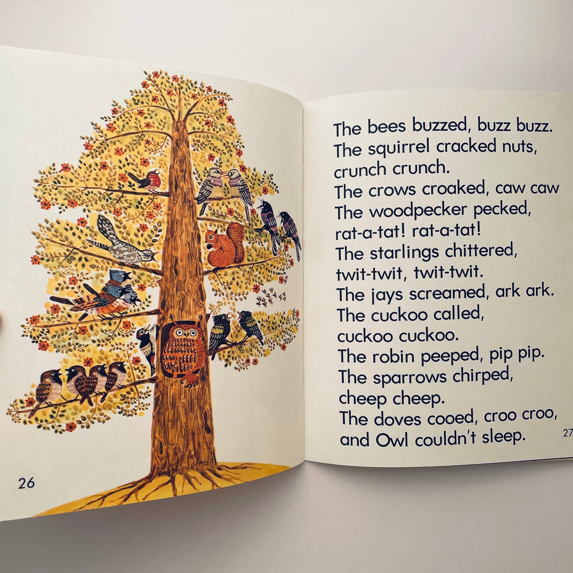 How is Owl supposed to sleep the day away with the bees buzzing, the woodpecker pecking, the doves cooing, and the squirrels crunching? But when night falls and everything is finally quiet, suddenly there’s a new sound—and it’s coming from Owl!