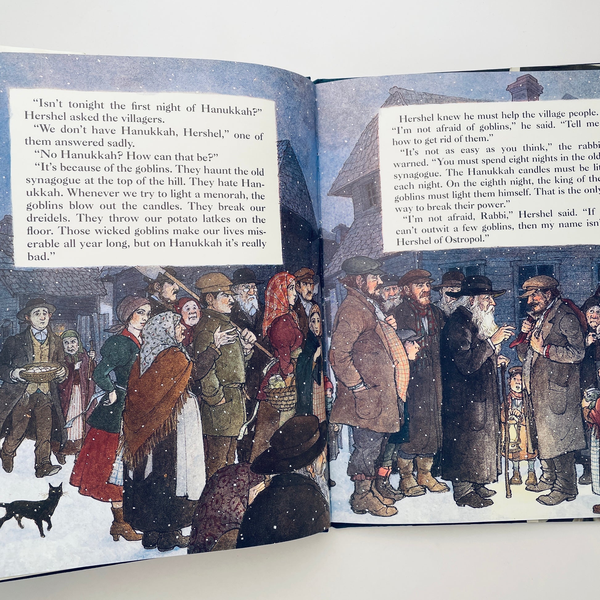 On the first night of Hanukkah, a weary traveler named Hershel of Ostropol eagerly approaches a village, where plenty of latkes and merriment should warm him. But when he arrives not a single candle is lit. A band of frightful goblins has taken over the synagogue, and the villagers cannot celebrate at all! Hershel vows to help them. But can one man alone stand up to the goblins, save Hanukkah, and live to tell the tale?