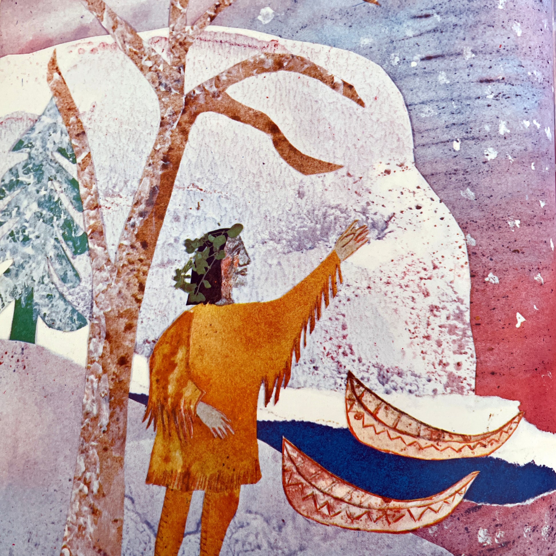 When the giant Winter came down from the North to live in eastern Canada the land became frozen and white. Glooskap, mythical lord and creator of the Micmac Indians, saves his people from endless cold when he brings a beautiful Queen to his country. Her name is Summer and she persuades Winter to relax his icy grip every Spring while she awakens the land from its deep sleep and bestows life on everything that grows.