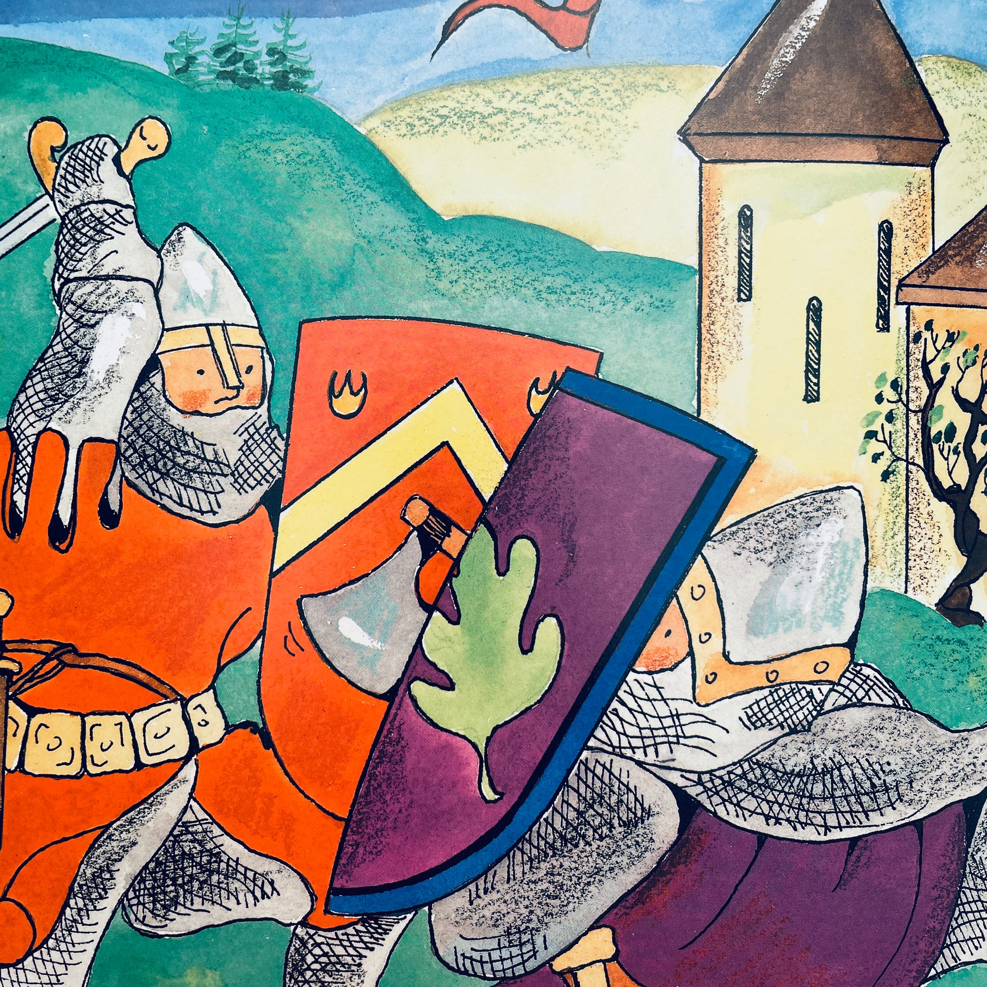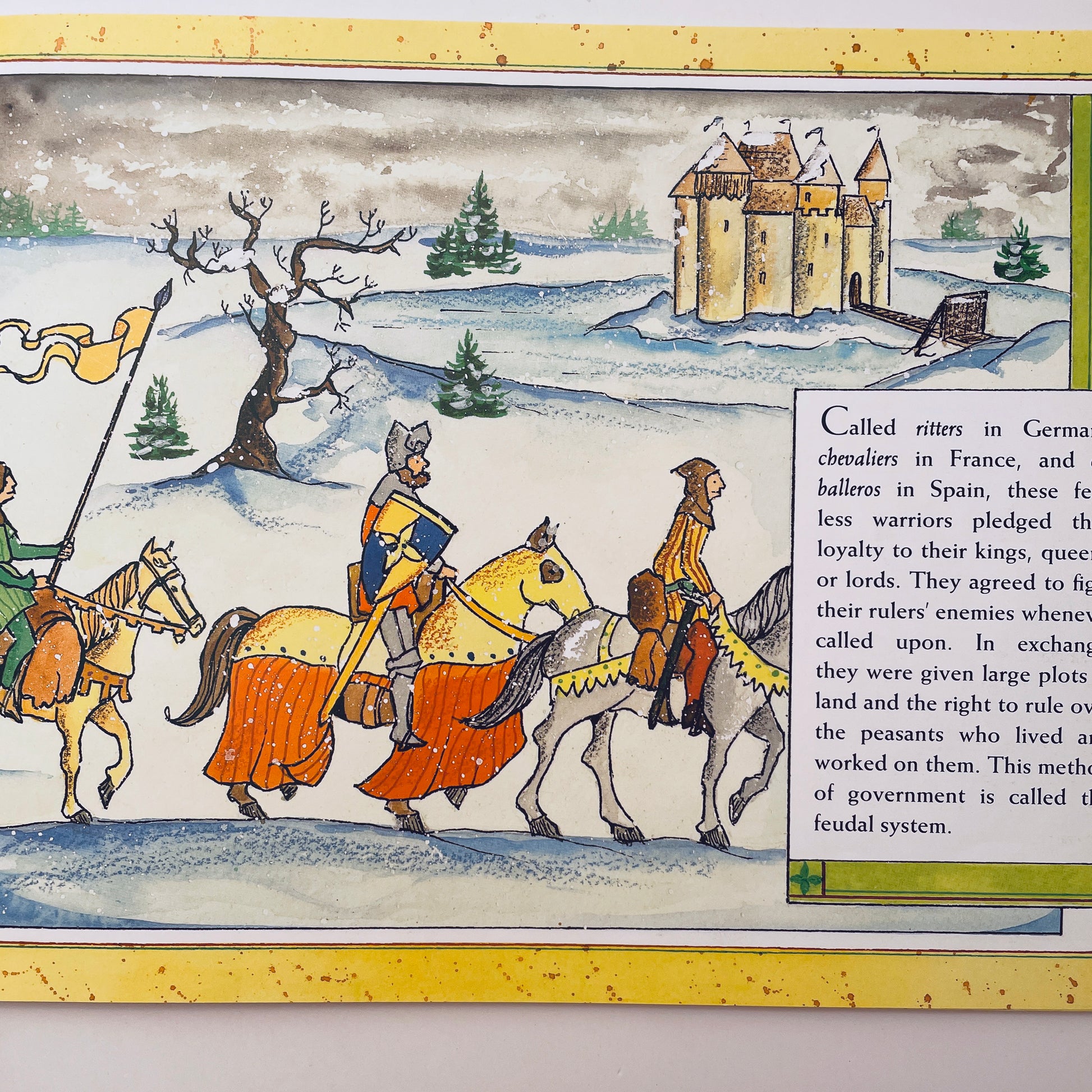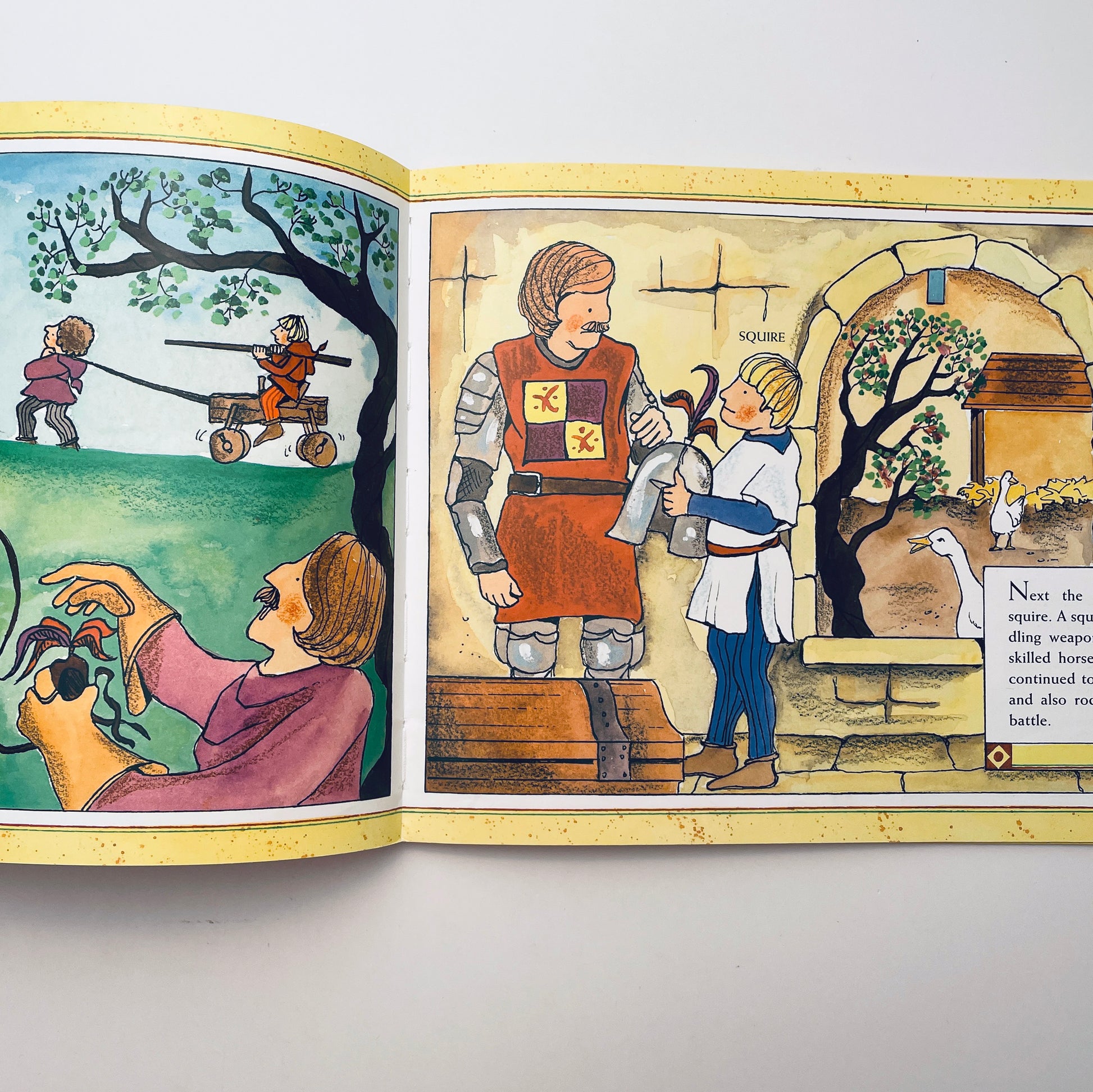 "Children won't want to surrender this book, so buy multiple copies," says Booklist of this ideal picture book primer on medieval knights. The author covers tournaments, chivalry, and what happened when a bad knight was caught. Legendary knights such as Sir Gawain and the knights of the Round Table are included, as is St. George and the dragon, and Gibbons also discusses present-day knights. With all of the excitement clearly rendered in clean pen and ink and watercolor, there's plenty of fighting, decorative clothing and heraldry, as well as clear labels pointing out the parts of a castle and the names of the armor pieces.