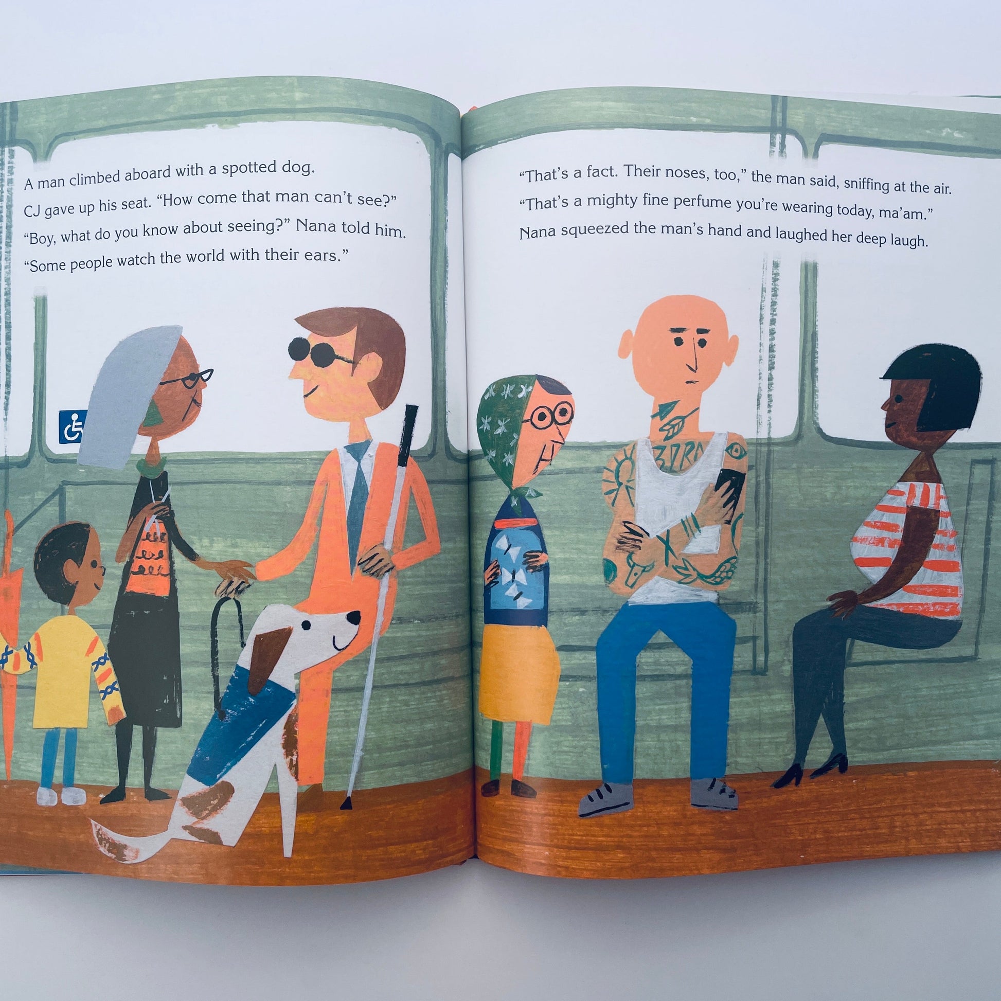 Every Sunday after church, CJ and his grandma ride the bus across town. But today, CJ wonders why they don’t own a car like his friend Colby. Why doesn’t he have an iPod like the boys on the bus? How come they always have to get off in the dirty part of town? Each question is met with an encouraging answer from grandma, who helps him see the beauty—and fun—in their routine and the world around them.
