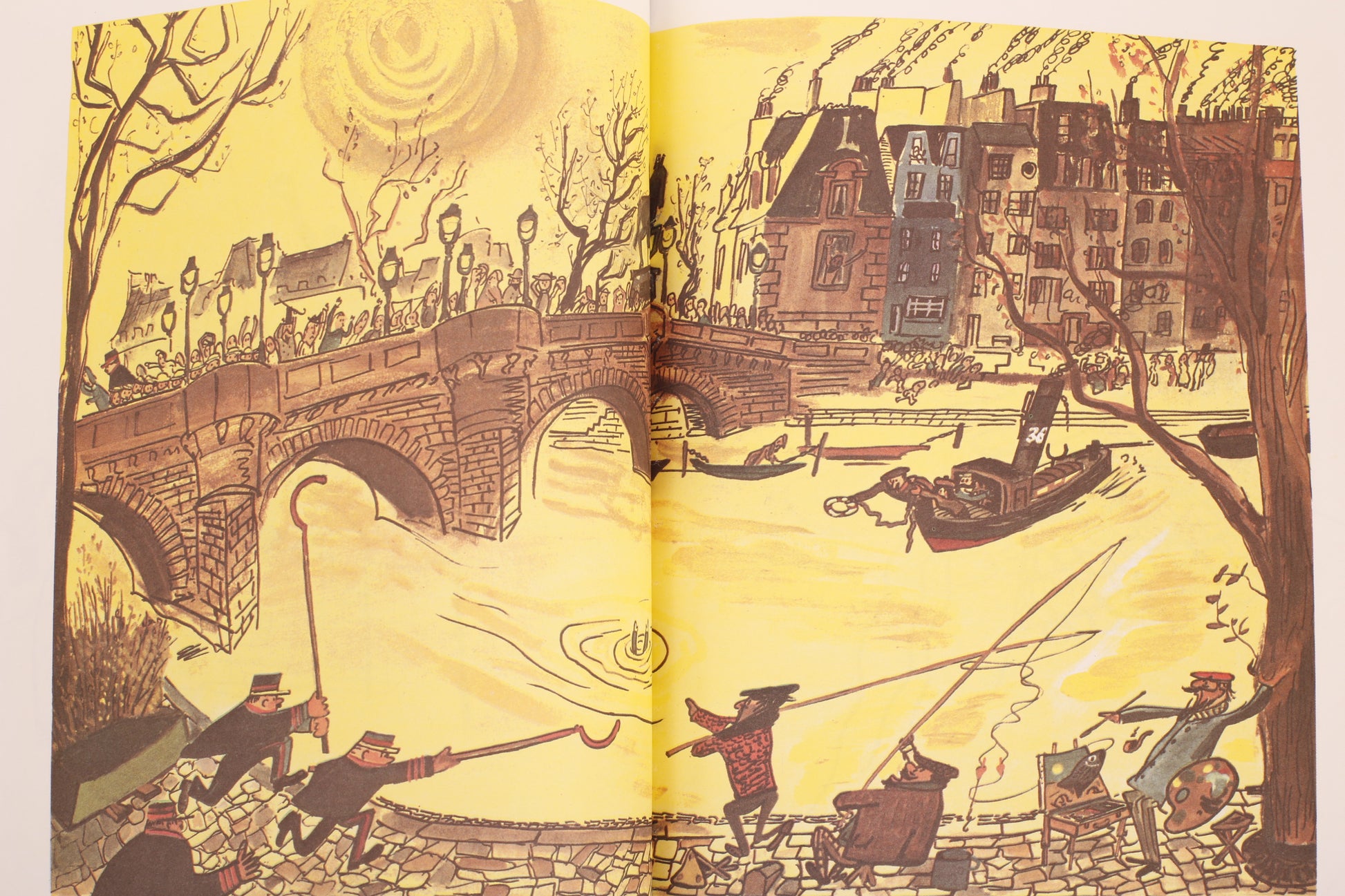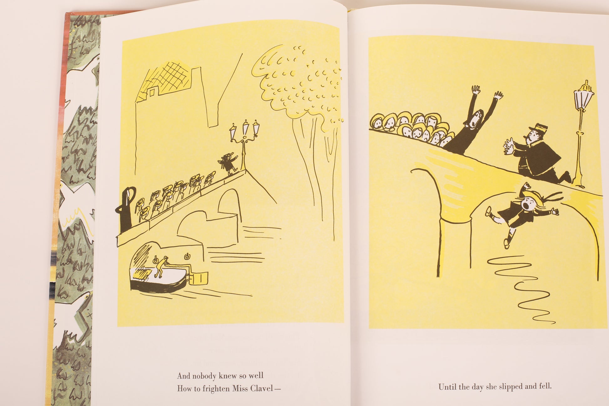 One day on a walk through Paris (a "twelve little girls in two straight lines" kind of walk), Madeline slips and falls off a bridge right into the Seine. Everyone feared she would be dead, "But for a dog / That kept its head," saving her from a "watery grave." What choice do Madeline and the girls have but to take the heroic pooch home, feed her biscuits, milk, and beef, and name her Genevieve? Sadly, when Lord Cucuface gets wind of the new dog, he decrees that no dogs will be allowed in the "old house in Paris that was covered with vines," and kicks Genevieve out on the street. Madeline vows vengeance, and the girls scour Paris looking for the pup: "They went looking high / and low / And every place a dog might go. / In every place they called her name / But no one answered to the same." As we've come to expect from Bemelmans, all's well that ends well chez Clavel, and young readers will be tickled by this heartwarming, quirky dog story with a surprise finale. Caldecott Medal Winner, 1954