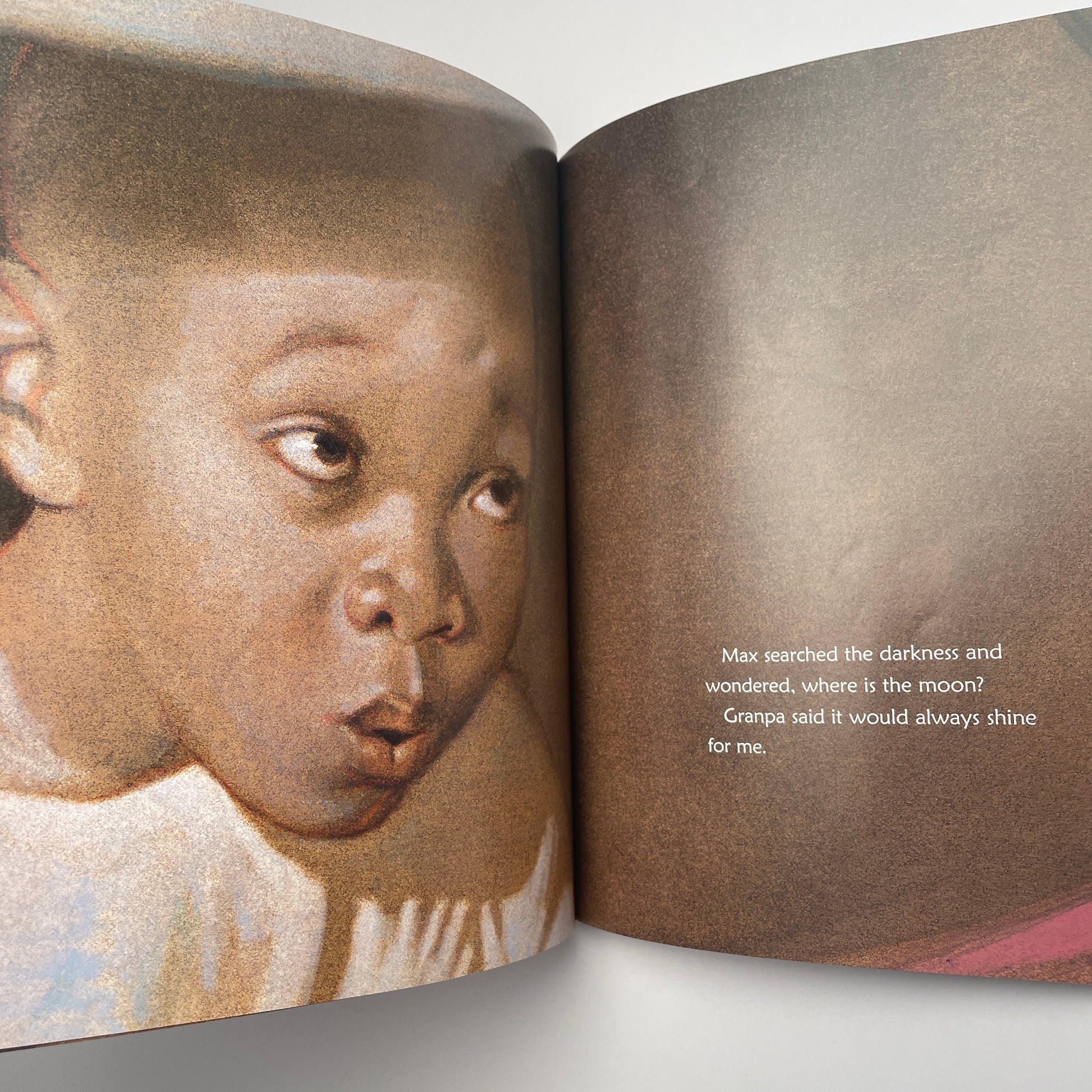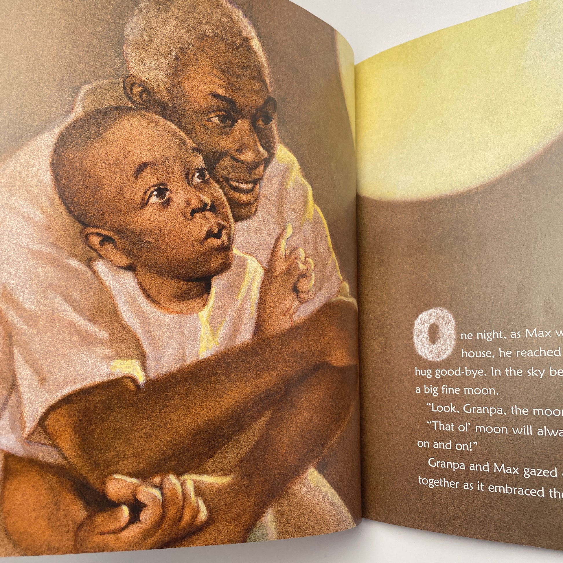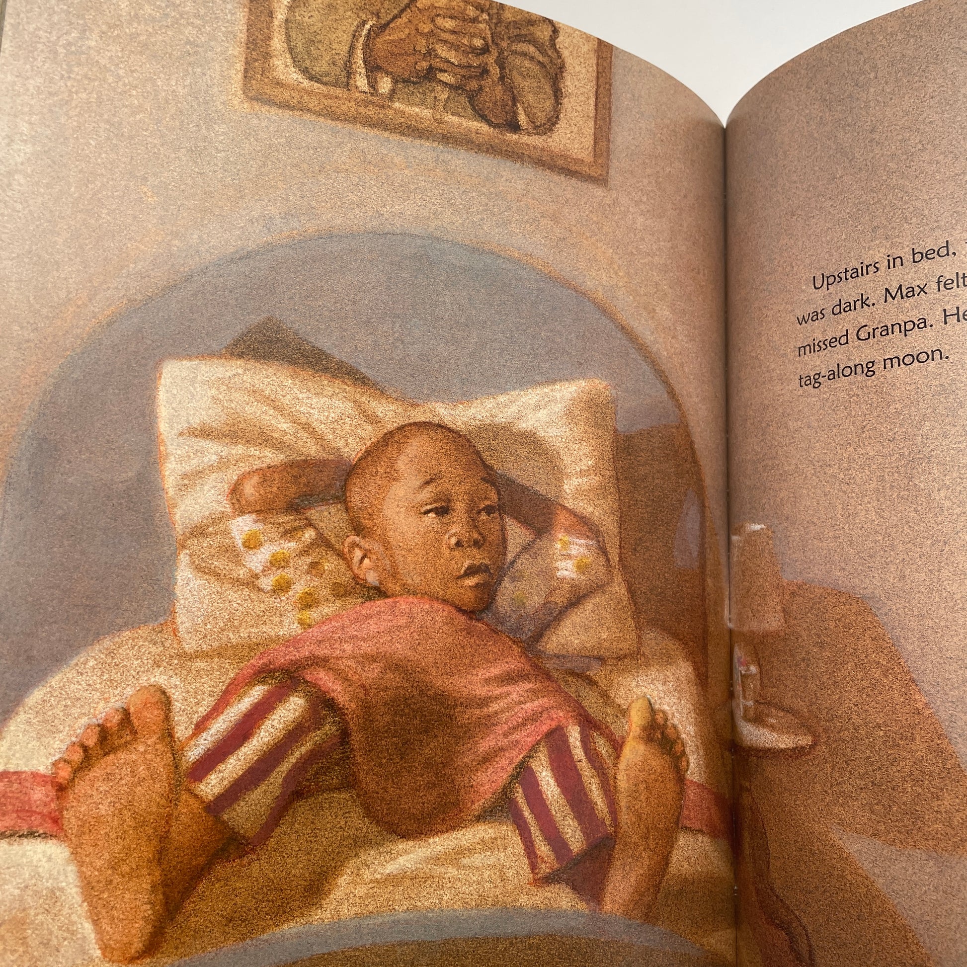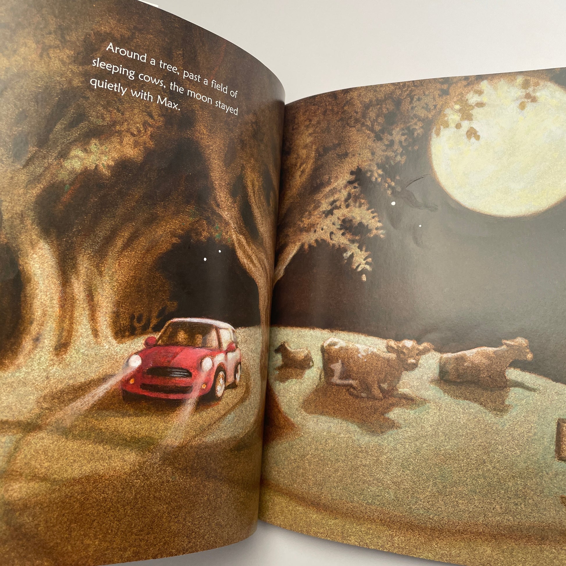 Max loves his grandpa. When they must say good-bye after a visit, Grandpa reminds Max that the moon above them at Grandpa’s house is the same moon that will follow him all the way home. And on that swervy-curvy car ride back home Max smiles as the moon tags along, thinking of Grandpa. But when the sky darkens and the moon disappears behind clouds, Max worries that it did not follow him home after all. Yet when the clouds part and light streams through his window, he realizes that Grandpa was right—the moon was with him all along.