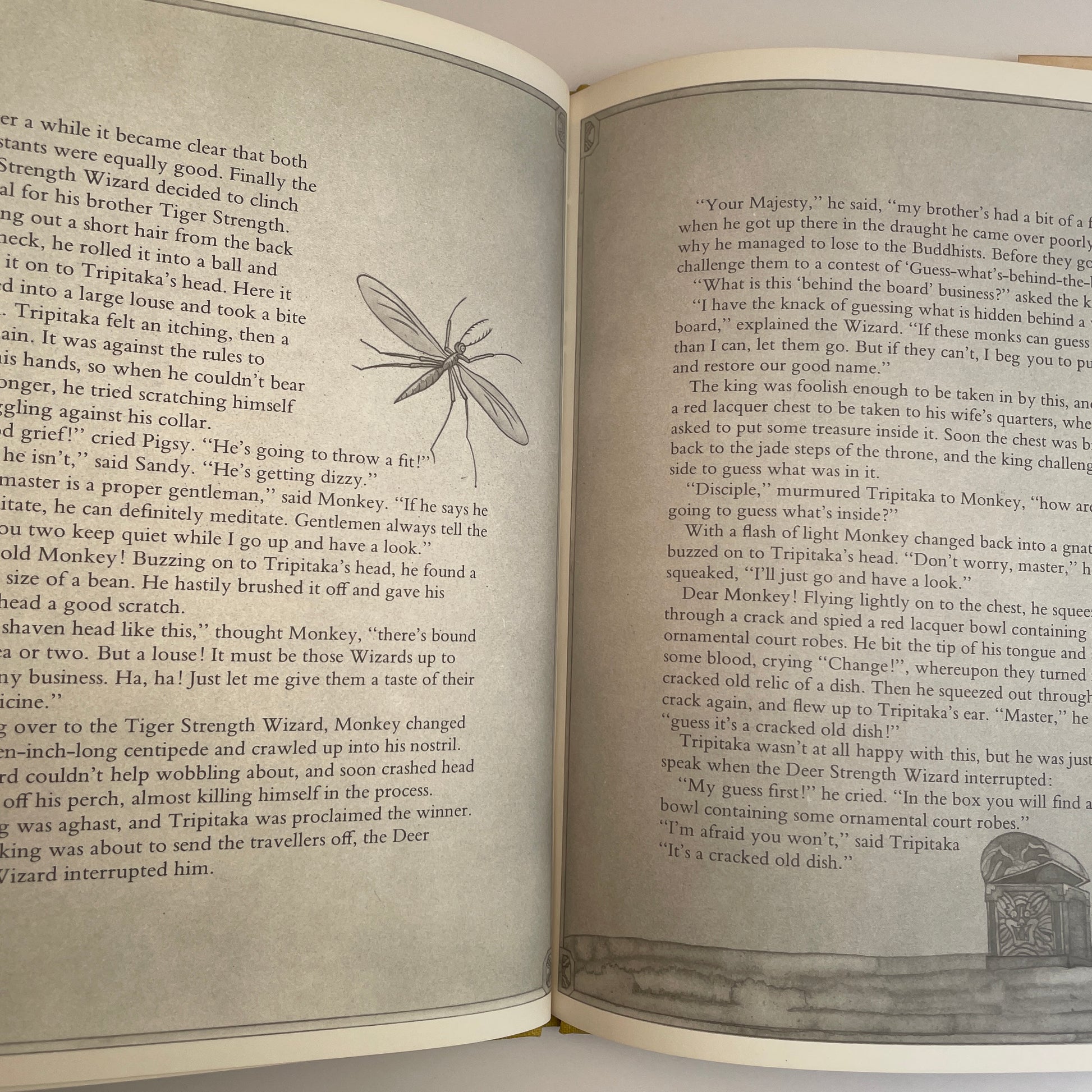 This book is based on a single episode from the epic adventure Journey to the West, written in China about 400 years ago and is thought to be the work of Wu Cheng-en. If it was, he appears to have based the story on a series of marvellous legends that grew up around the Buddhist monk Tripitaka, who in the sixth century A.D. travelled thousands of miles from China to India to collect Buddhist scriptures for the Emperor of China. How Monkey got into Tripitaka's story, no one knows, but wherever he came from he soon snatched the limelight with his wily cunning, his cheekiness and his fabulous magic. Monkey and the Three Wizards is perhaps the best showcase for this fantastic magic, for it tells the story of how Monkey's powers are challenged by three powerful wizards. With amazing oneup-manship Monday outwits all three of them in a series of spectacular magic contests that explode one after the other like a string of Chinese firecrackers.