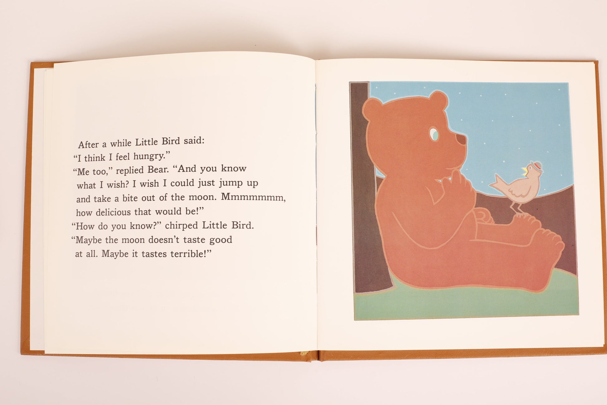 One night while watching the moon, Moonbear turns to Little Bird and asks, “I wonder what the moon tastes like?” The ever-curious Moonbear begins a quest that ends up taking him all the way to the moon and back again.