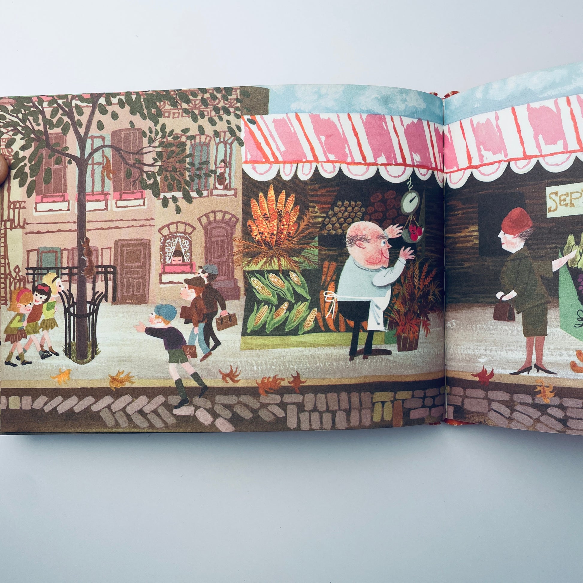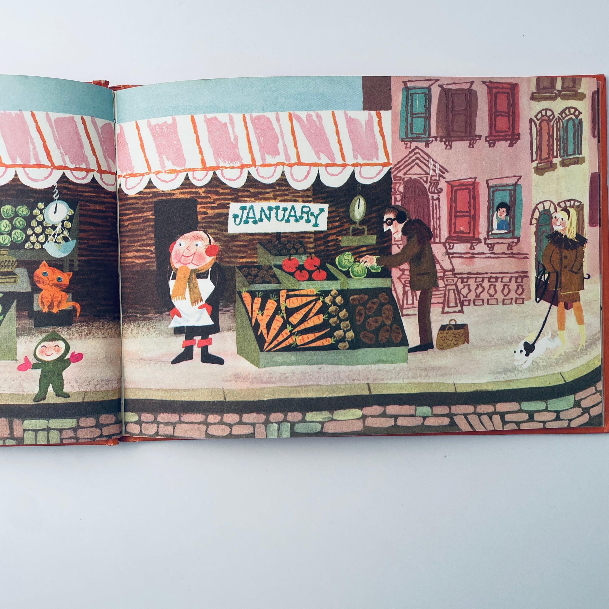 Beautifully illustrated wordless book that takes you through the months of the year in the life of Mr. Jolly's sidewalk market and, in doing so, the seasons of the year. A very rare collectible!