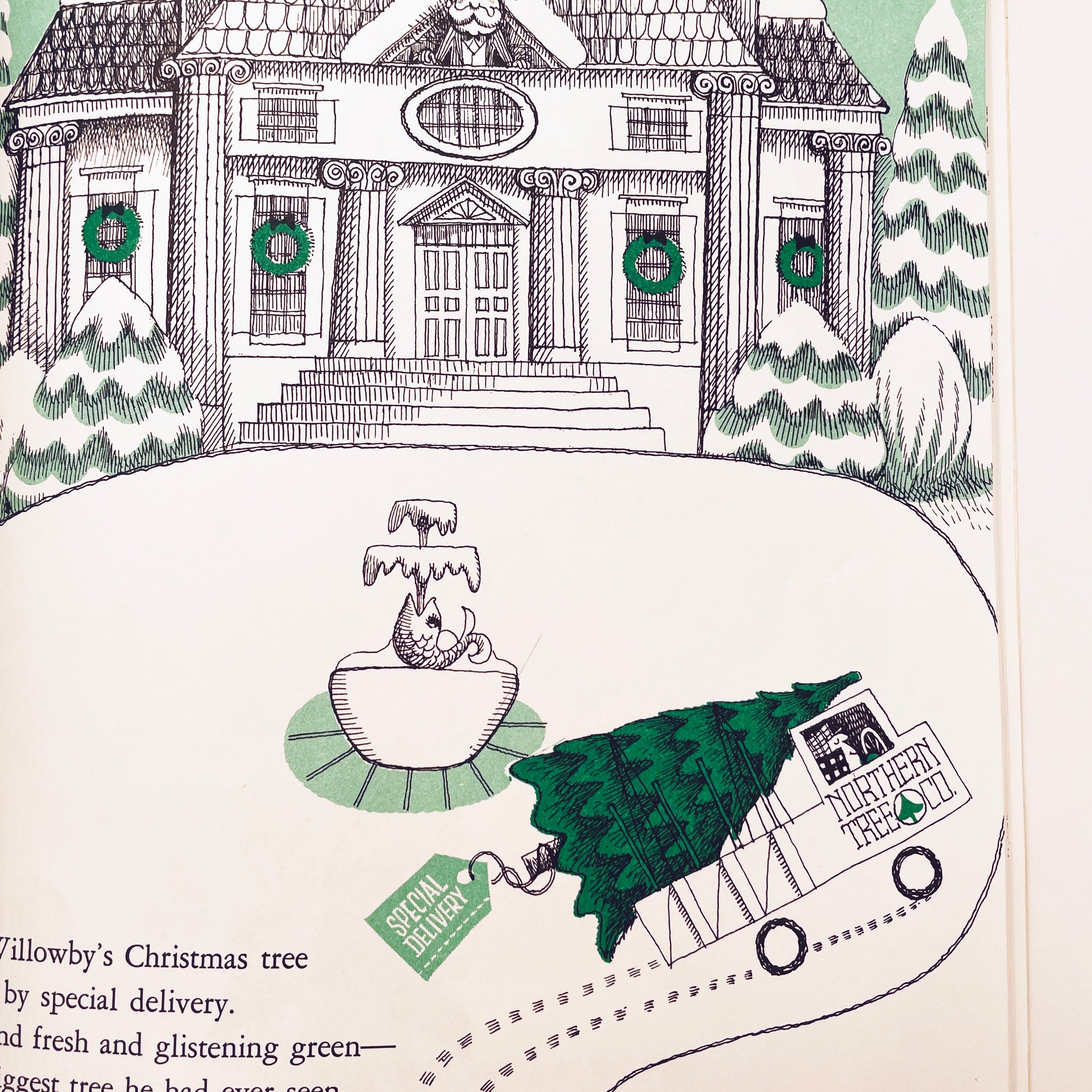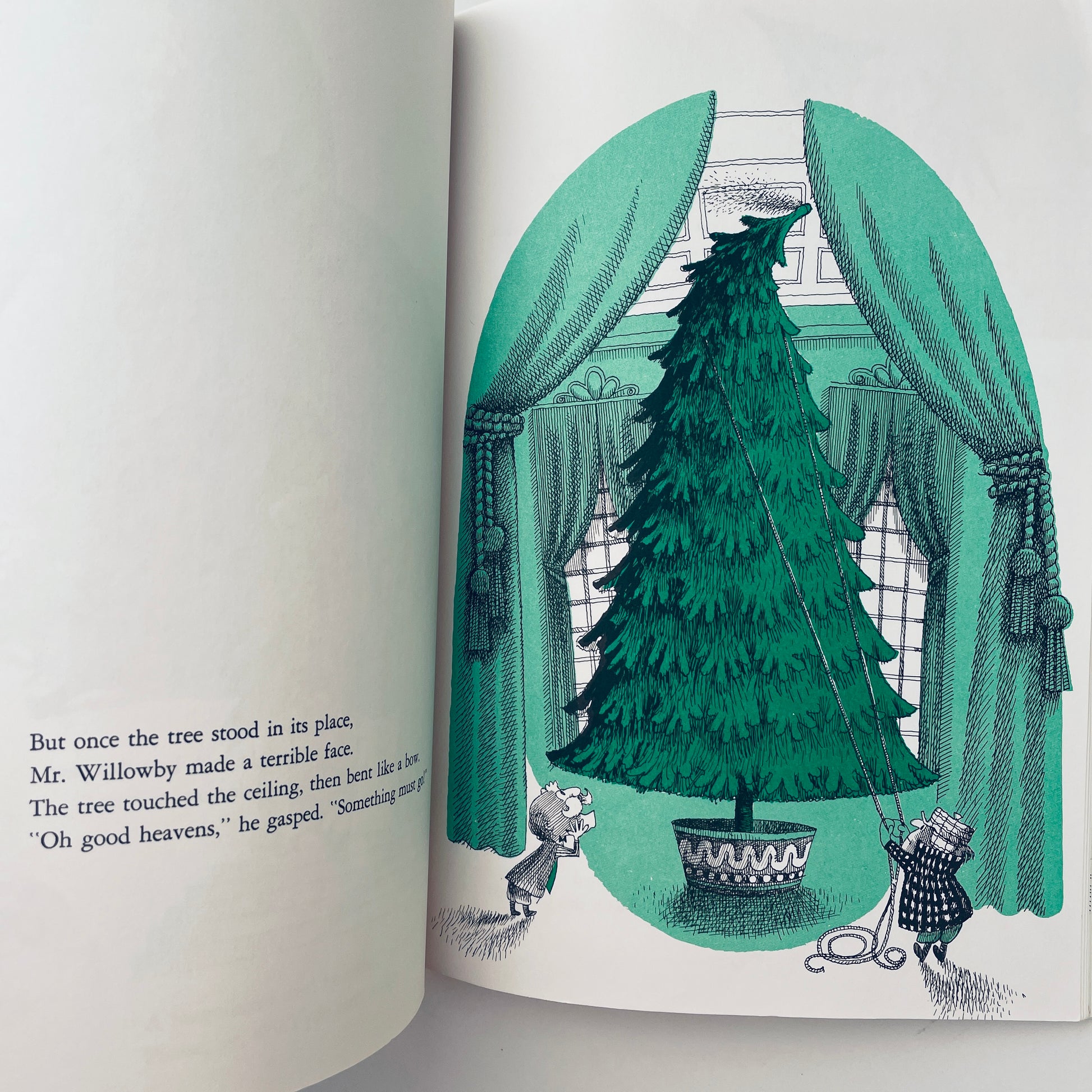 That was the trouble. Mr. Willowby's Christmas tree was so tall, it couldn't stand up straight in his parlor. Mr. Willowby asked his butler to chop off the top of the tree. What happens to the treetop? Where will it be for Christmas?