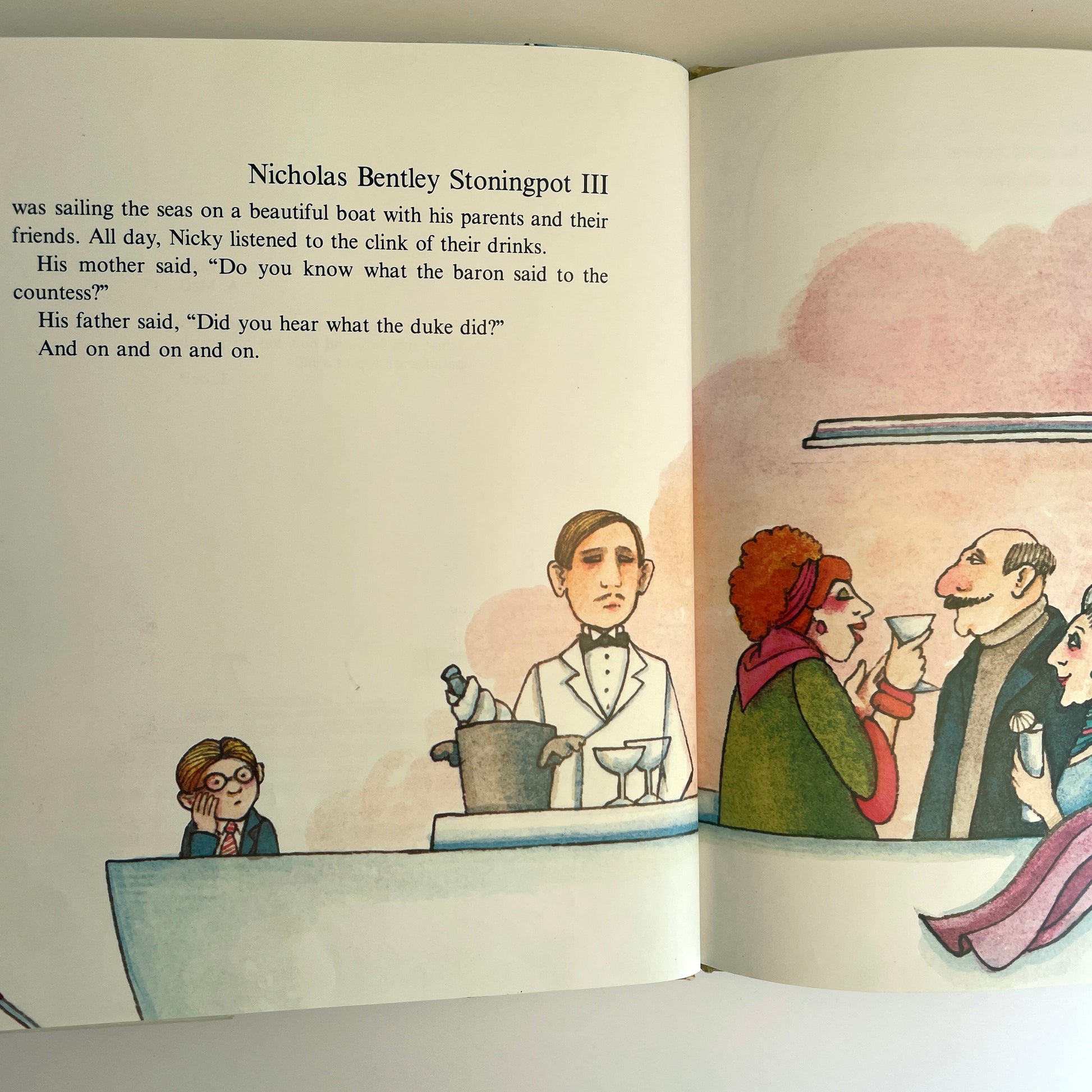 Nicholas Bentley Stoningpot III was bored while sailing the seas with his parents and their friends. He wanted adventure, and the grown-ups were too busy for him. One night during an awful storm, the big boat is smashed to pieces. Nicky is cast ashore on an island, ready to have the greatest adventures of his life.