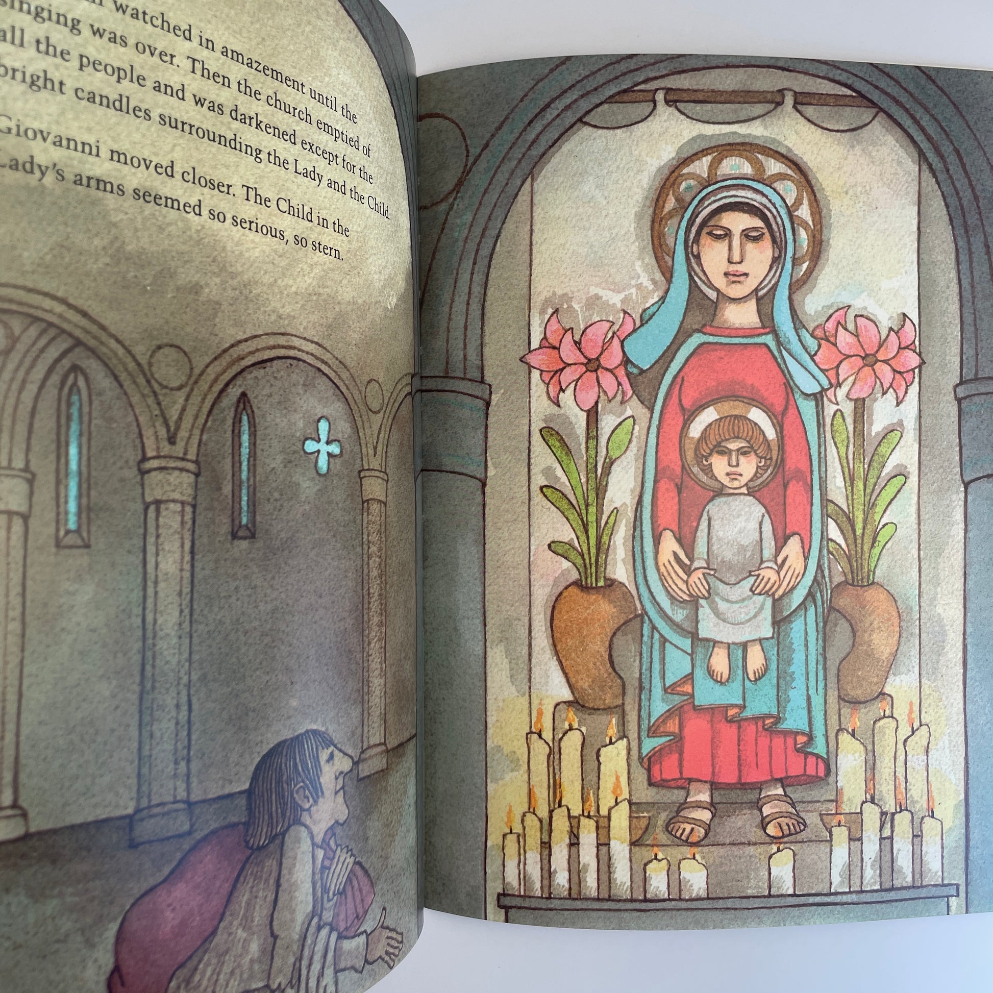 A once-famous Italian juggler, now old and a beggar, gives one final performance before a statue of Our Lady and the Holy Child.