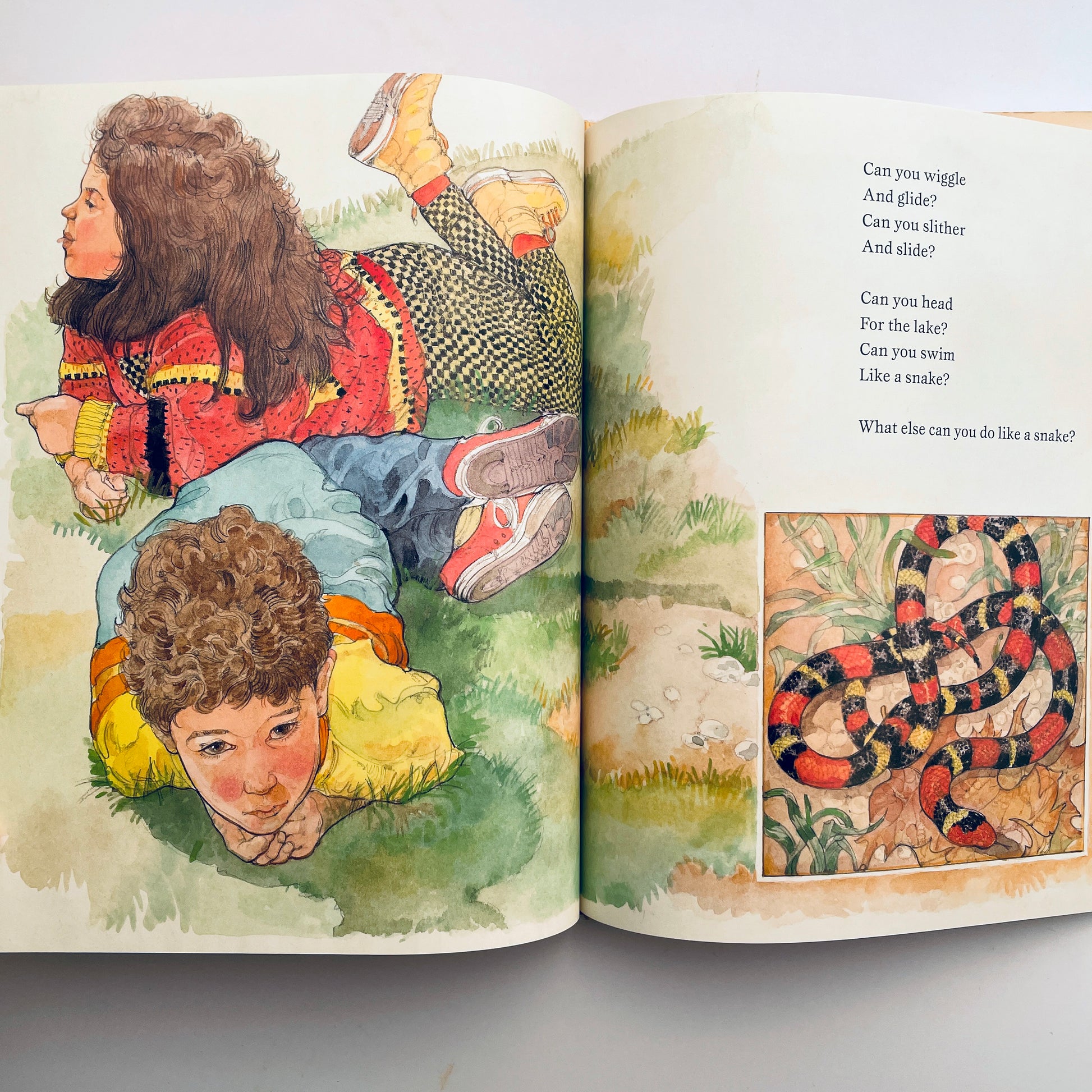 In this and twelve other rollicking verses noted author Jean Marzollo urges young readers to stretch their bodies, thinking and acting like a fish or a bird or a chick or a cow or any other animal they can imagine.
