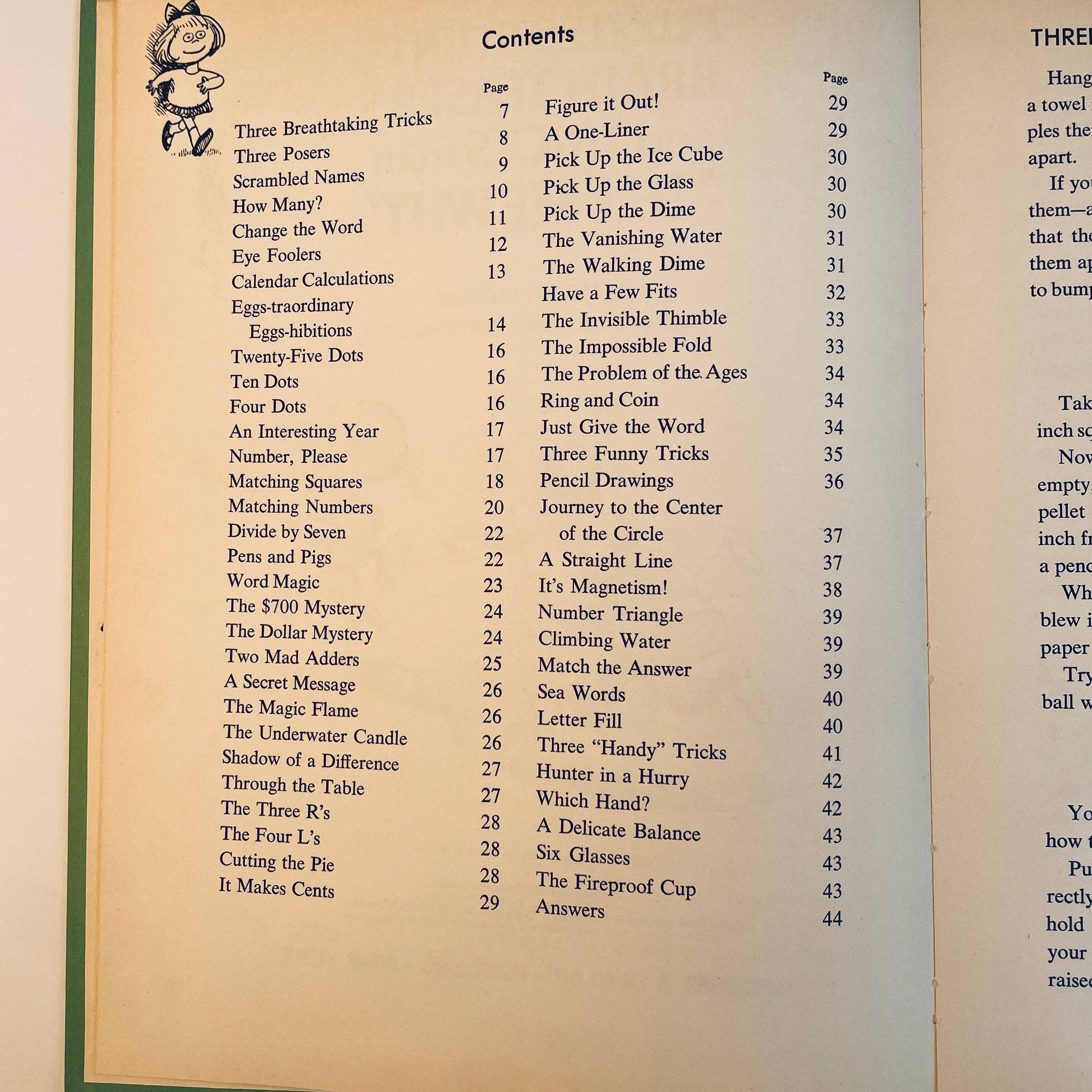 The book is designed to challenge and entertain young readers with a variety of mental exercises. Puzzles involve logical thinking and problem-solving, often requiring creative approaches to find solutions. Stunts are physical or mental challenges that can be performed, often involving a bit of showmanship or trickery. Brain Teasers are questions or problems designed to stimulate thought and require careful consideration to solve. Tricks are illusions or sleight-of-hand techniques that can be learned and performed for amusement. The book's focus on these elements makes it a great resource for children who enjoy testing their minds and learning new skills.