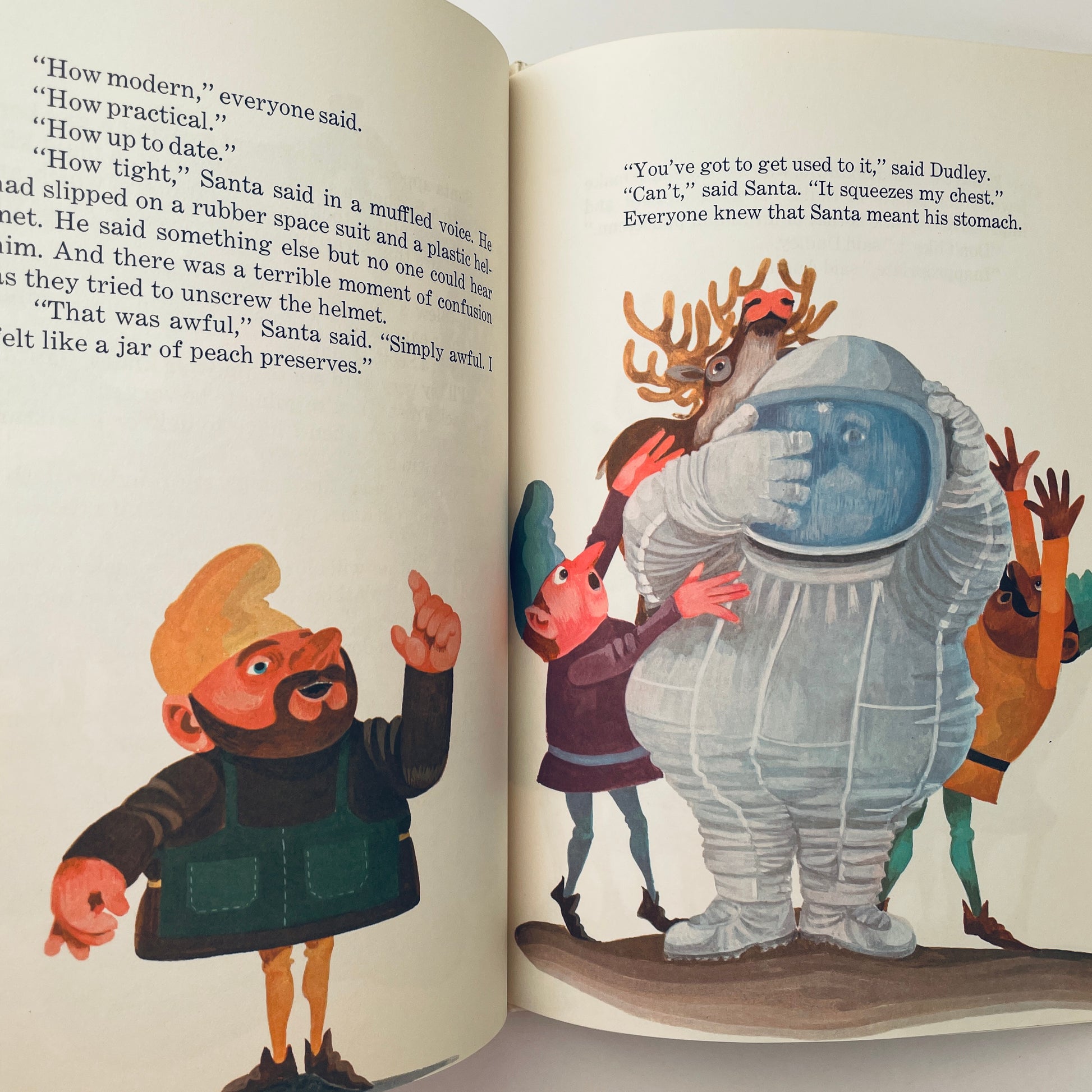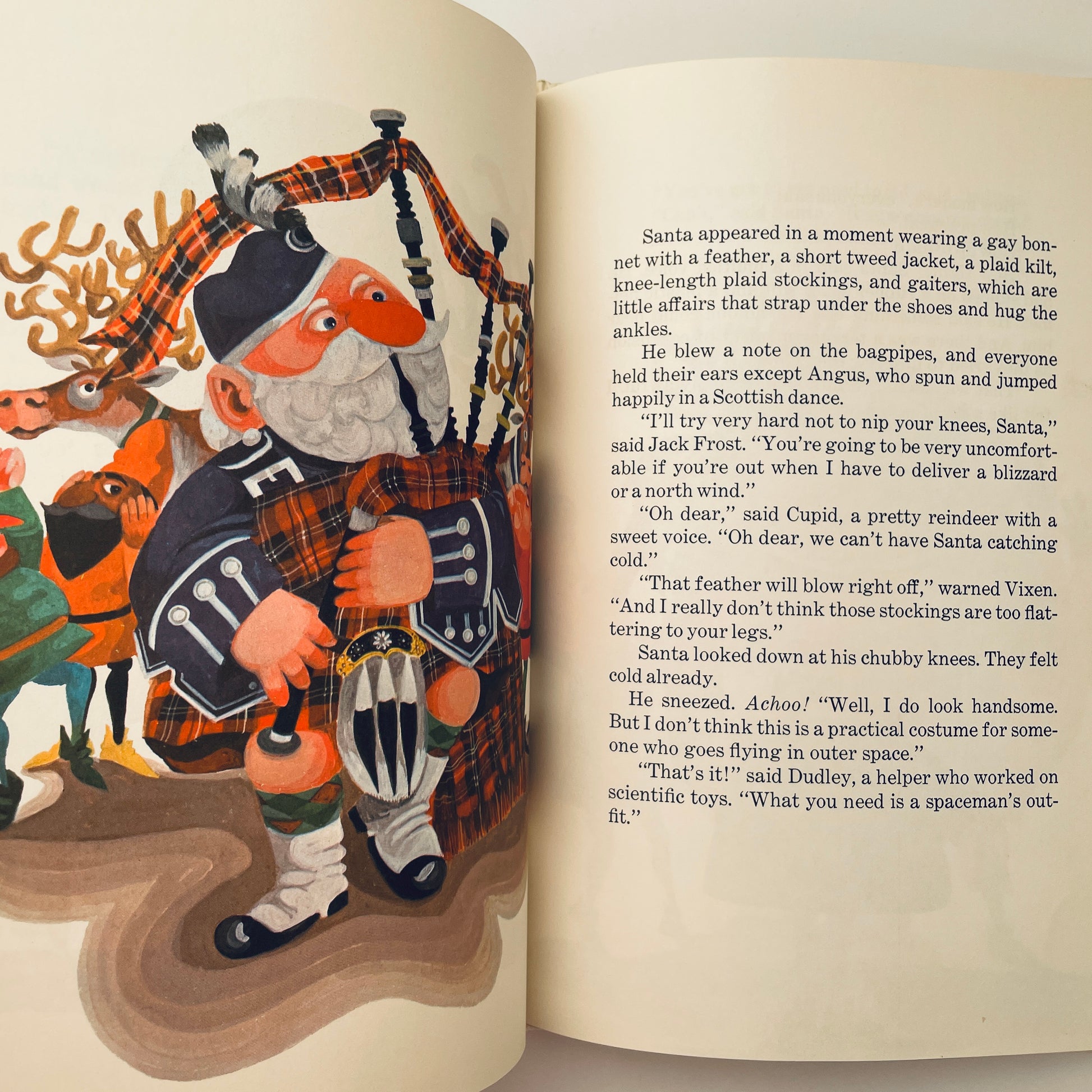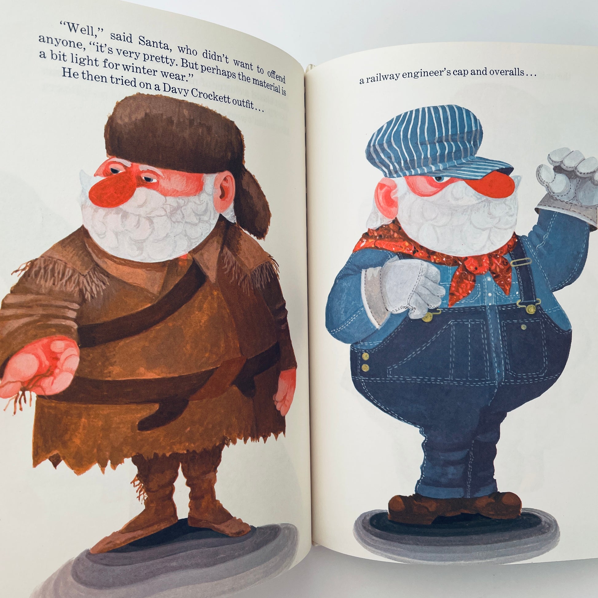 Tired of his old suit, Santa Claus asks his helpers to help him choose something different.