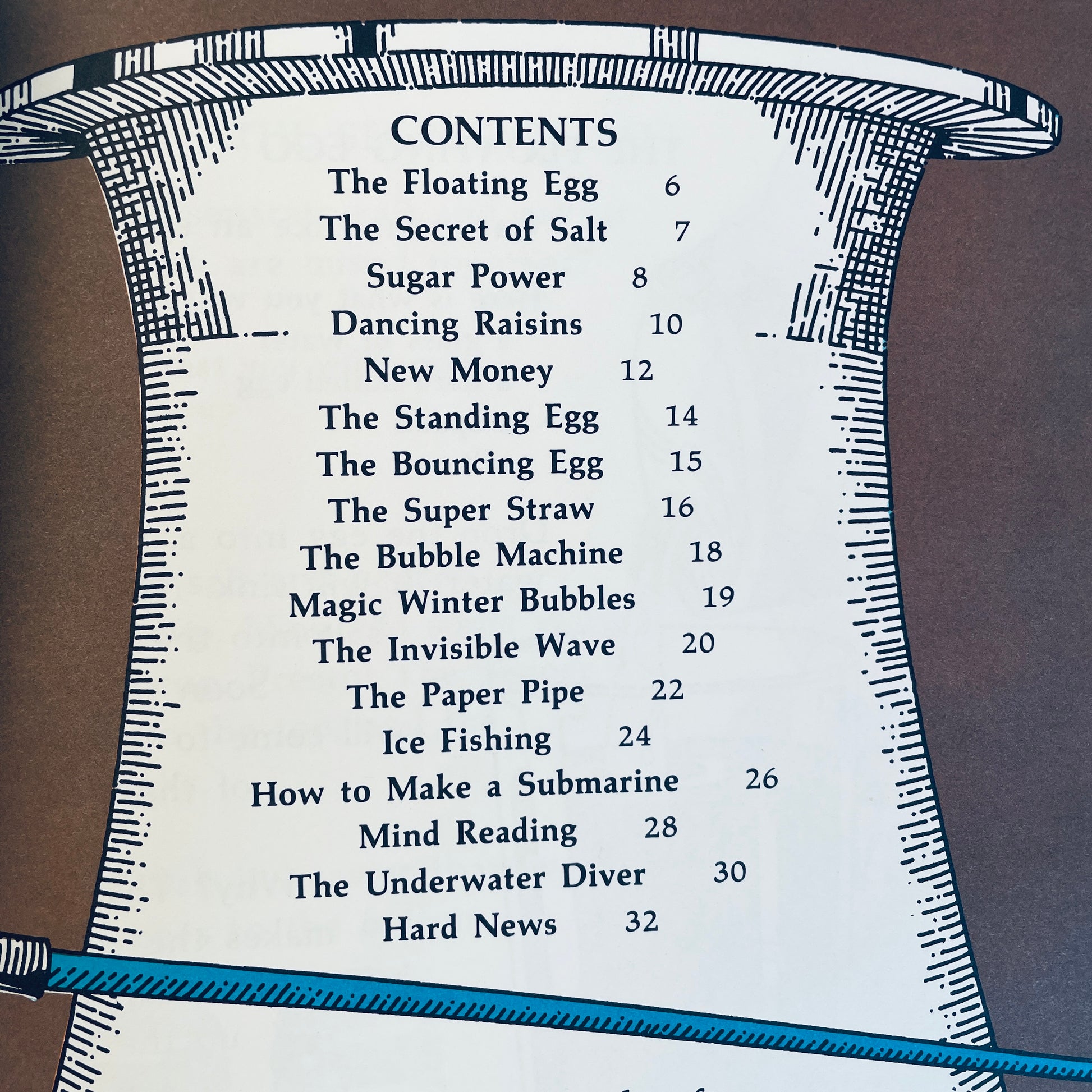 A variety of science tricks to experiment with including The Floating Egg, The Secret of Salt, Sugar Power, Dancing Raisins, New Money, The Super Straw, The Paper Pipe, Magic Winter Bubbles, The Invisible Wave and many more.