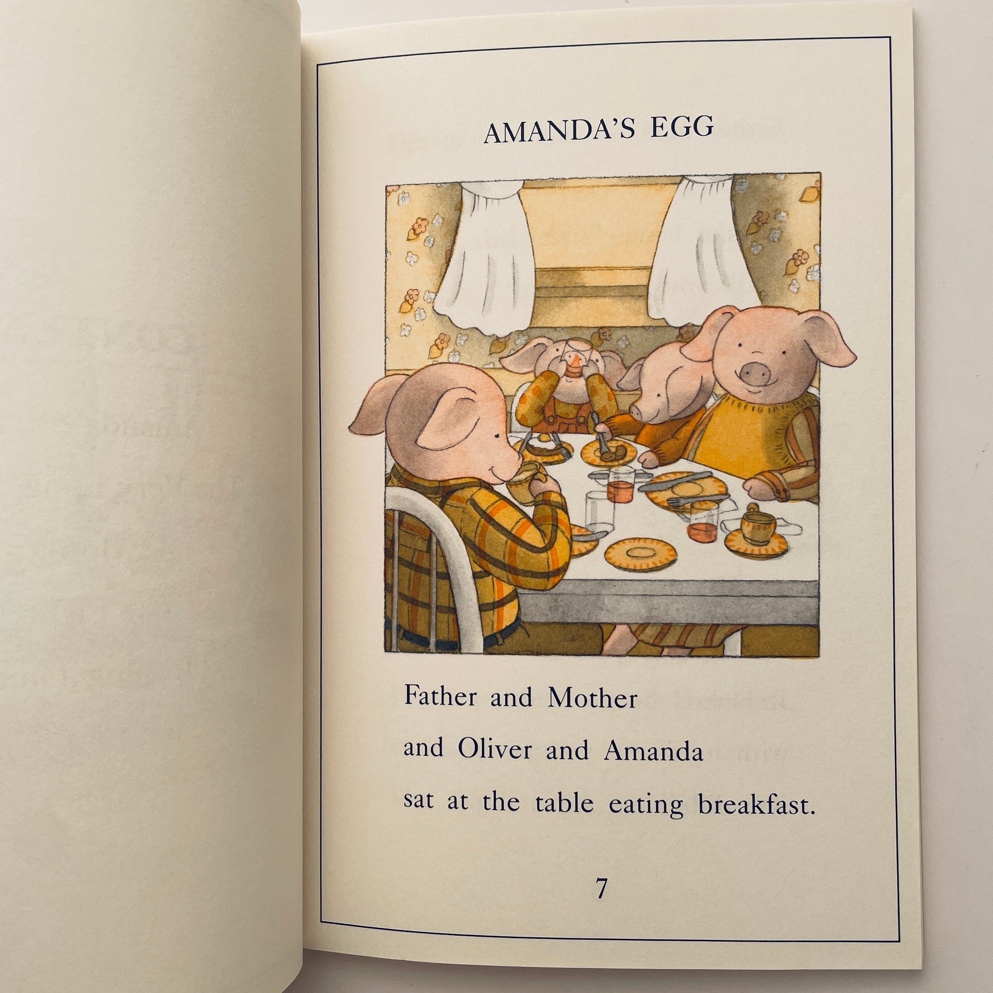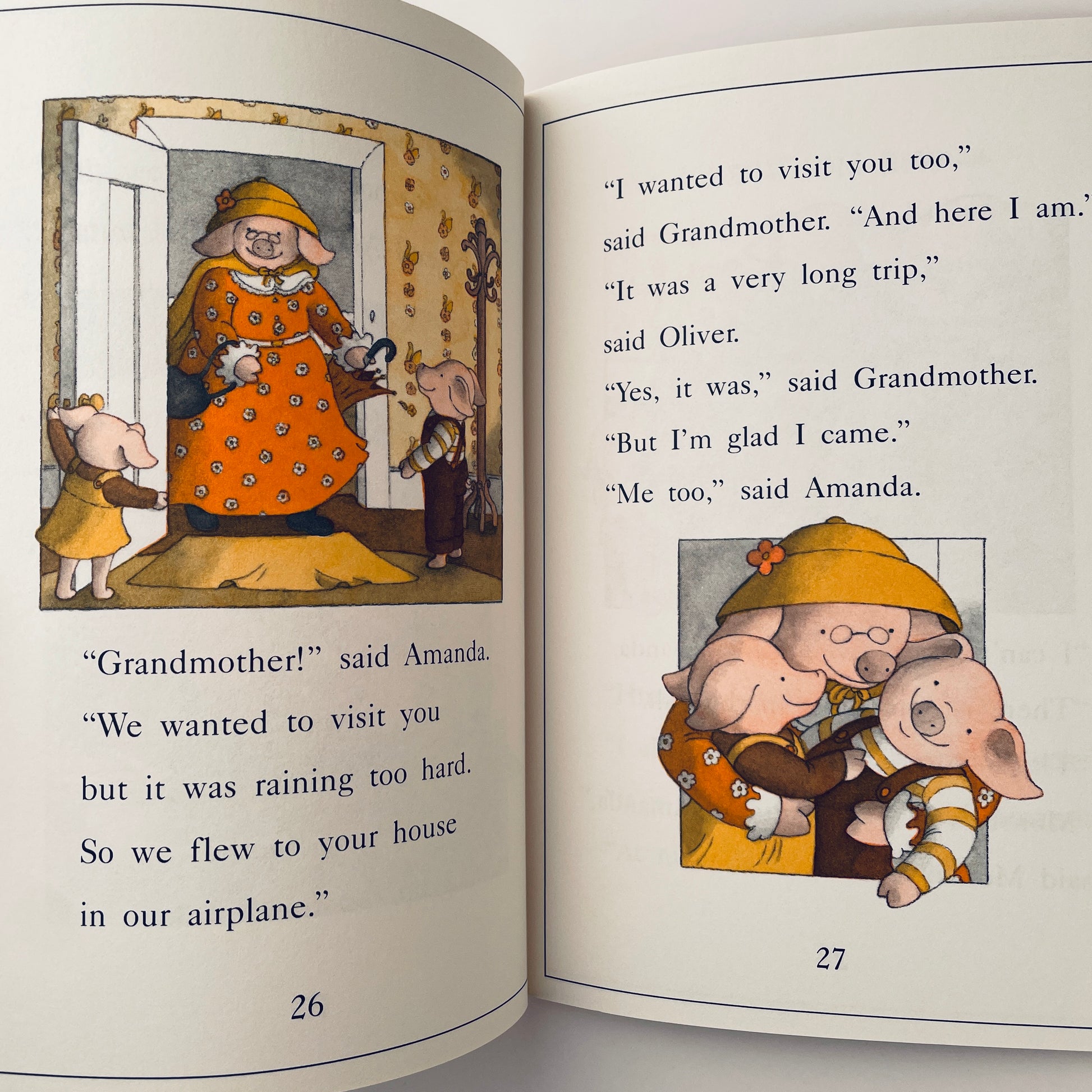 Oliver's little sister isn't too little any more. Now Amanda is big enough to fly all the way to Grandmother's in a make-believe airplane. She's brave enough to tell Oliver he's mean and dumb when he calls her a fat baby. And she's clever enough to put a weary Mother Pig to sleep with her very own song and story.