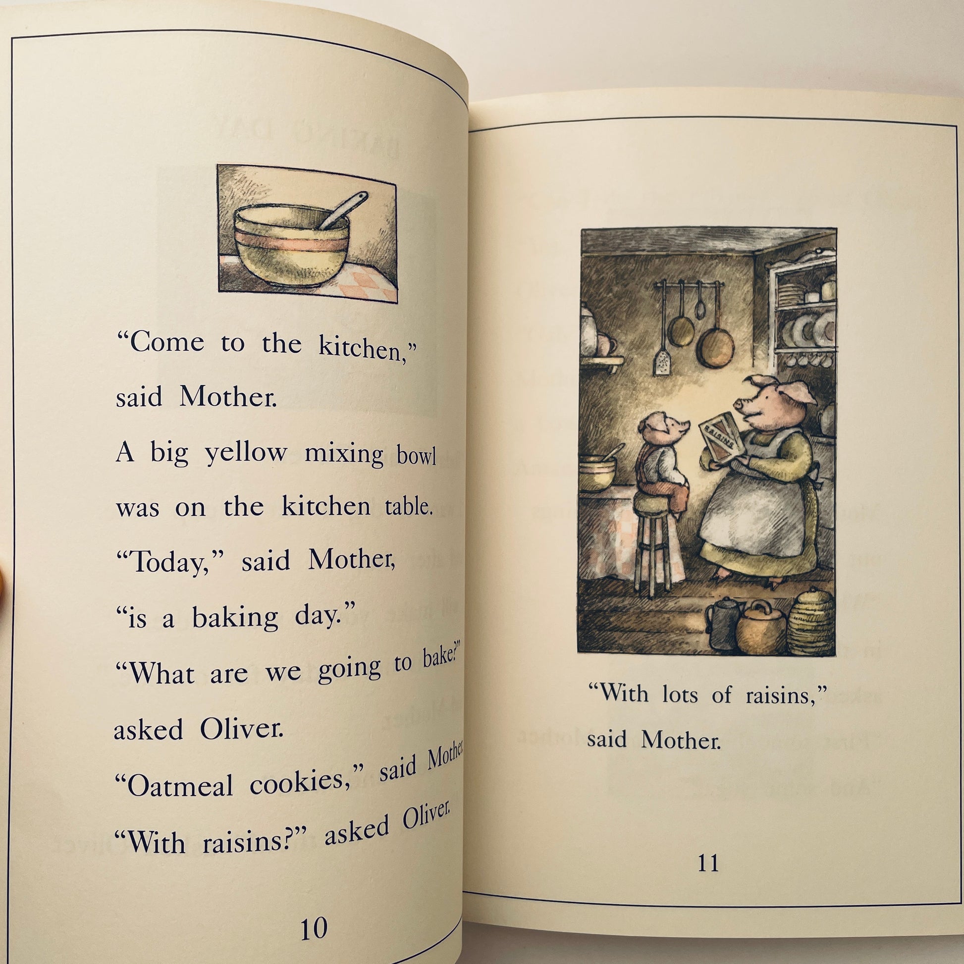Here are five tales about Oliver's life at home. Jean Van Leeuwen's easy-to-read text and Arnold Lobel's pictures show with warmth and gentle humor why everyday events like baking cookies on a cold, wet day or comforting Mother when she's sad are always special occasions for Oliver Pig.