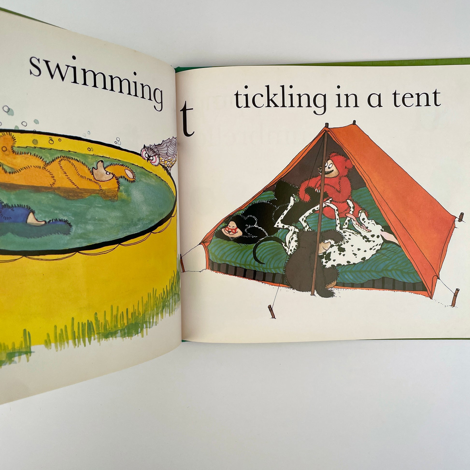 The letters of the alphabet describe the various activities of five teddy bears, from arriving in an airplane to zipping off to the zoo.