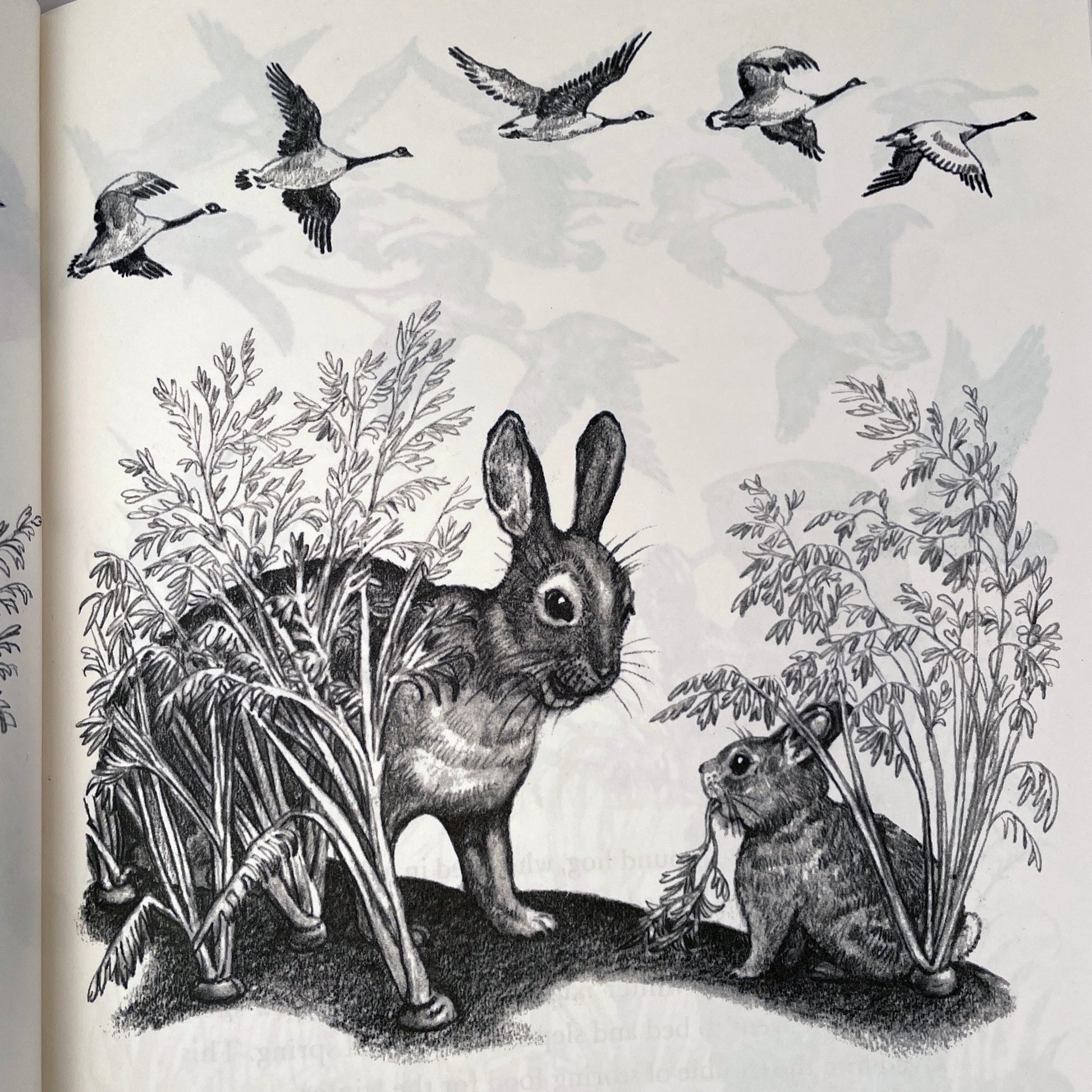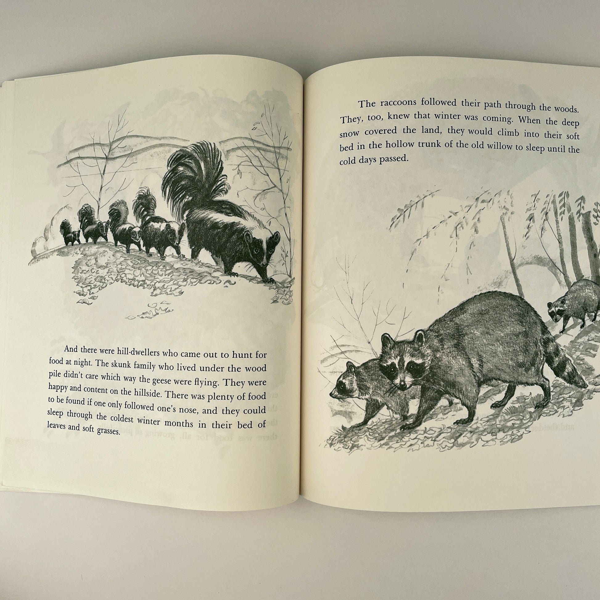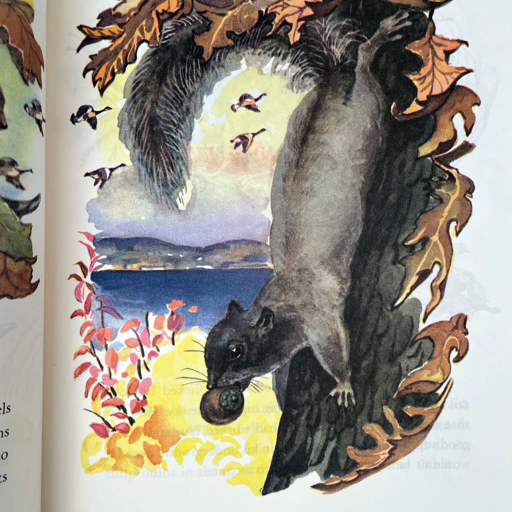 "Honk-honk-honk." The wild geese fly south when cold winds begin to blow from the north. The red squirrel stores nuts and acorns and seeds under leaves and logs. It is getting ready for winter... and the first BIG SNOW.