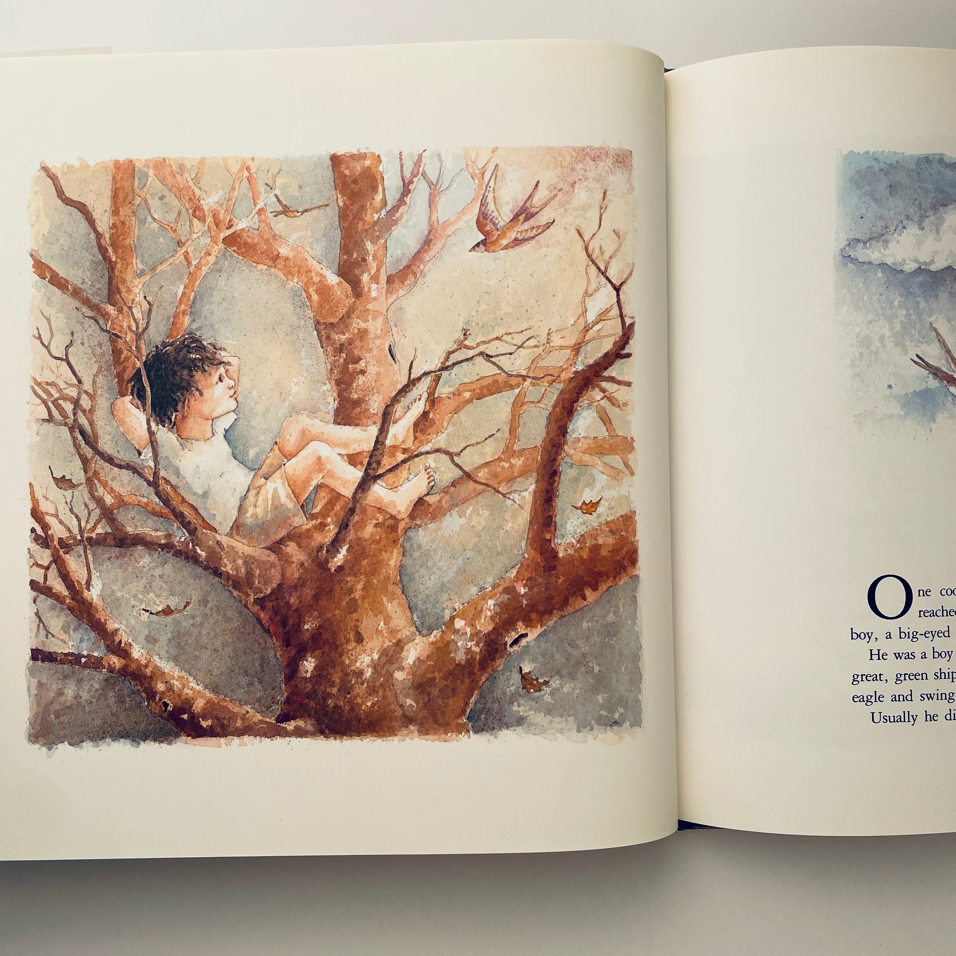 Once when animals still talked and the sky reached all the way to the ground there was a boy who traveled the trees. Then one cool night the moon was suddenly trapped by the fingers of Grandaddy Maple, and the boy knew it was up to him to set the moon free. When he finally touched it, however, the boy discovered his hand was coated with moon sugar and, rather than rescuing the moon, he began to eat it. He ate it, and ate it, until, drifting up into the dark night sky, he wondered if he would ever return.