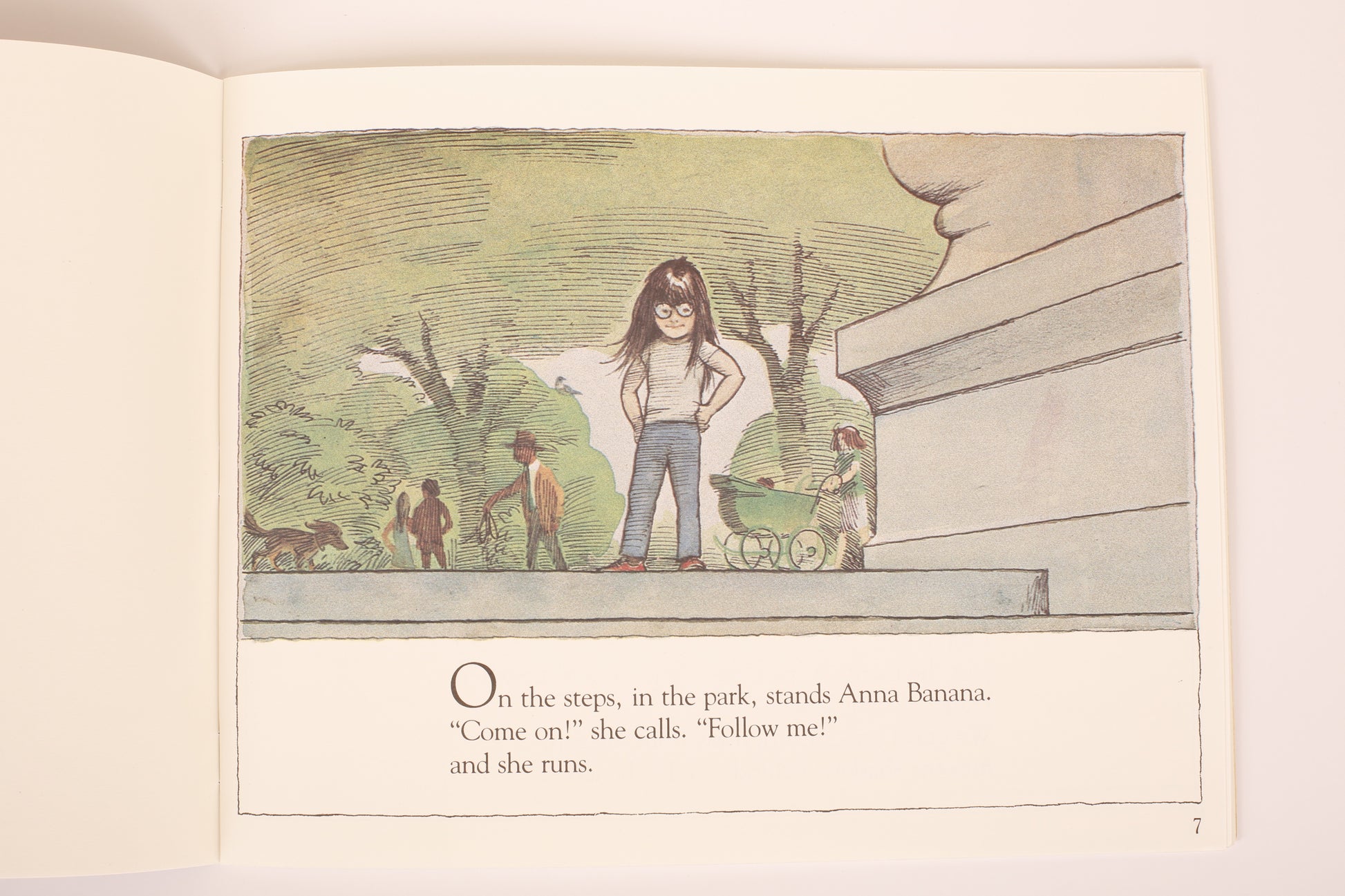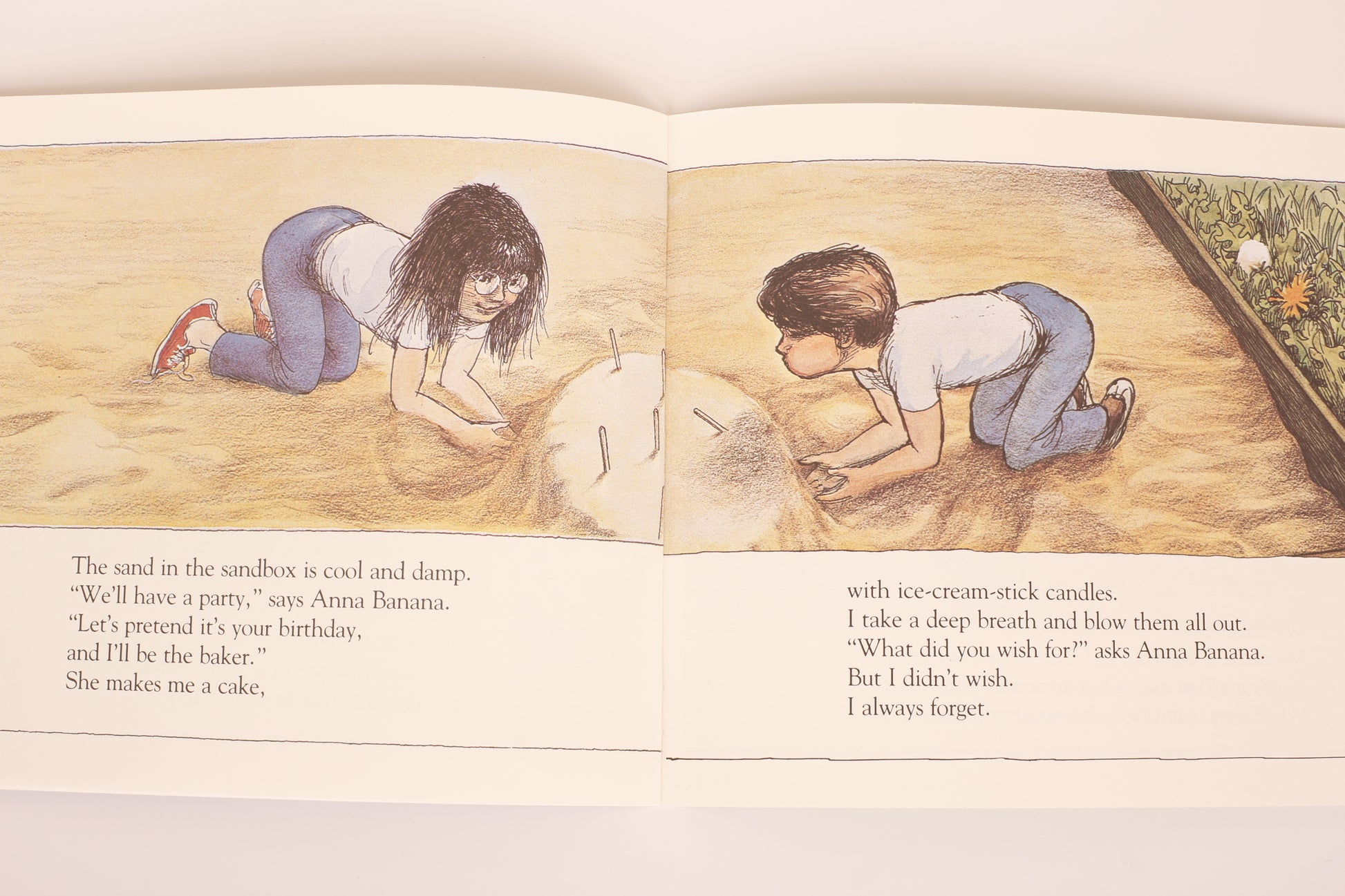 Anna Banana is fearless. She swings high in the playground, invents stories about huge, terrifying goblins–and believes in magic. The small boy she plays with is afraid. He would never do the things that Anna Banana does, even when they're together. But one day, when he's most scared, he uses a little bit of her magic–and makes some of this own.