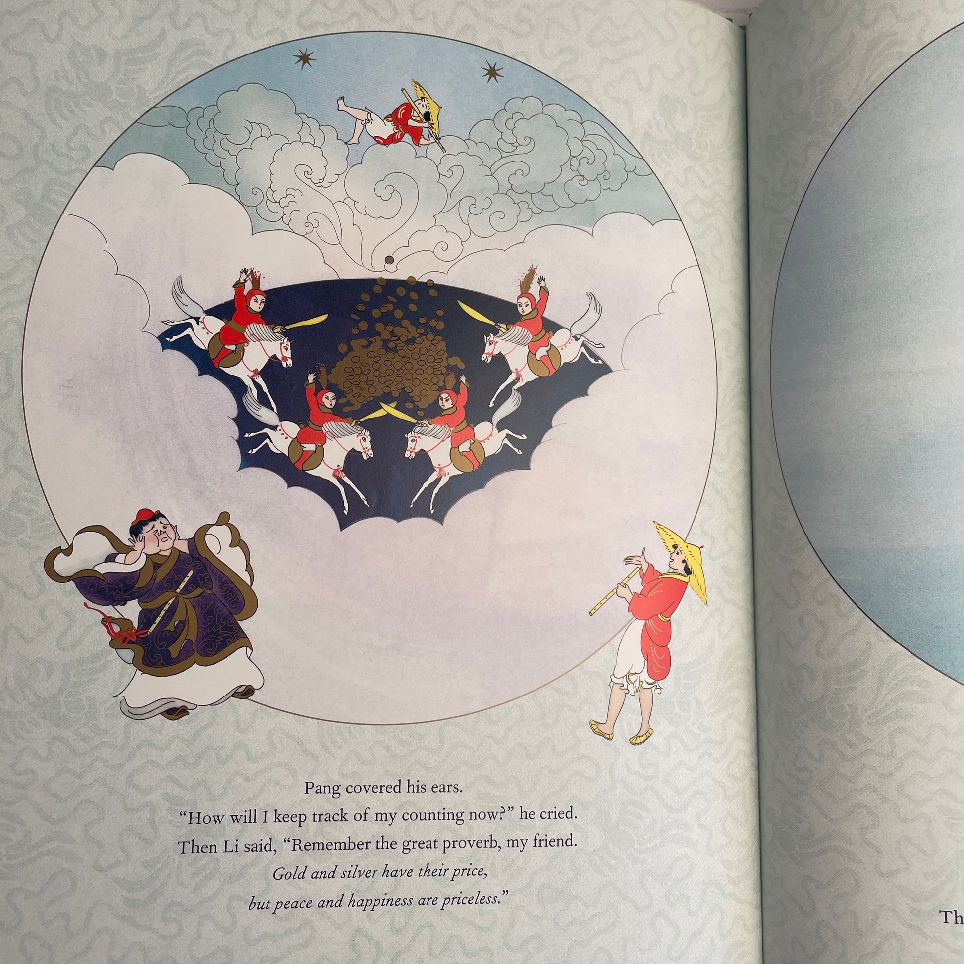 Long ago in China, there lived a rich man named Pang and a poor man named Li. All day long, Pang counted his money and worried about how he should spend it. Nearby, humble Li worked his small farm. And whenever he had the chance, Li played merry songs on his flute for his whole family to enjoy. When Pang decides to give Lee a bag full of gold coins, Li is delighted at first with his new fortune. But soon enough, it becomes a burden. At last, Li's youngest daughter helps him see that the greatest treasure is the one he has carried in his heart all along. And in an unexpected twist, Li finds a clever way to share with Pang this most precious treasure.
