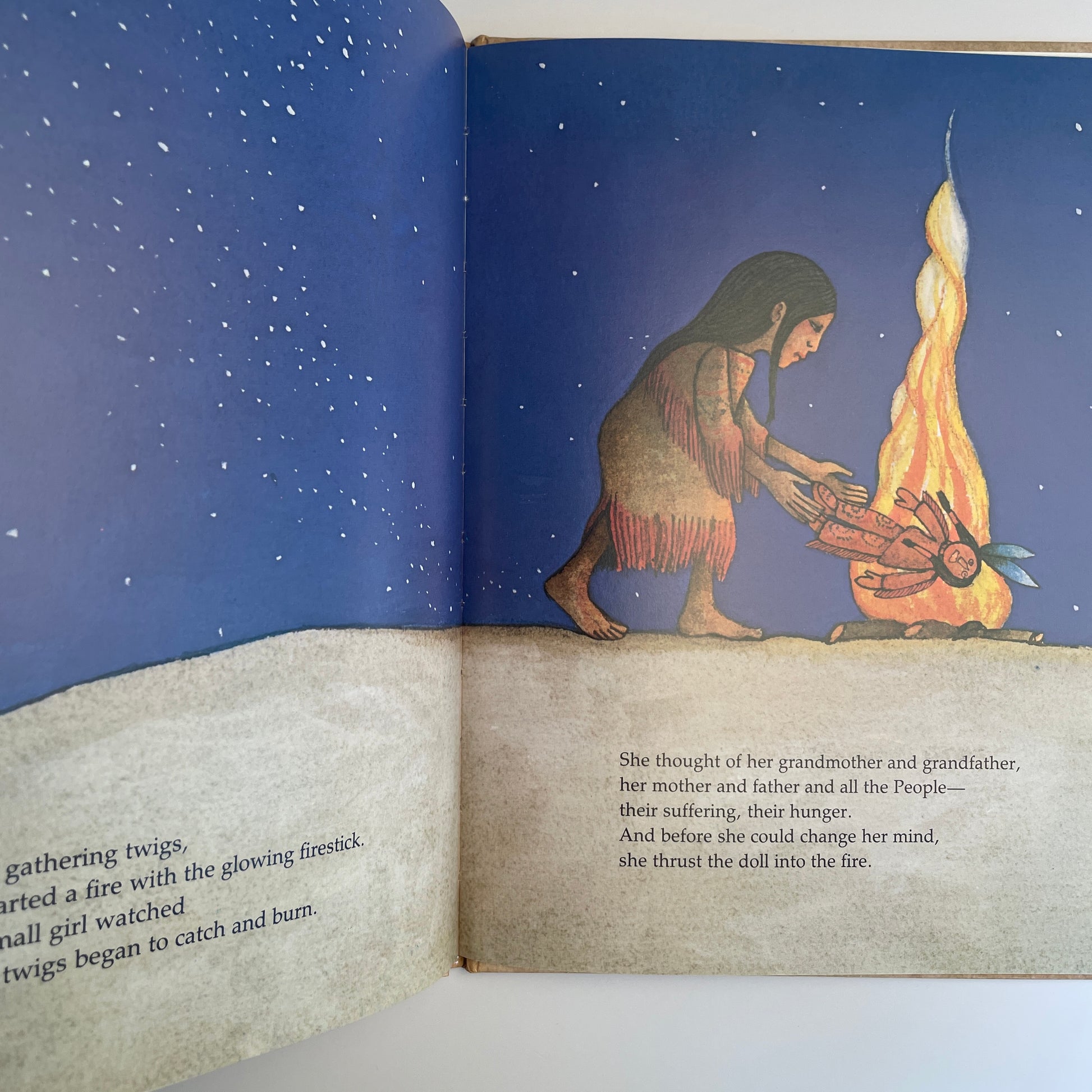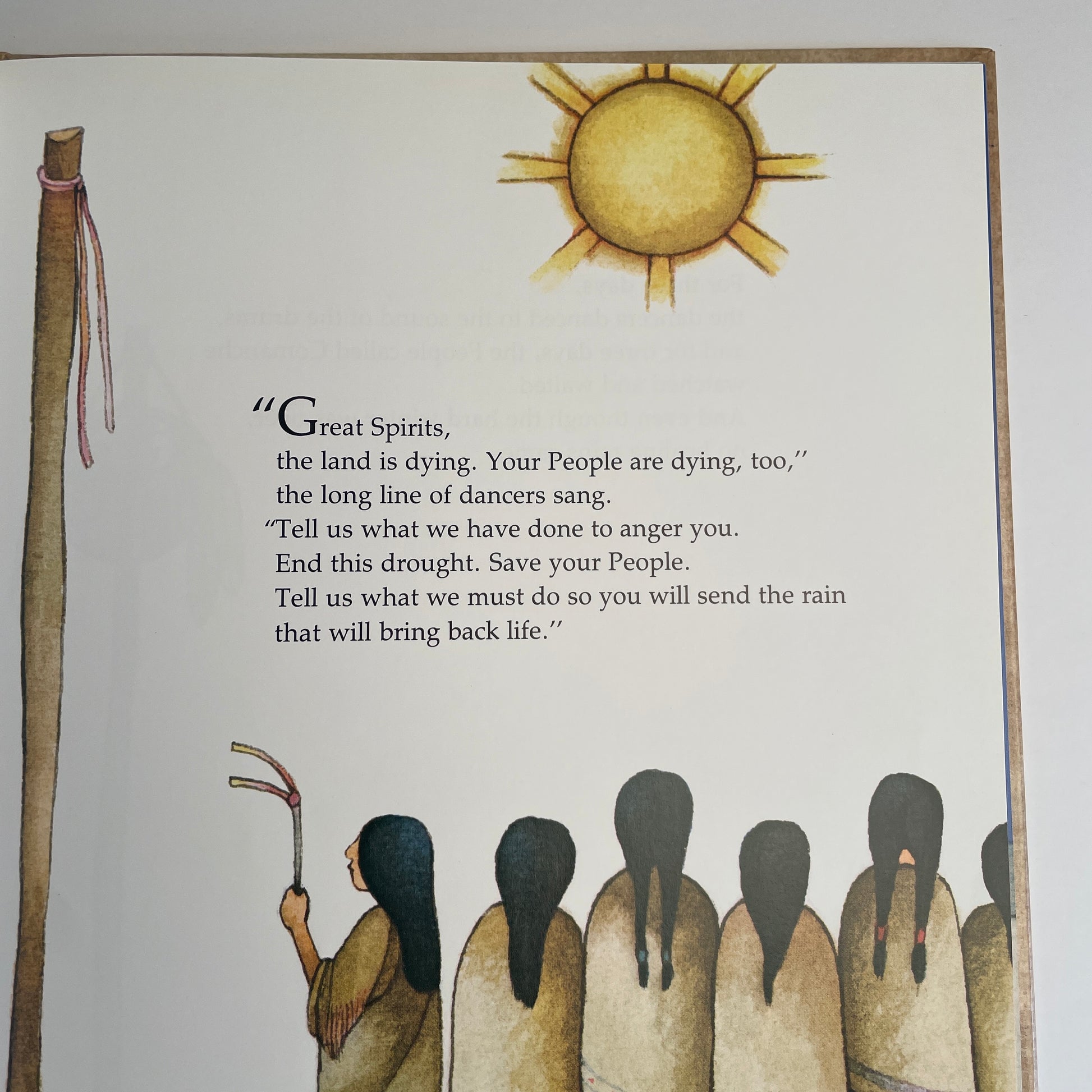 When a killing drought threatens the existence of the tribe, a courageous little Comanche girl sacrifices her most beloved possession–and the Great Spirit's answer results not only in much needed rain but a very special gift in return.