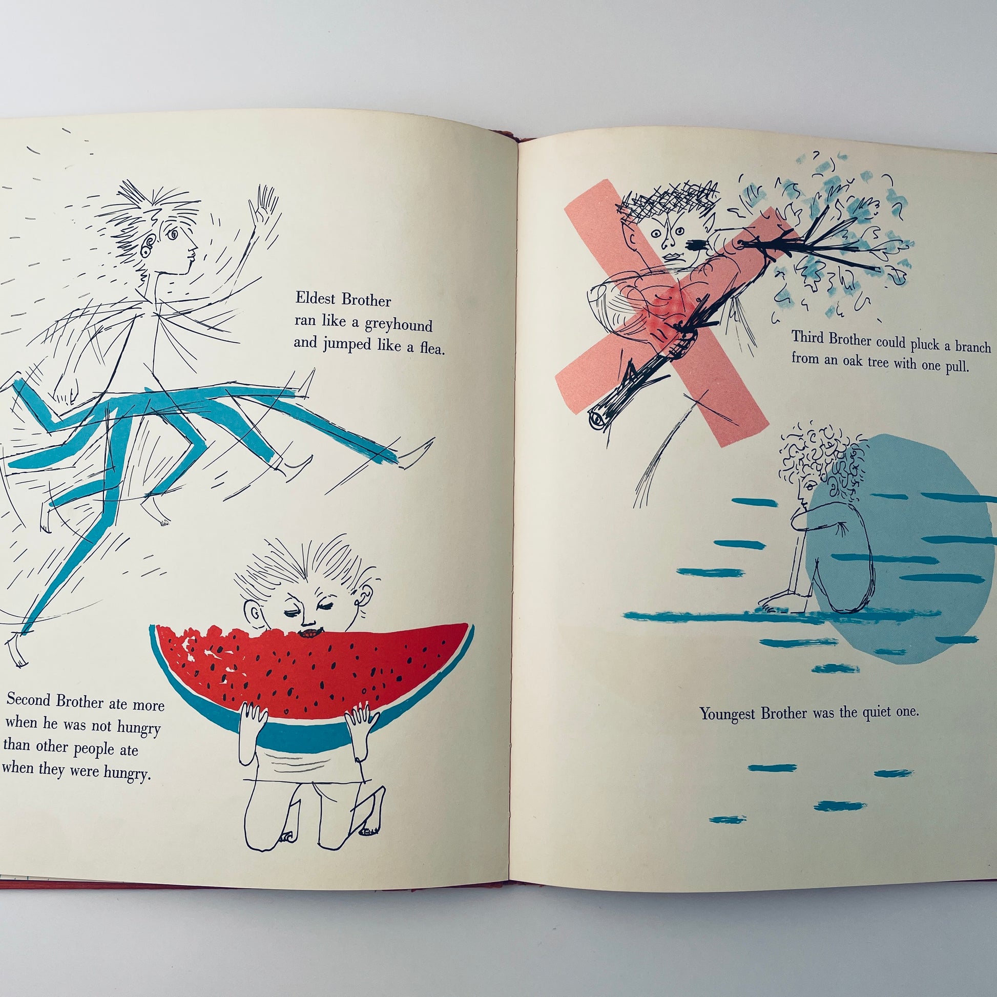 NY Times Book Review, 1958: Here is a fabulous folk tale of four little boys and a magic feather duster, in which kindness, of course, triumphs over force and greed.