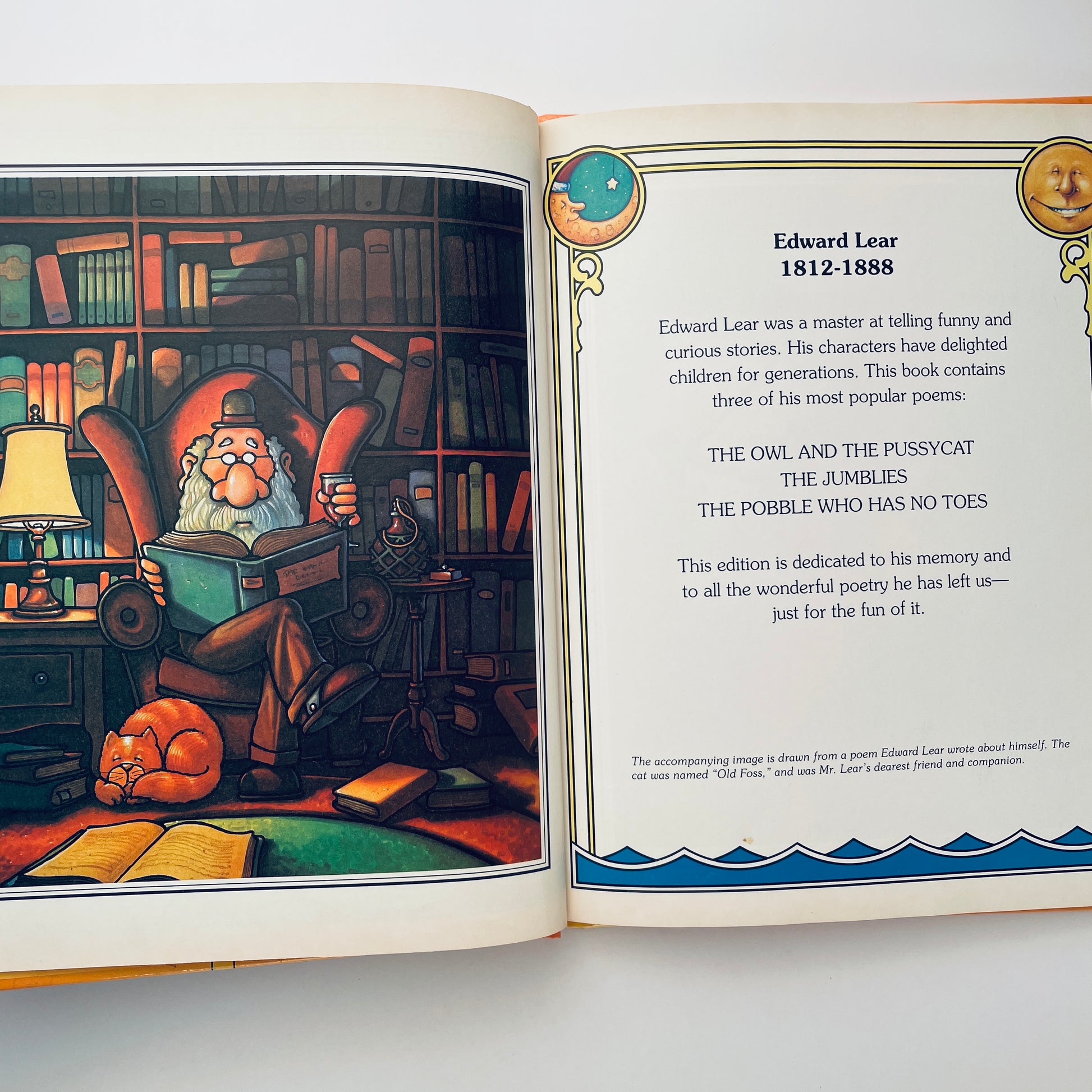 Edward Lear was a master at telling funny and curious stories. His characters have delighted children for generations. This book contains three of his most popular poems: "The owl and the pussycat," "The Jumblies," "The Pobble who had no toes."