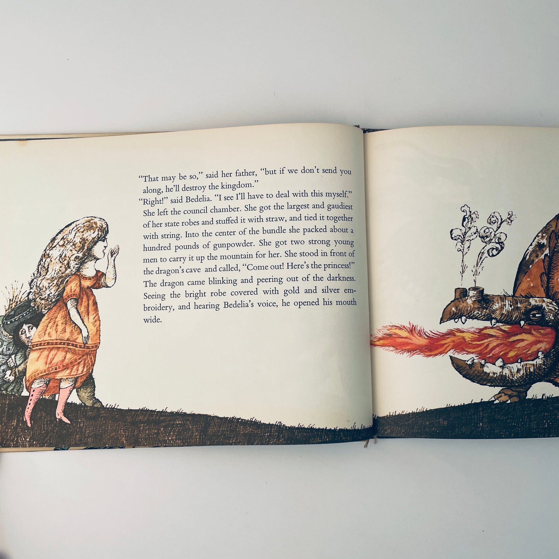 Princess Bedelia was as lovely as the moon shining upon a lake, as graceful as a leaping cat, and she was also extremely practical. When a dragon moved into her neighborhood demanding a princess to devour, Bedelia's practicality and self-preservation kicked into gear. "Rubbish!" she said. "Dragons can't tell the difference between princesses and anyone else. Use your common sense. He's just asking for me because he's a snob." She proceeded to defeat the bothersome dragon, outwit her conniving suitor, and rescue a prince sleeping under a spell while locked away at the top of a tall, magical tower with no stairs.
