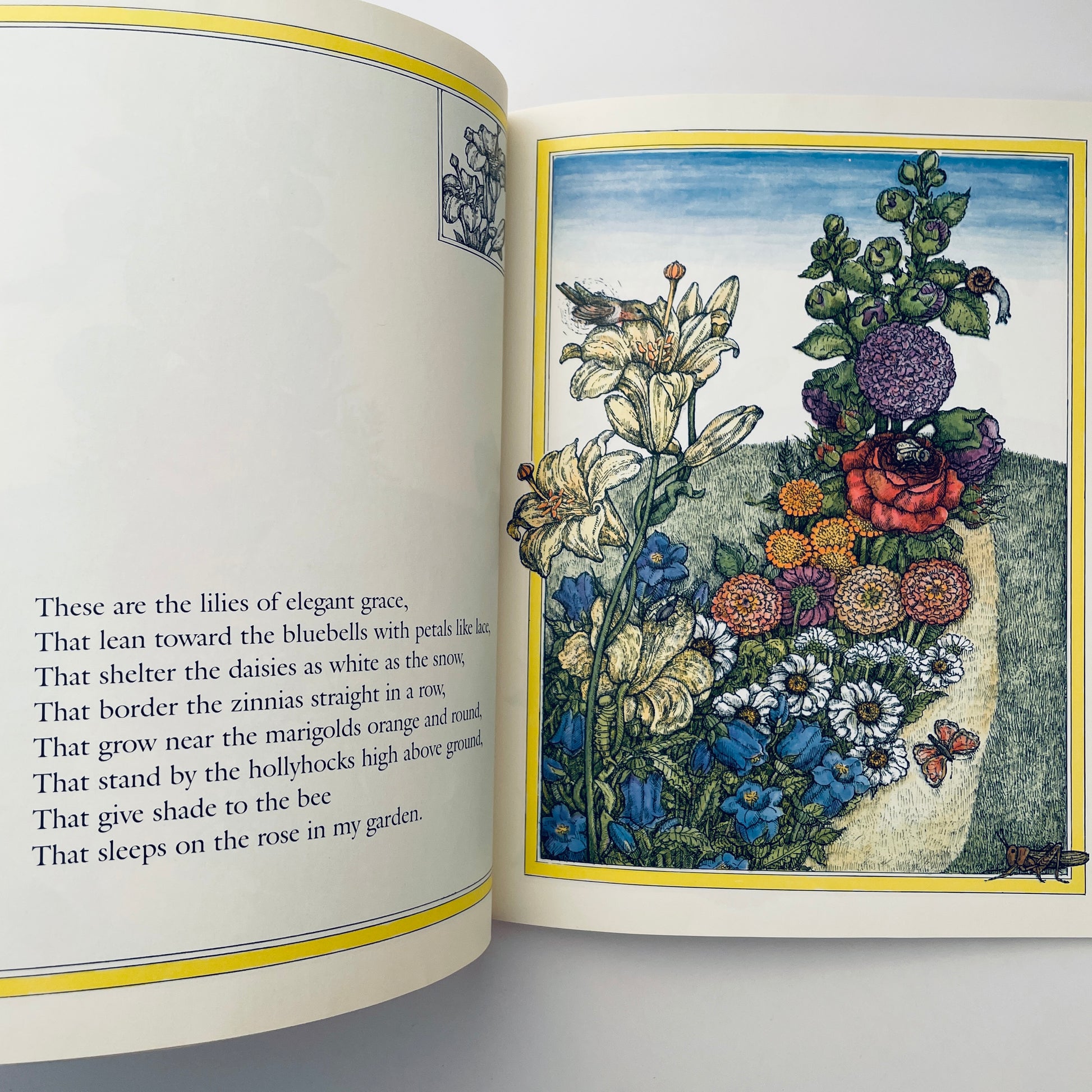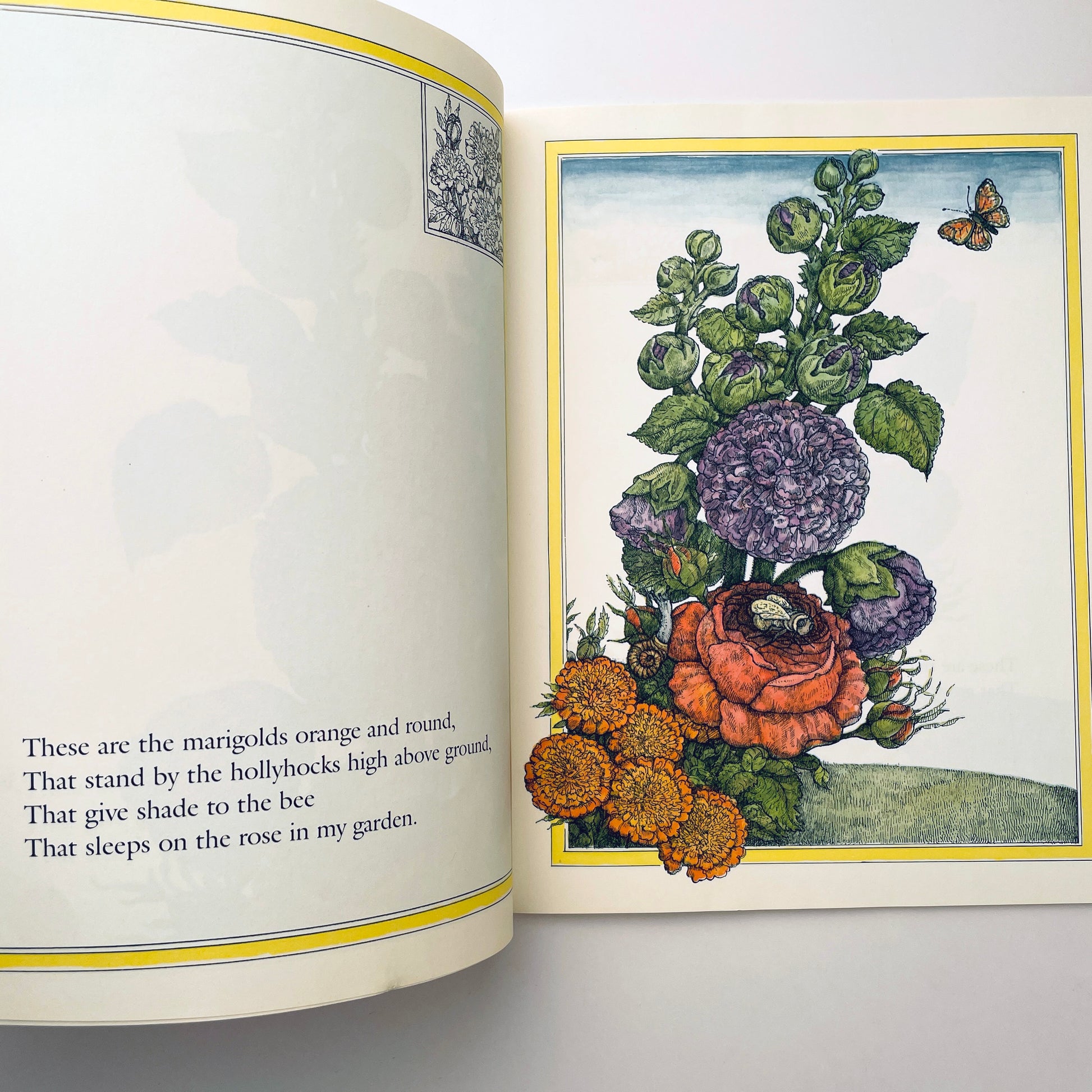 A collection of horticultural treasures in a whimsical cumulative verse about marigolds, pansies, sunflowers, tulips, and a surprise.