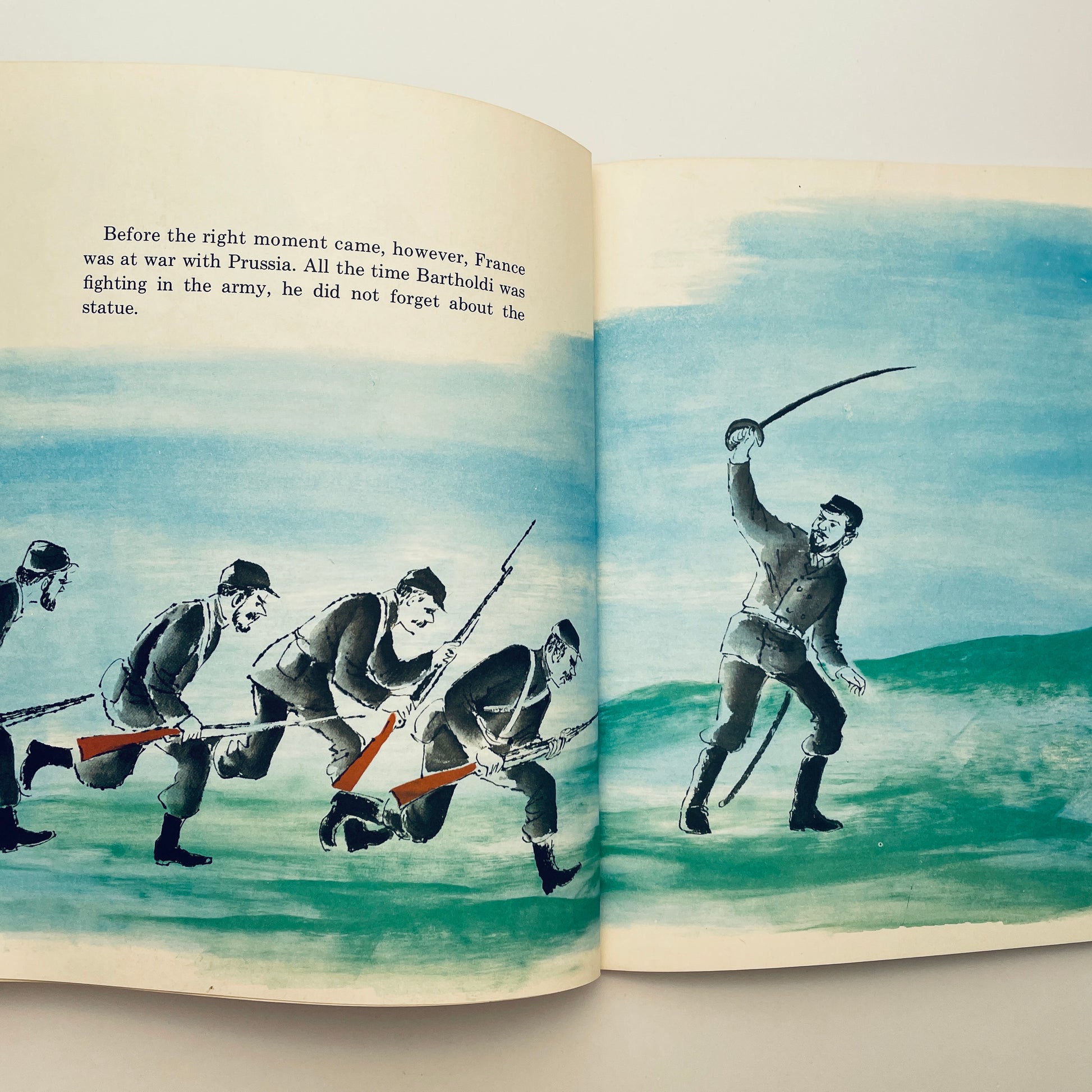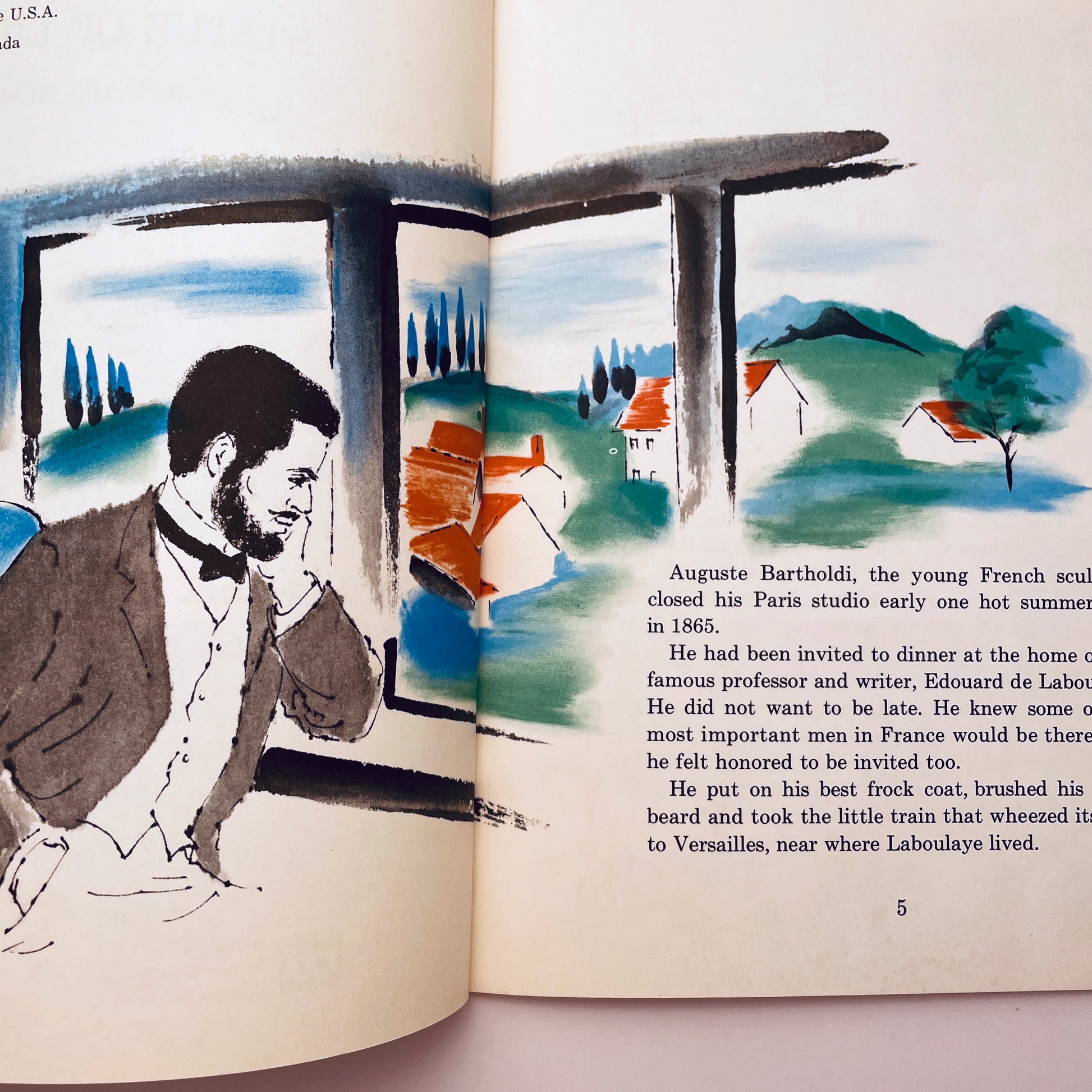 Describes Auguste Bartholdi's conception of the Statue of Liberty, its construction in France, and its eventual erection and dedication in New York Harbor.