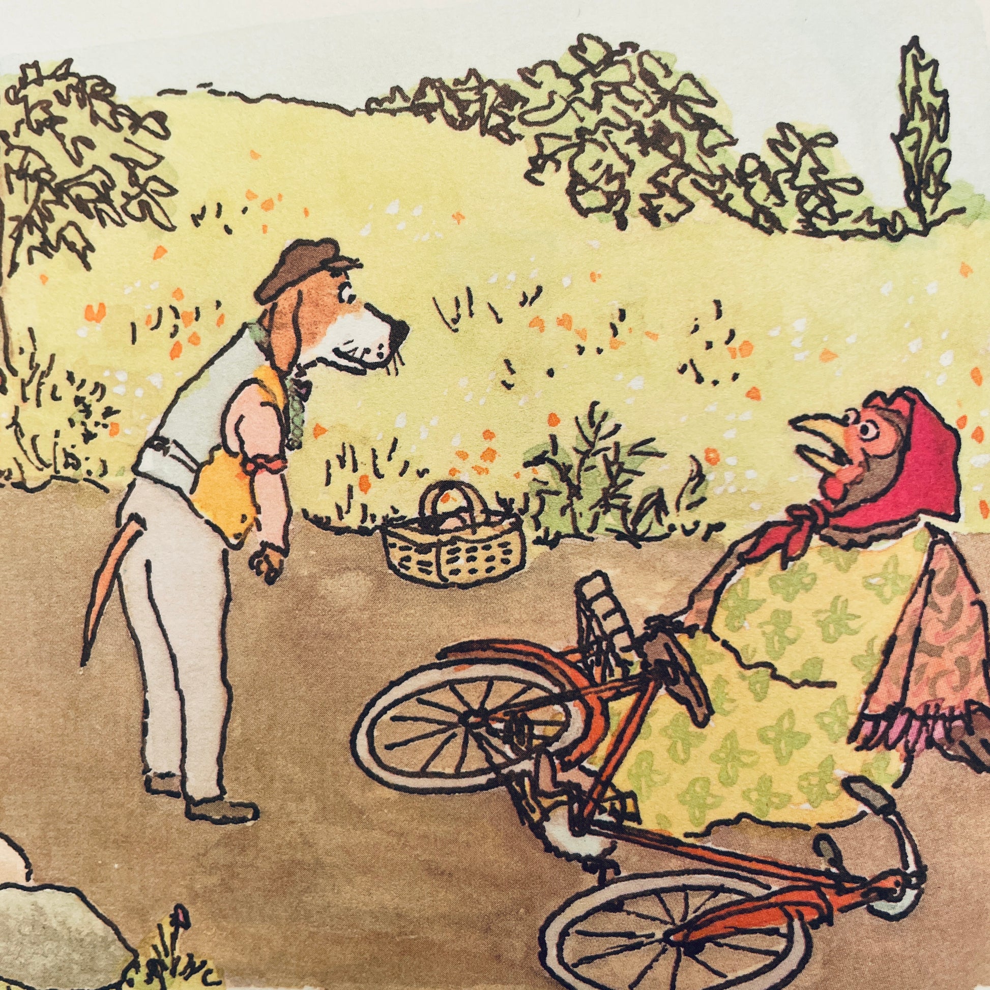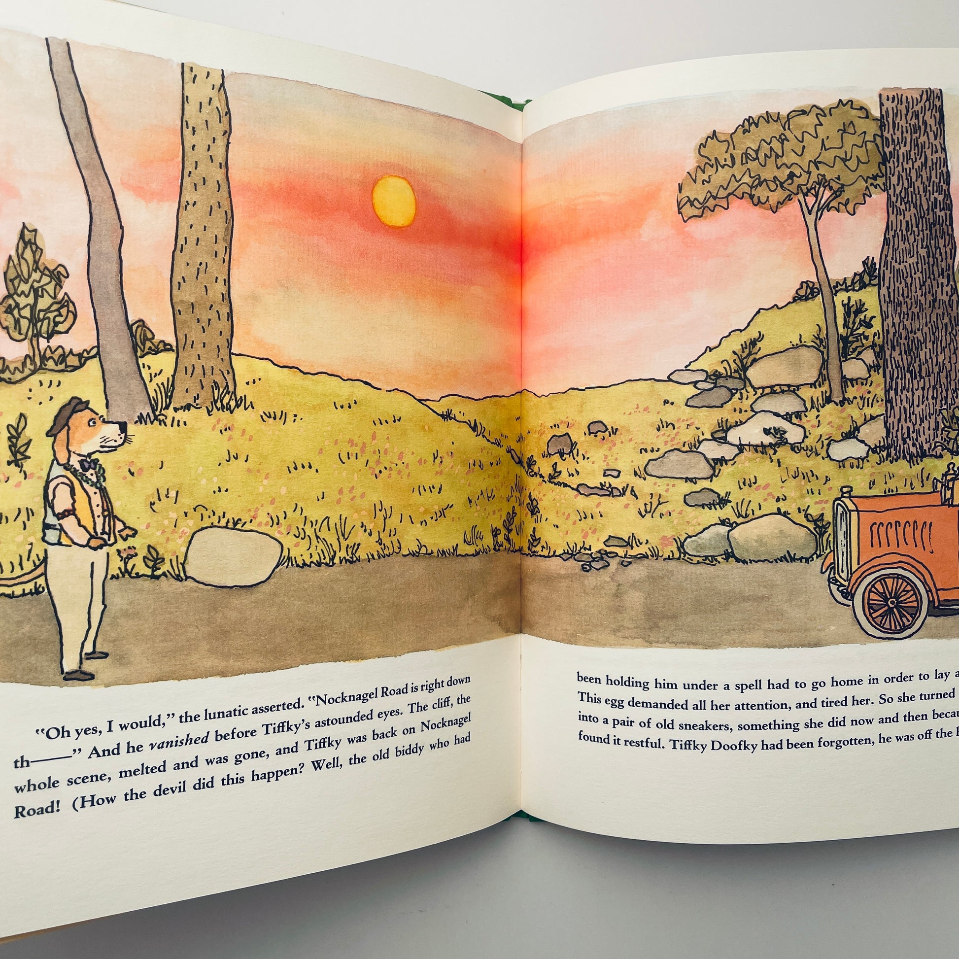 The day turns out to be far from ordinary, but not in the way Tiffky Doofky, or even Madame Tarsal, had expected. A bad-tempered witch is at work here, though she looks like a harmless old biddy, with her bicycle and her red babushka. Tiffky's adventures under her spell take him so far from Popville and so close to sunset that he begins to despair of ever meeting his beloved. He even decides that Madame Tarsal ought to get a new crystal ball. But just as the sun in touching the horizon, Tiffky has his most perilous encounter–and it brings an ending satisfactory to all.