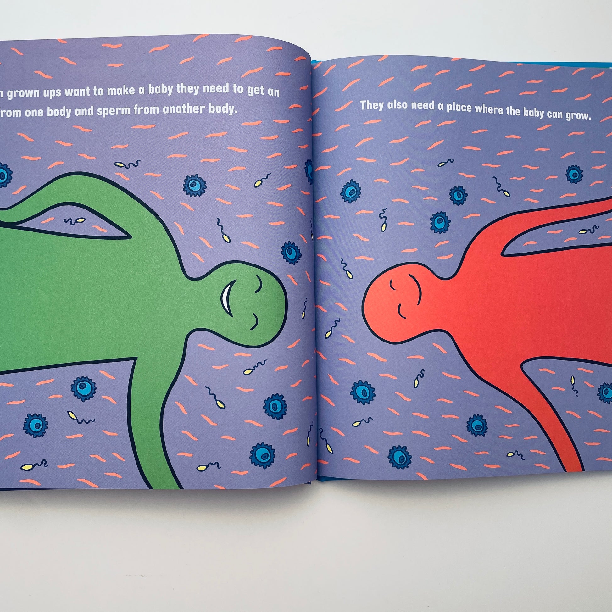 Geared to readers from preschool to age eight, What Makes a Baby is a book for every kind of family and every kind of kid. It is a twenty-first century children’s picture book about conception, gestation, and birth, which reflects the reality of our modern time by being inclusive of all kinds of kids, adults, and families, regardless of how many people were involved, their orientation, gender and other identity, or family composition. Just as important, the story doesn’t gender people or body parts, so most parents and families will find that it leaves room for them to educate their child without having to erase their own experience.