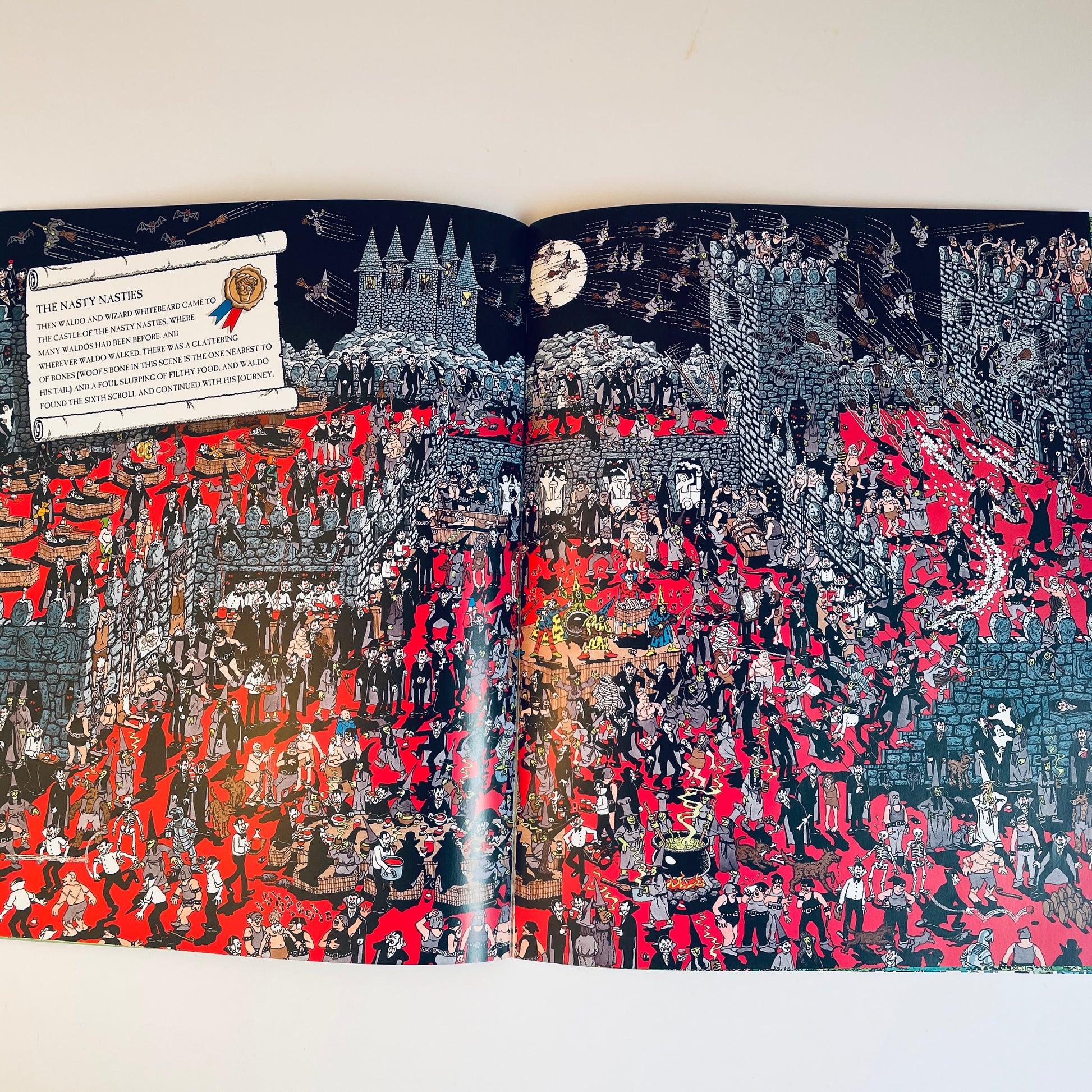 Magic, Myths, and Legends! Waldo has been sent on a quest to find twelve scrolls scattered through magical lands. Join him on his epic journey and meet giants, dragons, mermaids, knights, witches, and ghouls along the way! The more you look, the more you'll find, as Waldo and his friends challenge you to the ultimate game of hide-and-seek! It's a global phenomenon that's got the whole world asking "Where's Waldo?"